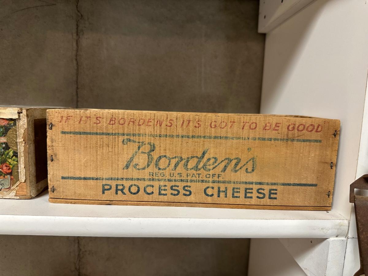 JACKSON'S BEST CIGAR BOX AND 2 WOODEN BORDEN CHEESE BOXES