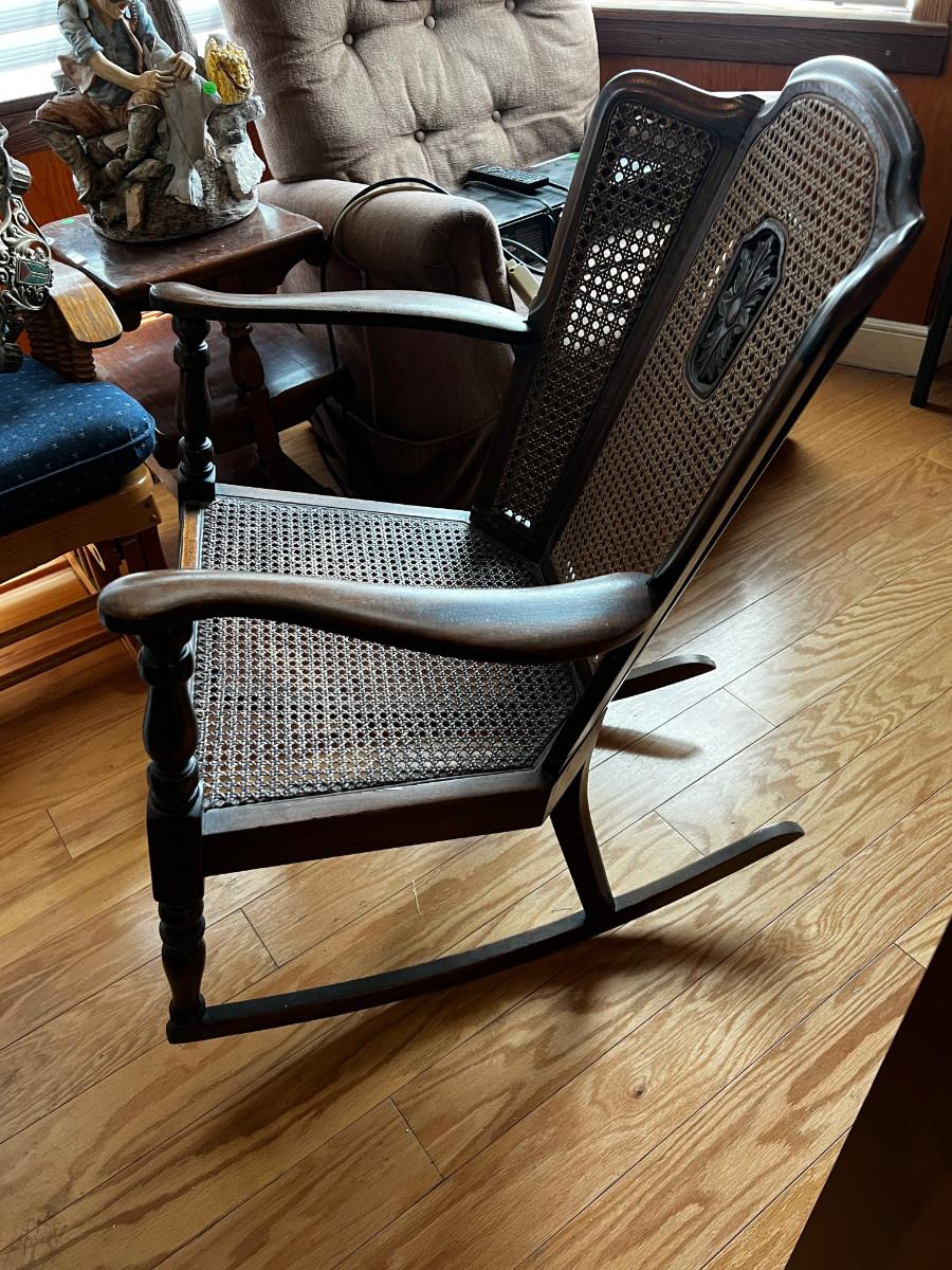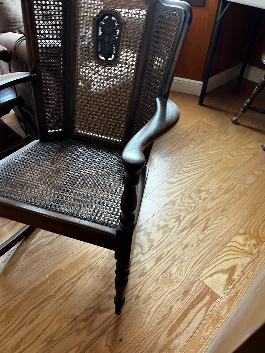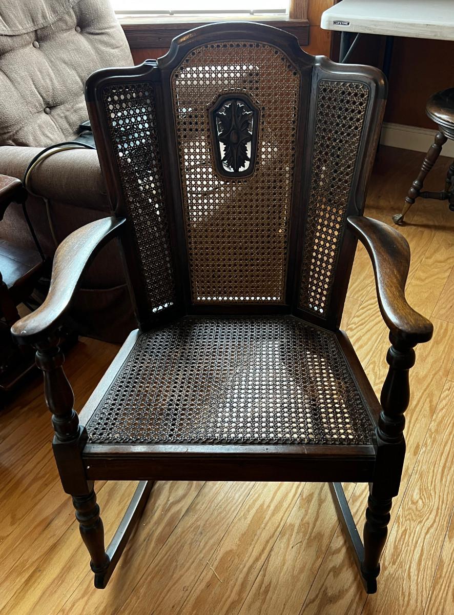 Jacobian Walnut and Wicker Rocking Chair Antique