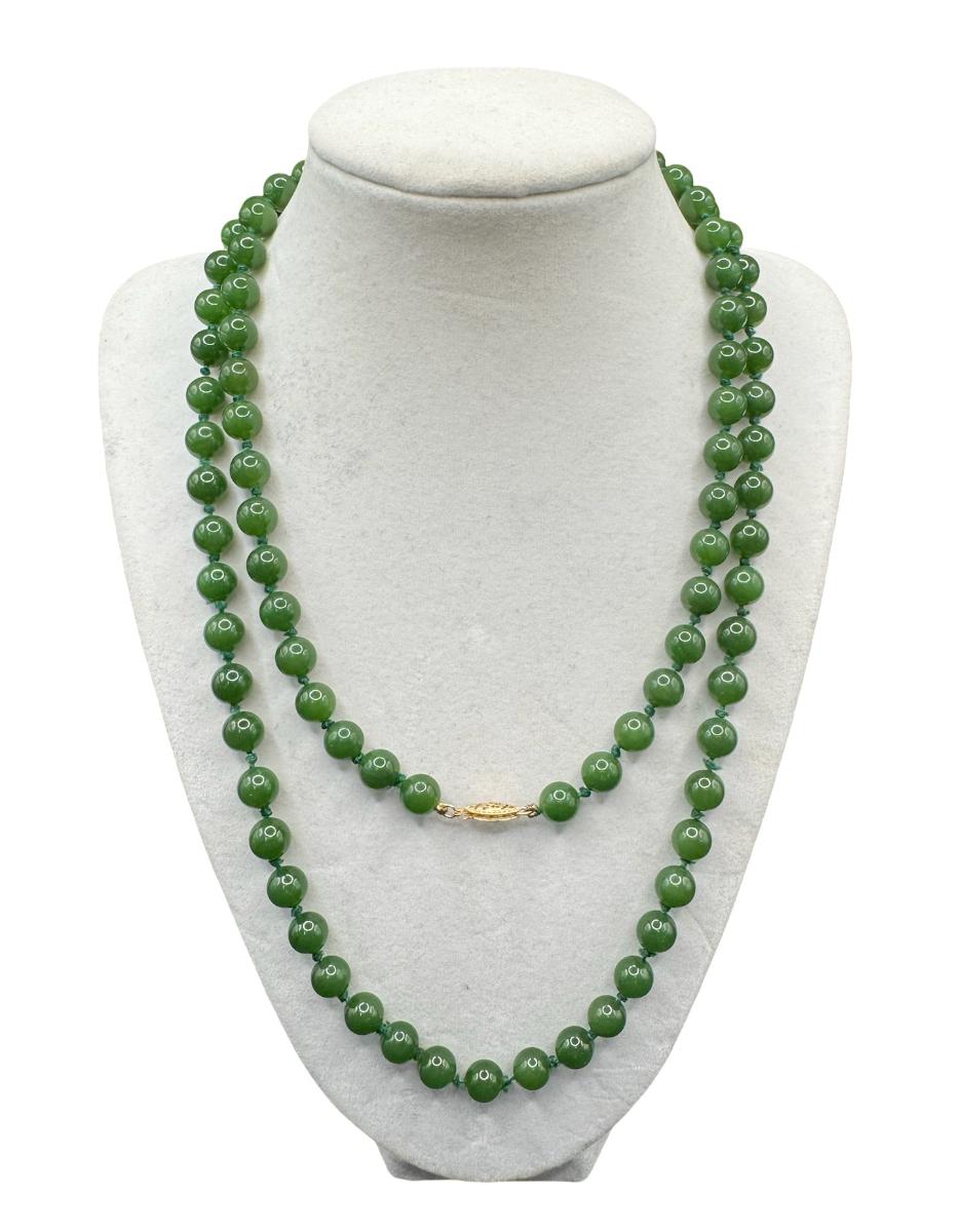 This necklace is hand knotted. The clasp is stamped “14K.” Measurement: 39”L. JL]