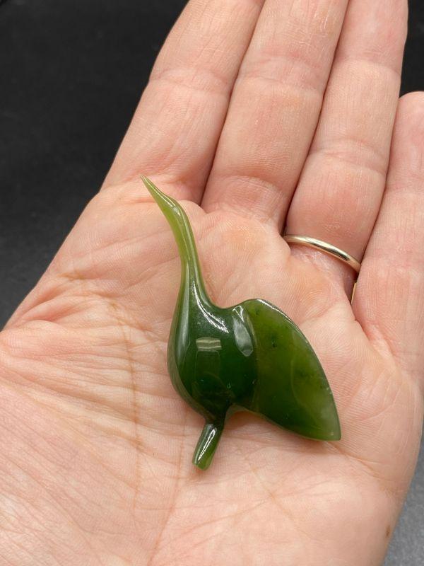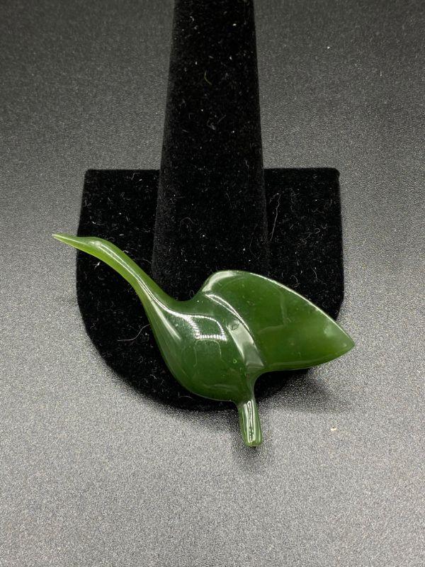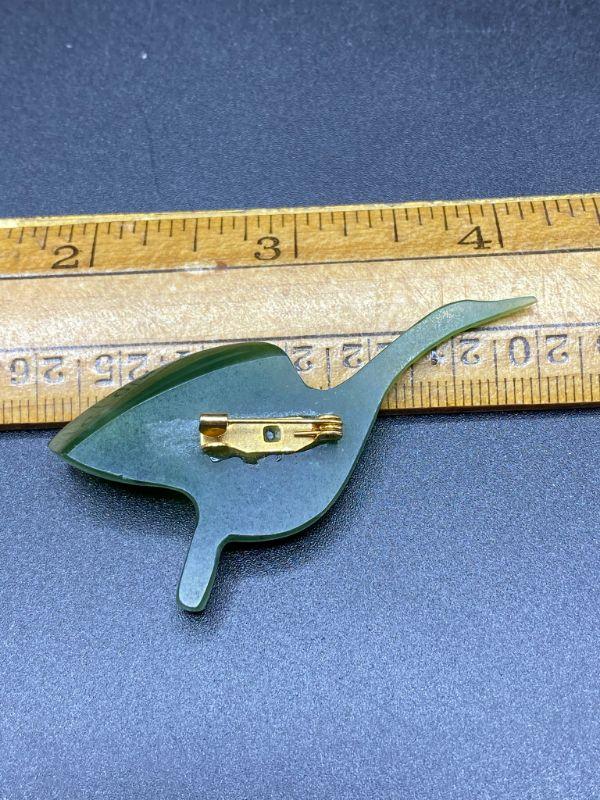 Jade stone brooch. Shaped like a bird, about 2" size. Good condition.