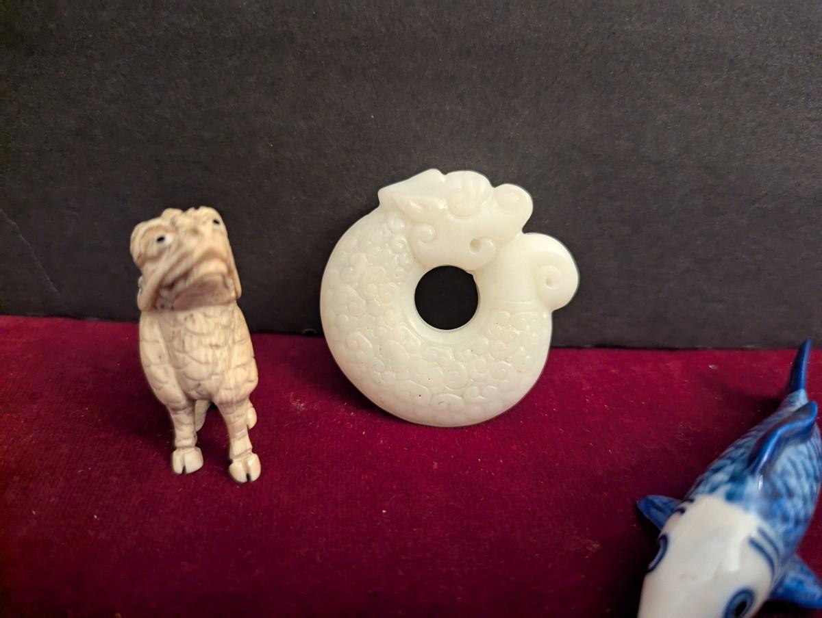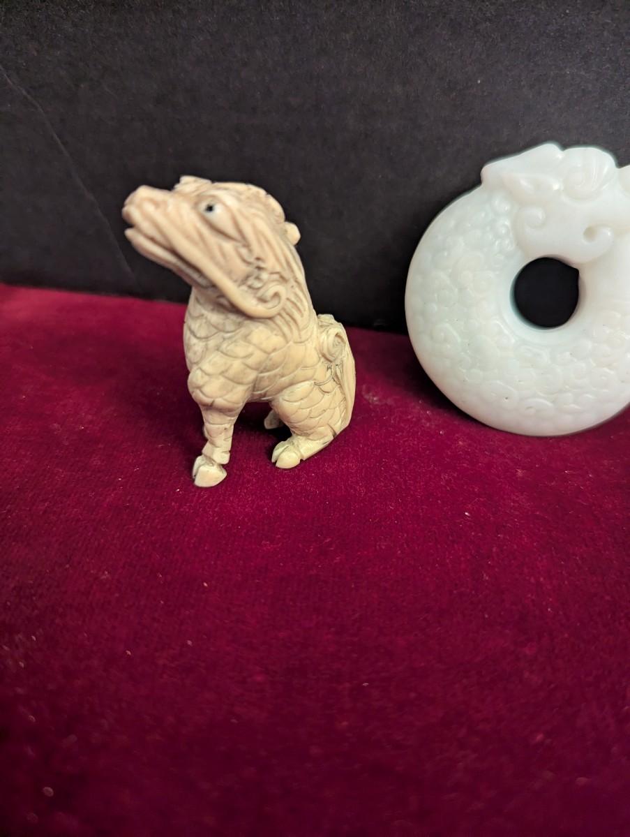 Jade Hand Carved Statue Of Dragon & Rhino Hand Carved Gemstone #93