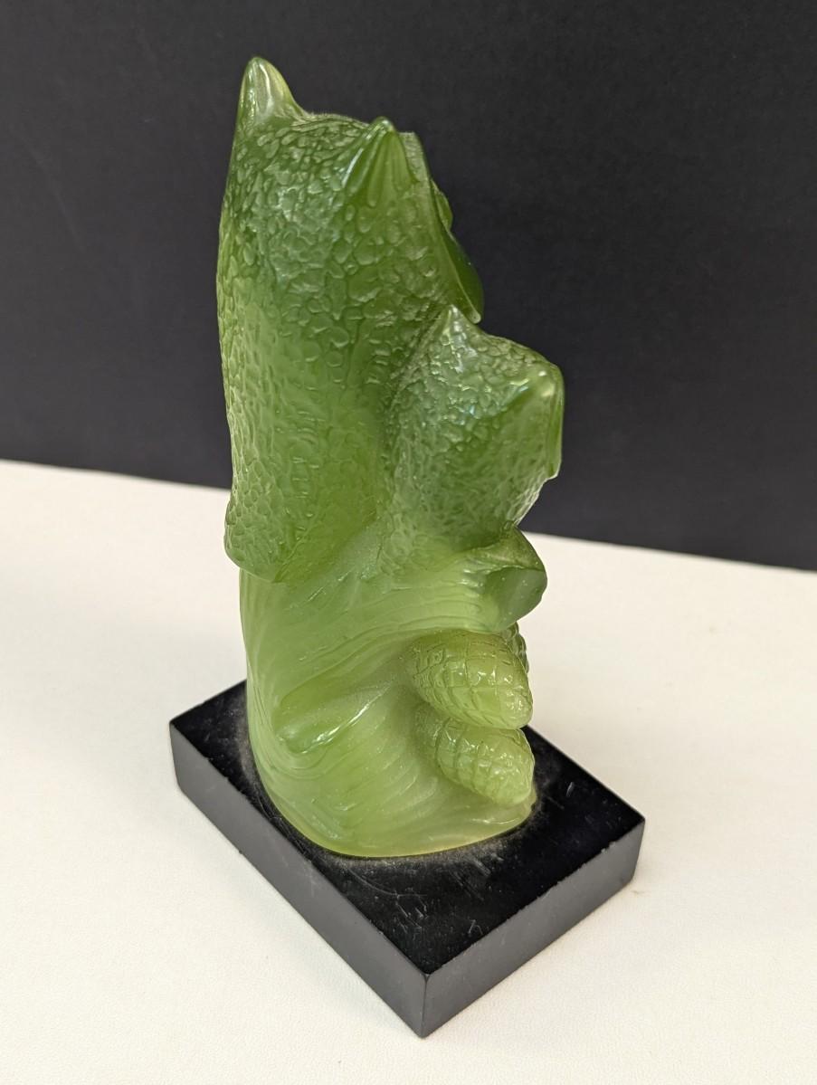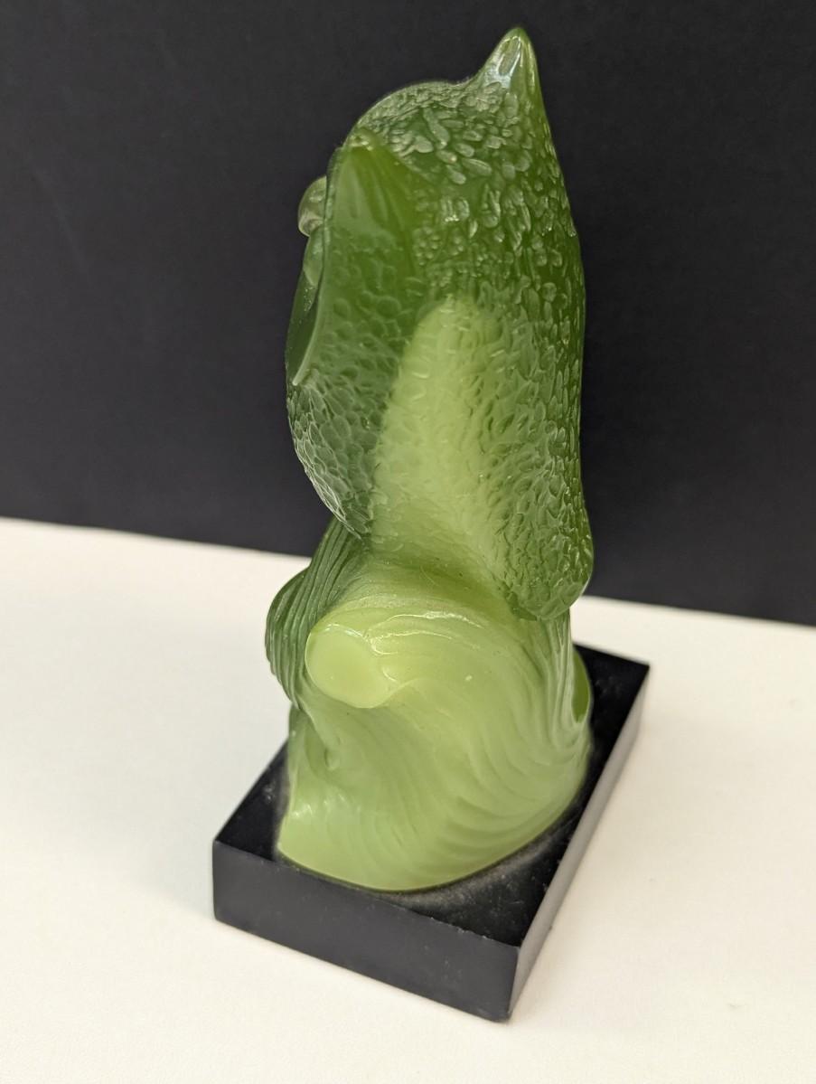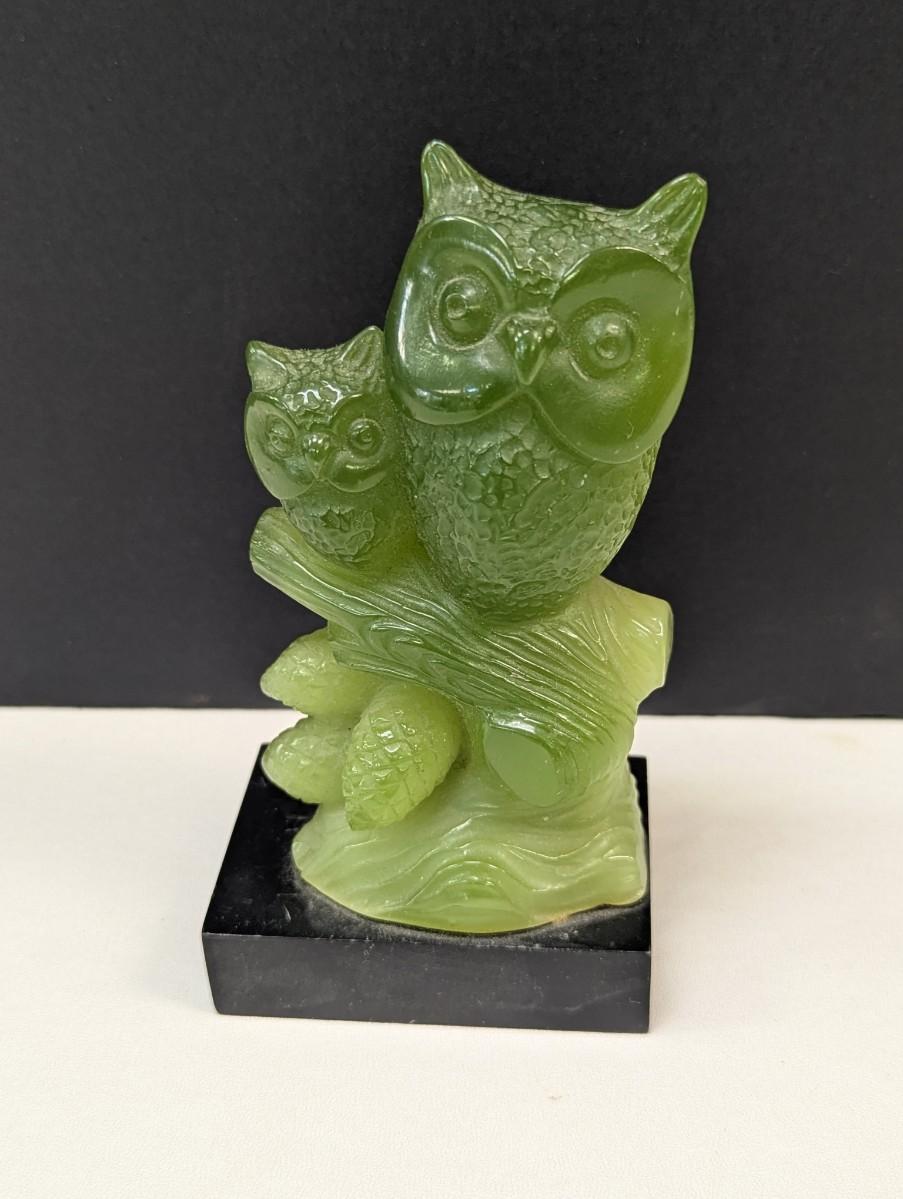 Mid-Century Vintage Two Owls On Branch Faux Jade Figure
