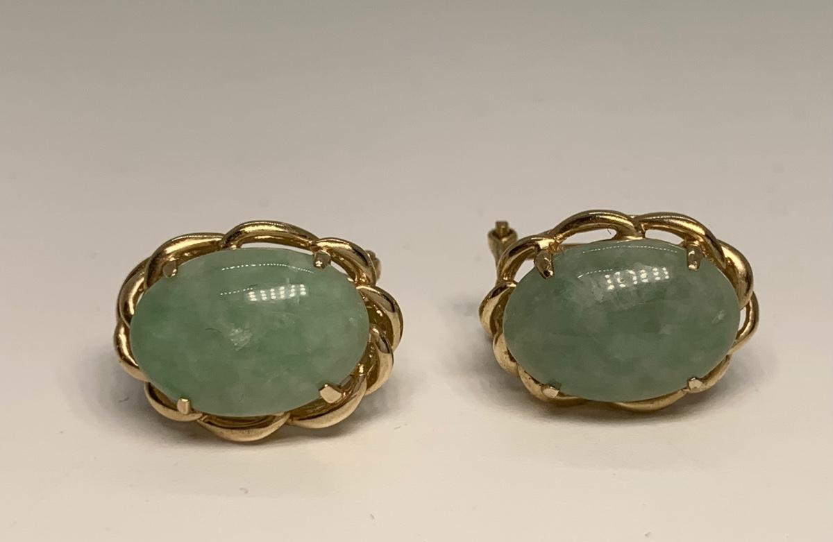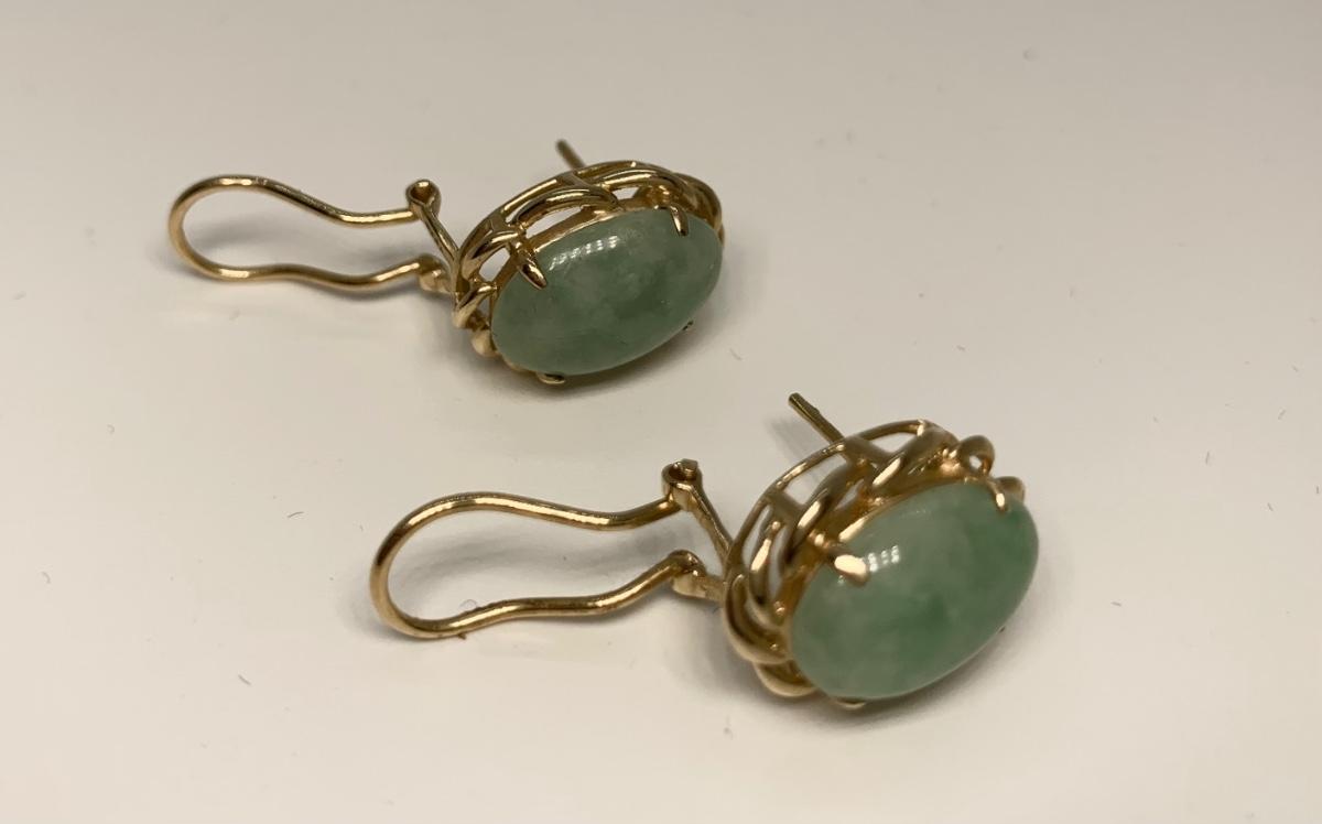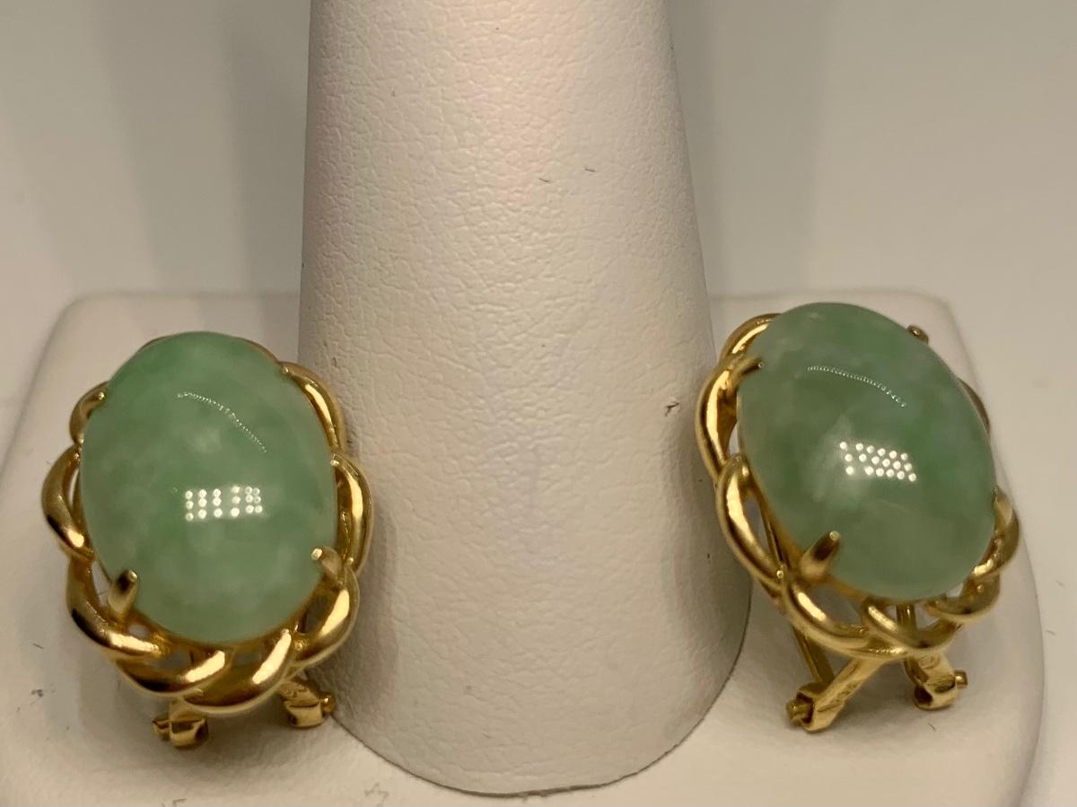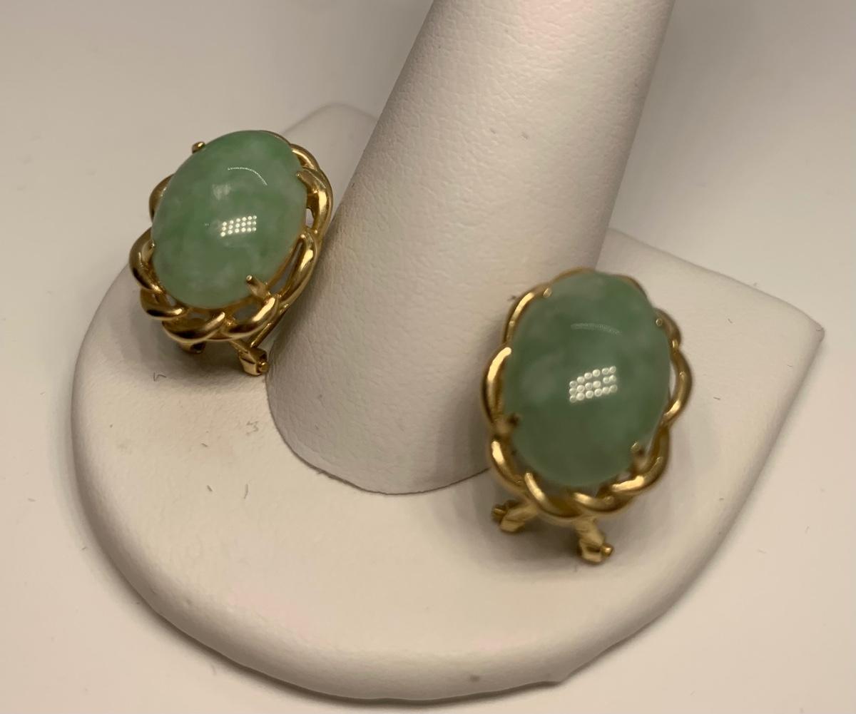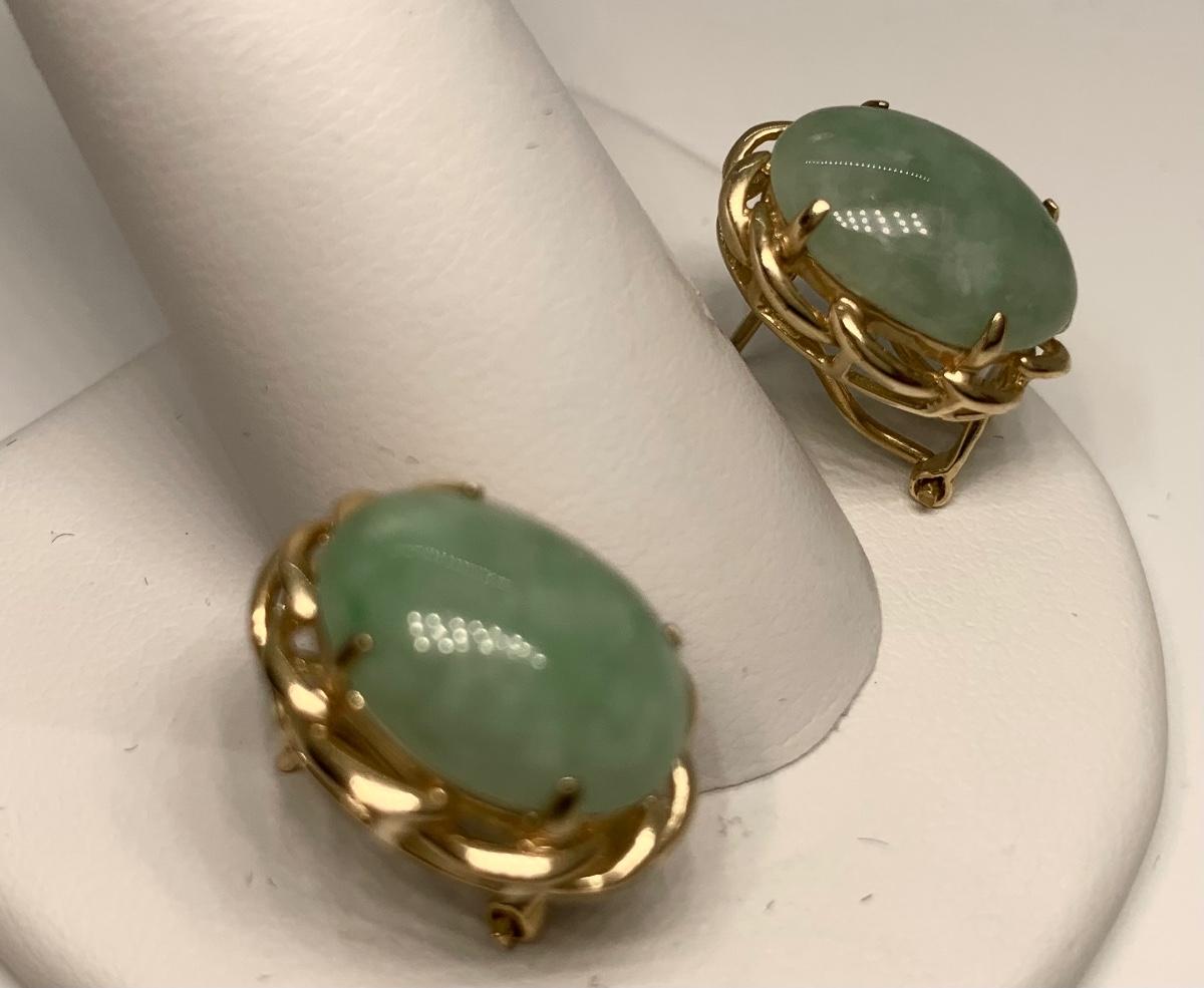 Tw 5.9g Jade 585 14k Pierced Earrings