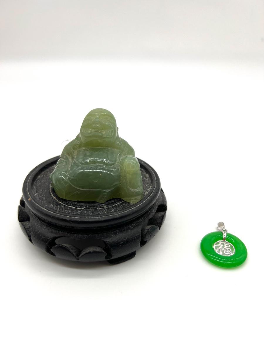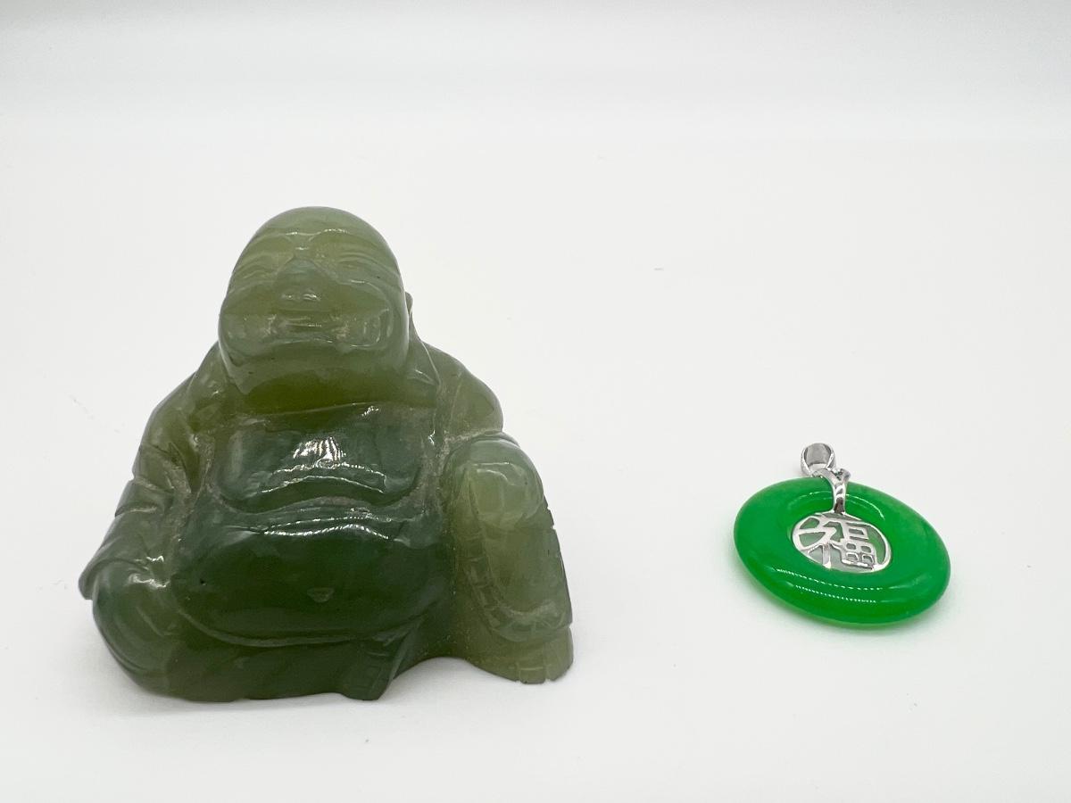 Call me JADE MAYBE? I believe these could be Jade pieces but I’m leaving it up to you to decide. Buddha measures 1 1/2 inches tall 1 1/2 inches deep. Pendant measures 1 inch tall by 1 inch wide.