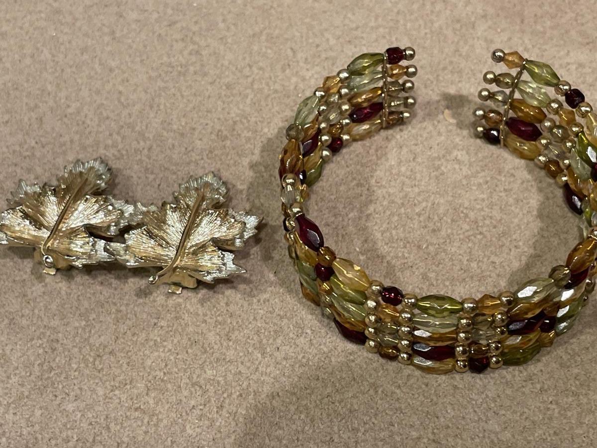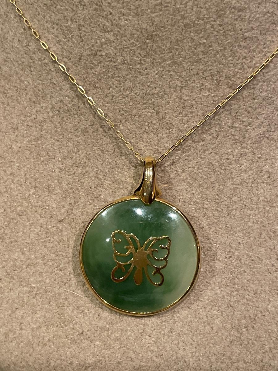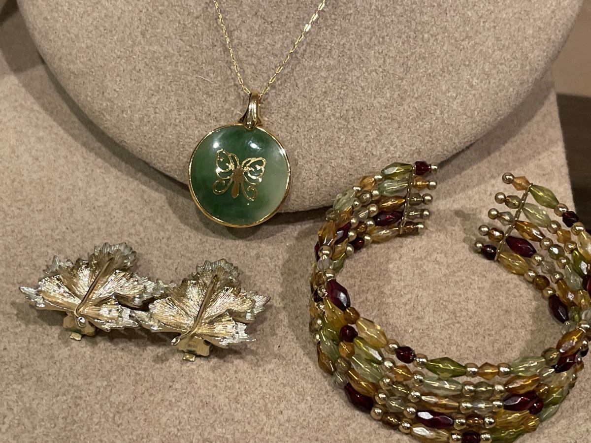 Jadeite butterfly necklace, Sara Cov leaf earrings and bracelet