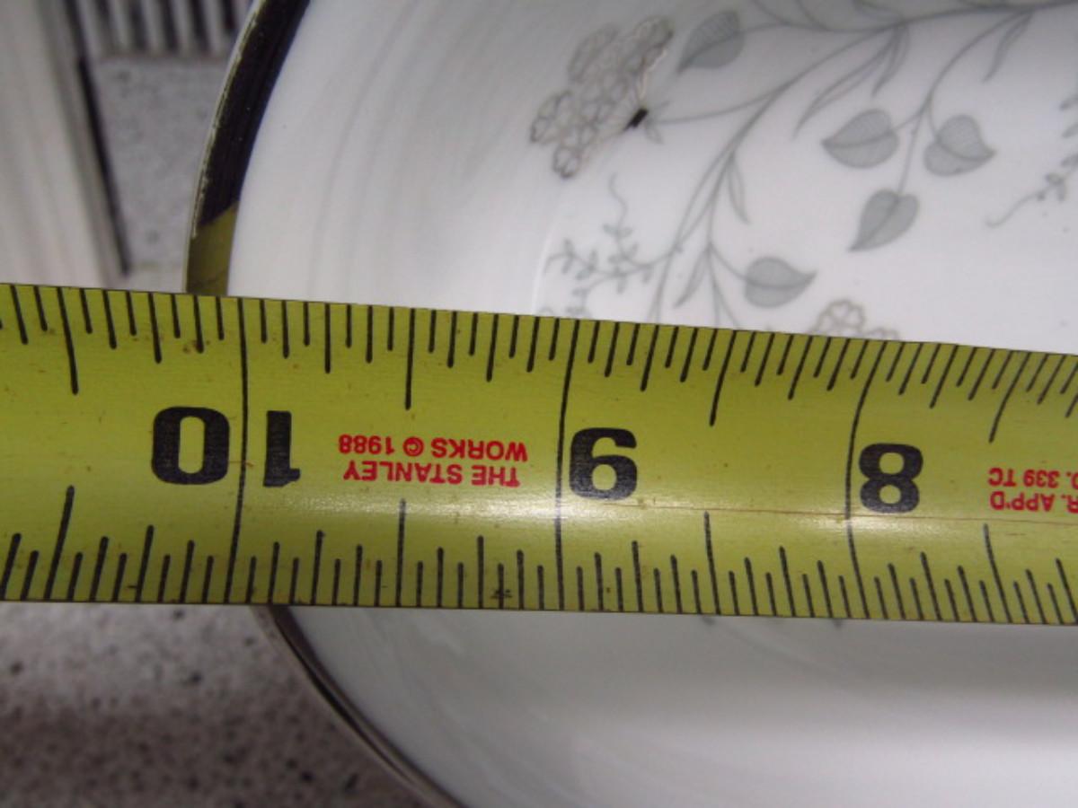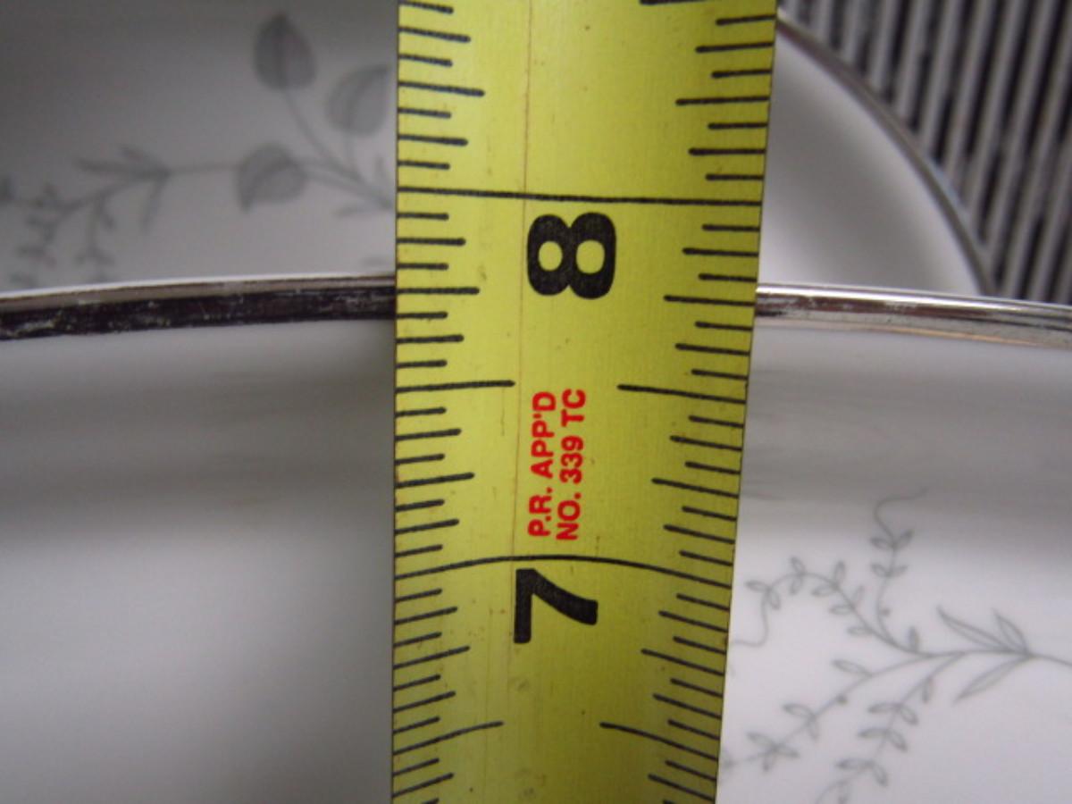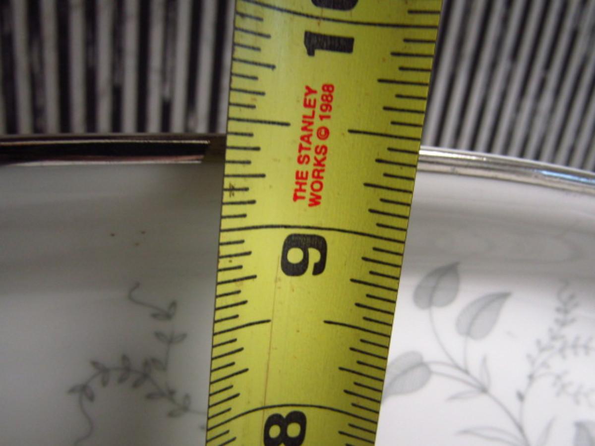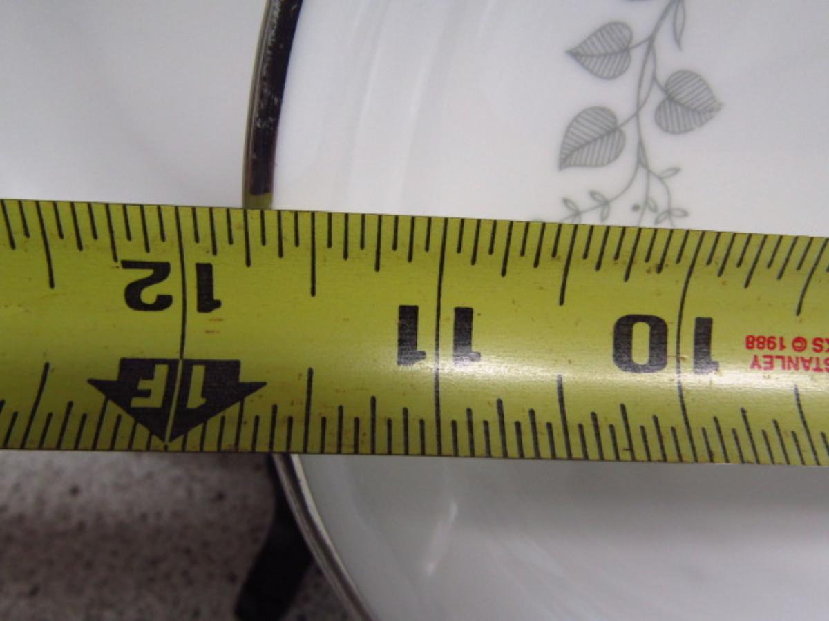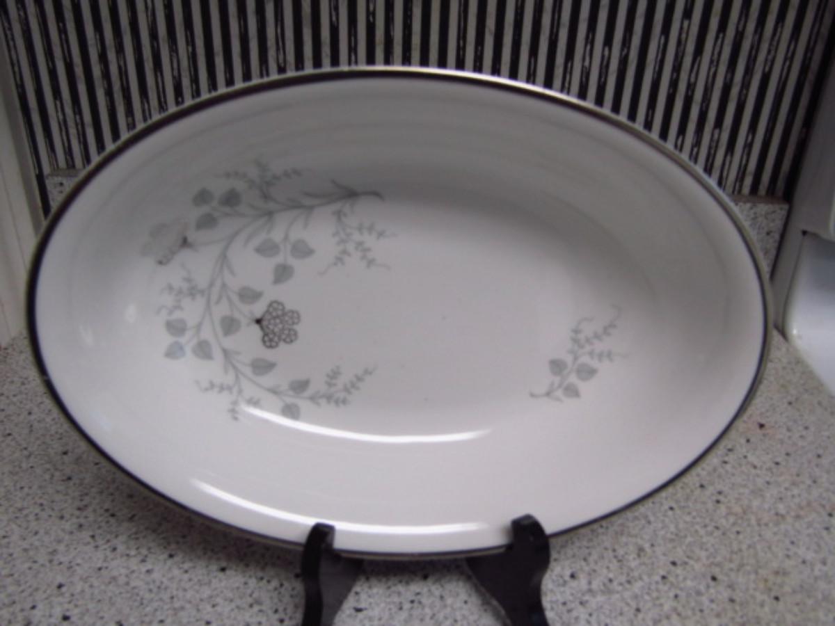 Jaeger & Co Dinnerware- Silver Glory Pattern- Approx 54 Pieces. Dinner plates- 9 pcs. Salad plates- 9 pcs. Bread plates- 9 pcs. Berry bowls- 7 pcs, Cups- 8 pcs. Saucers- 9 pcs. Platters- 2 pcs. Vegetable bowl- 1.