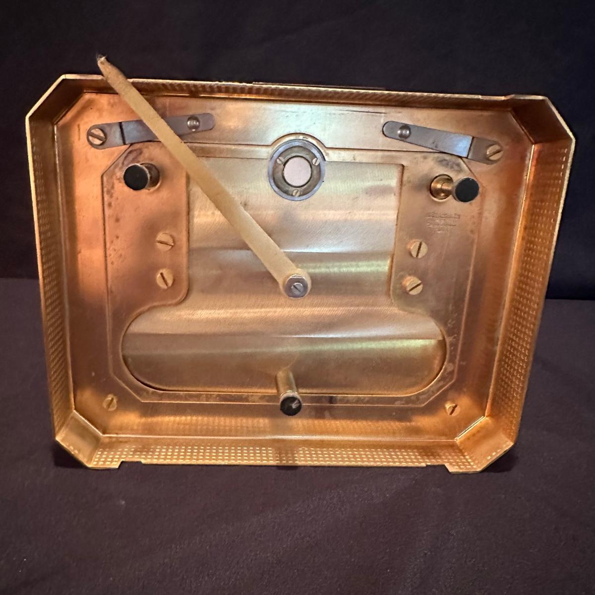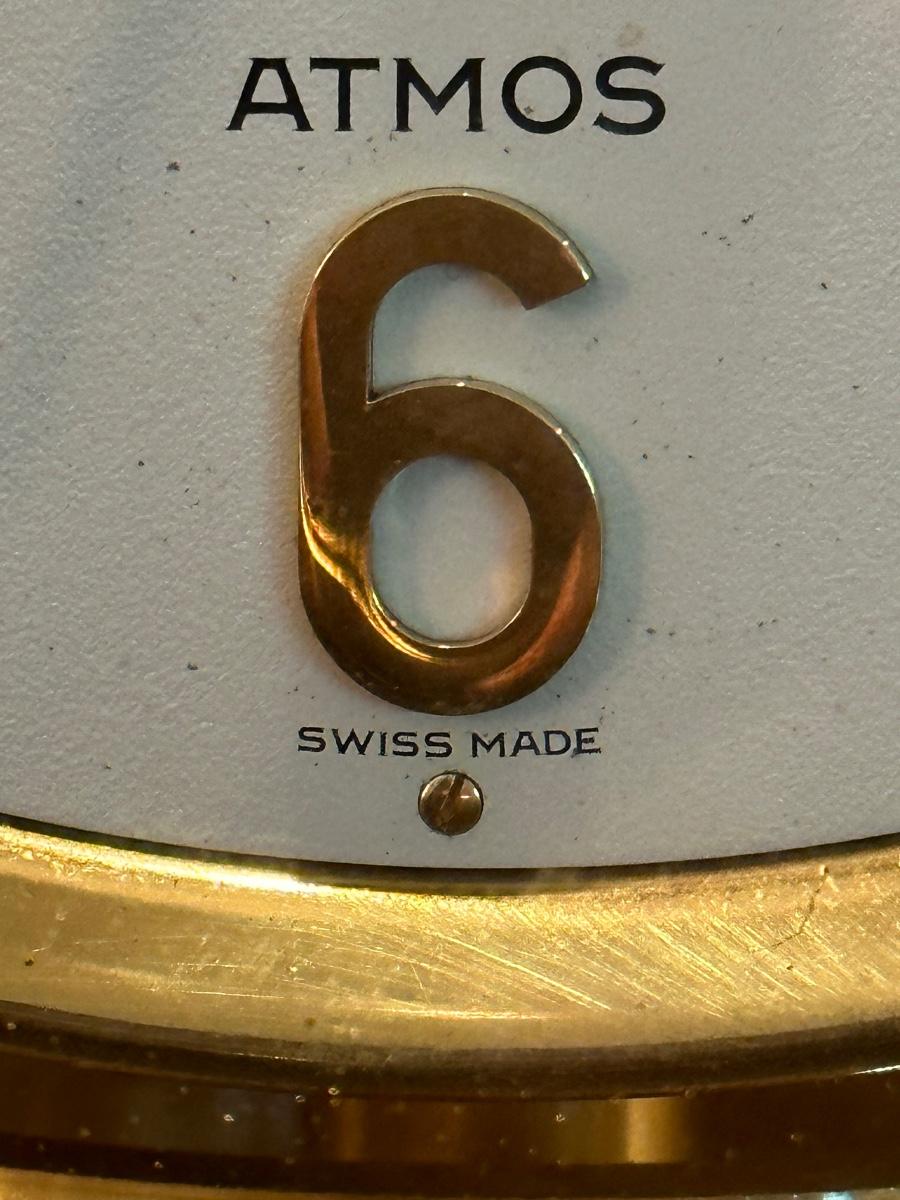 This unique Jaegur-LeCoultre Atmos brass and glass clock measures 6.5” x 8.5” x 9.25”H. The front glass panel is removable. The two bottom glass corners have factory notches in them for fit. Shipping available.