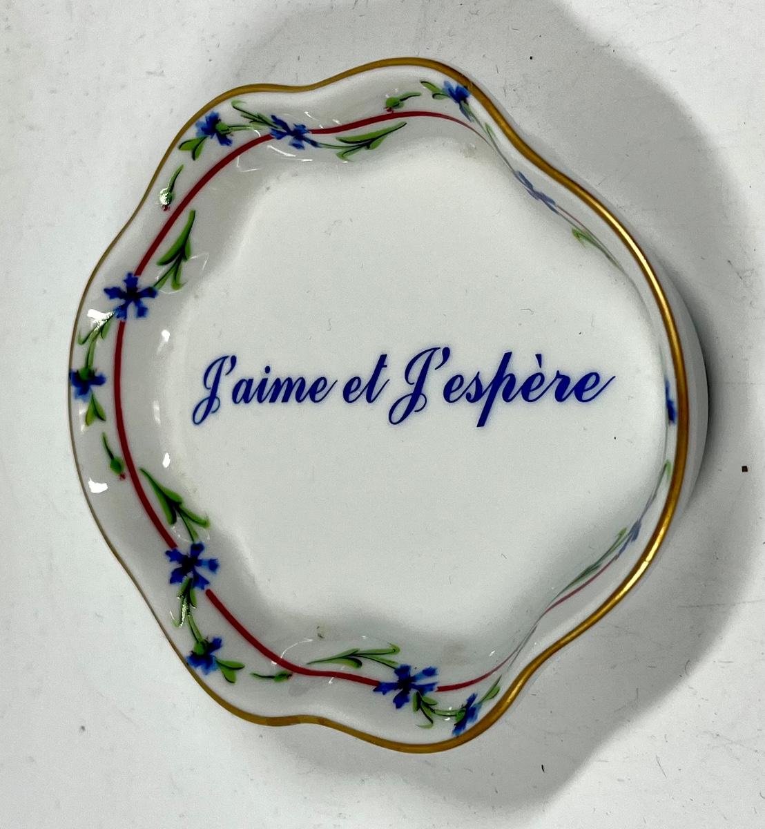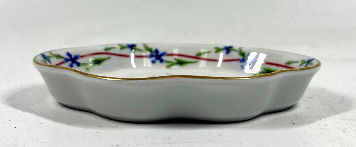 Jaime et Jespere miniature decorative dish blue flower vine pattern Mottahedeh Portugal