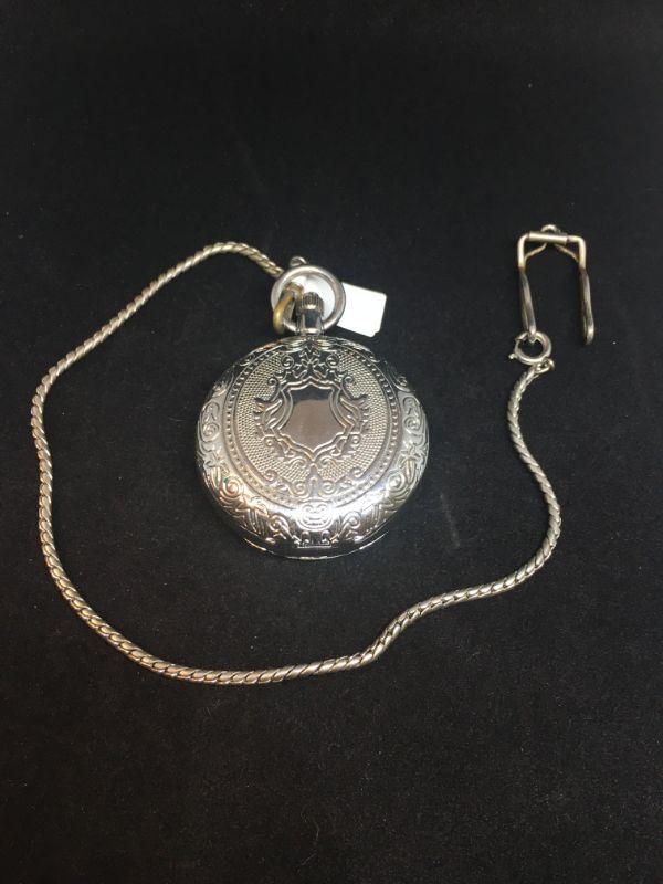 This pocket watch comes with its own jewelry box. It is in very good condition, and even has its own chain and manual.