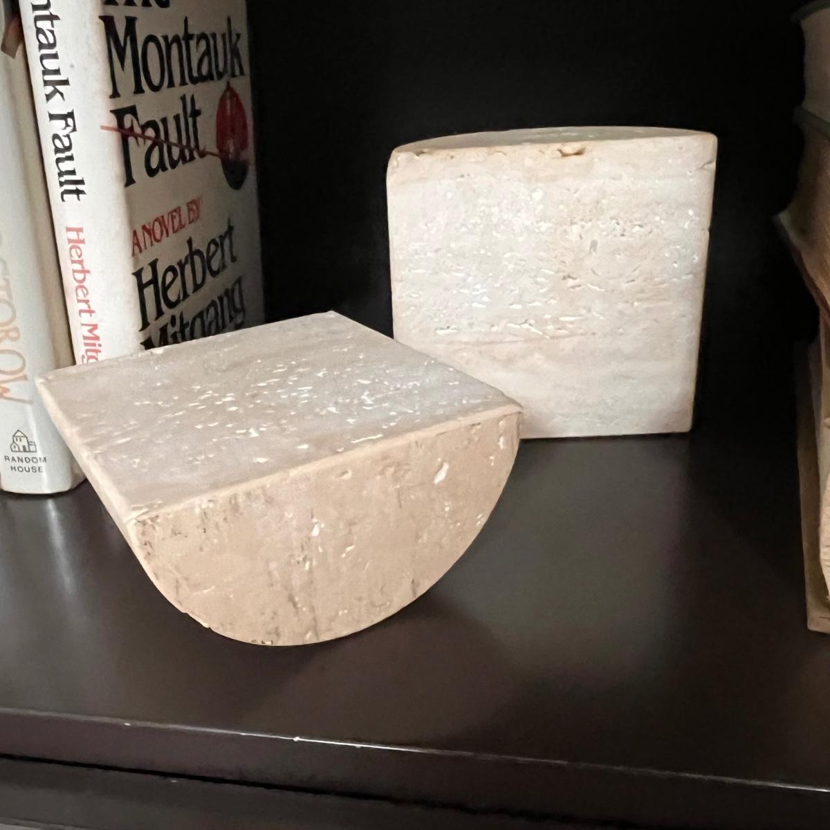 Approximately 12 books mostly from the 70’s-80’s. See pics for authors and titles. A pair of light colored bookends appear to be man made, possibly resin but give the appearance of being stone; each measures 4.5” x 2” x 4.5”H.