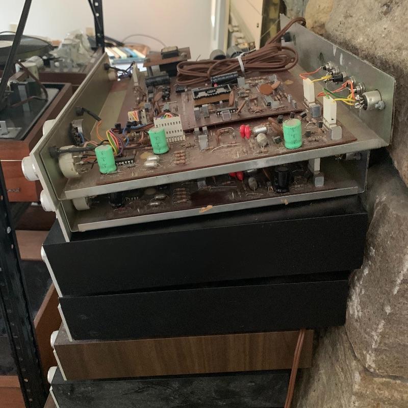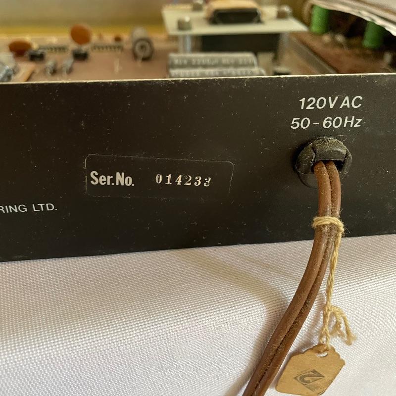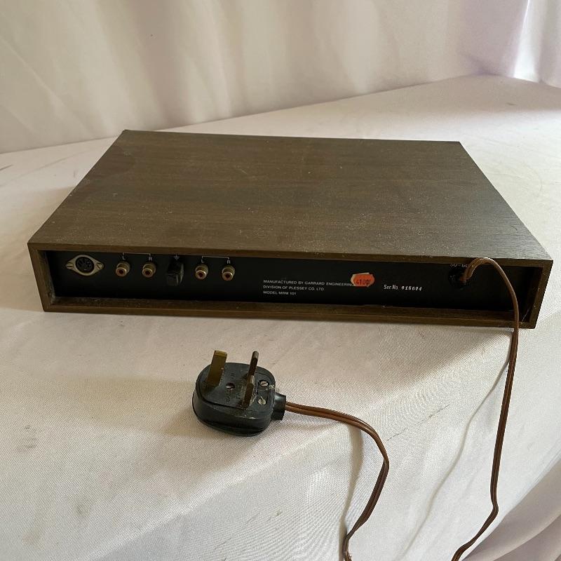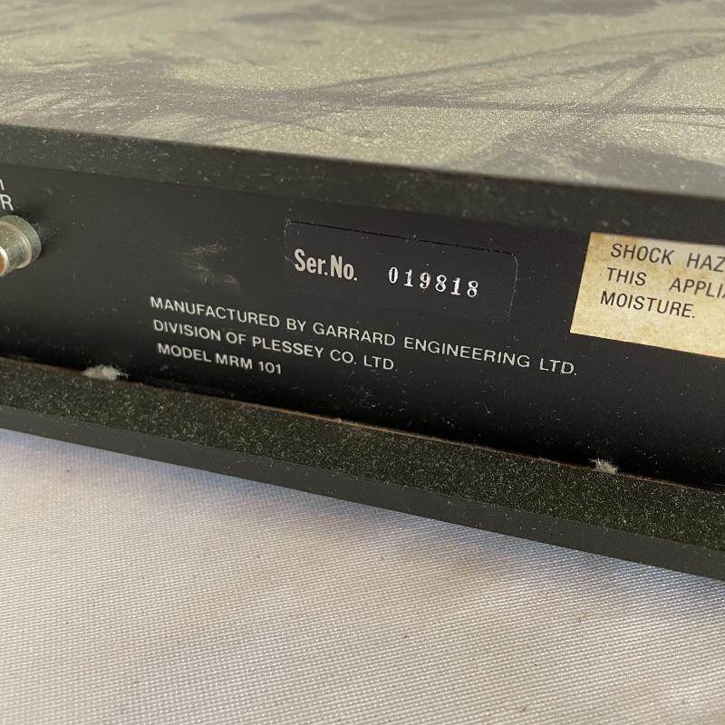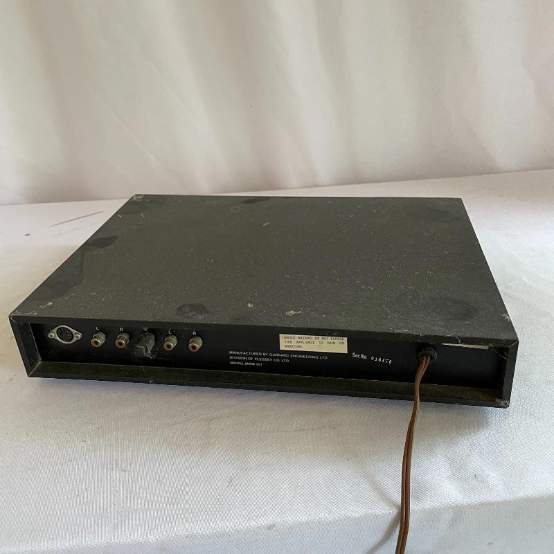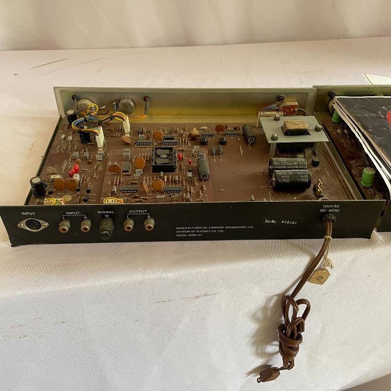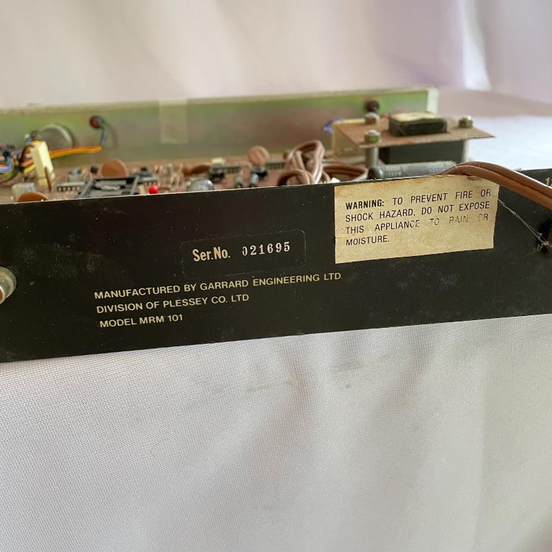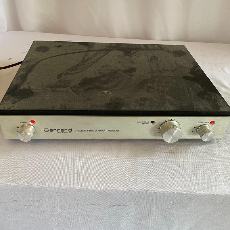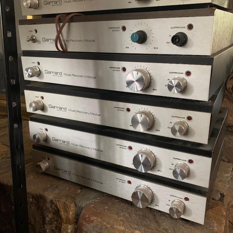Eleven Garrard music recovery modules. Two are missing their factory housing, but the other nine appear complete. There is also Garrard literature included in this lot. The two missing housing were not tested. See whether a unit powered on in images followed by their serial numbers. One unit was not tested due to cord shape.