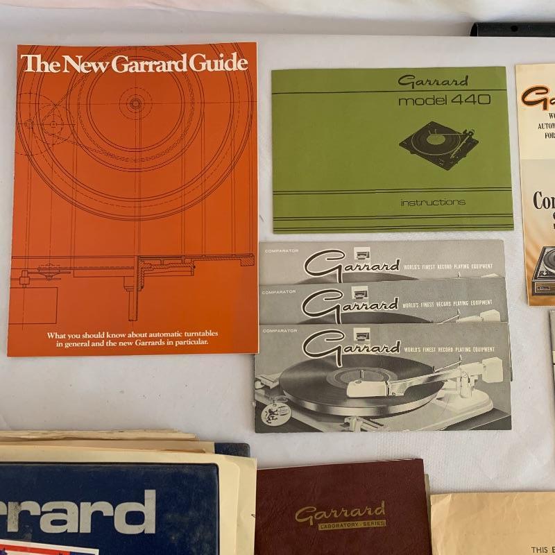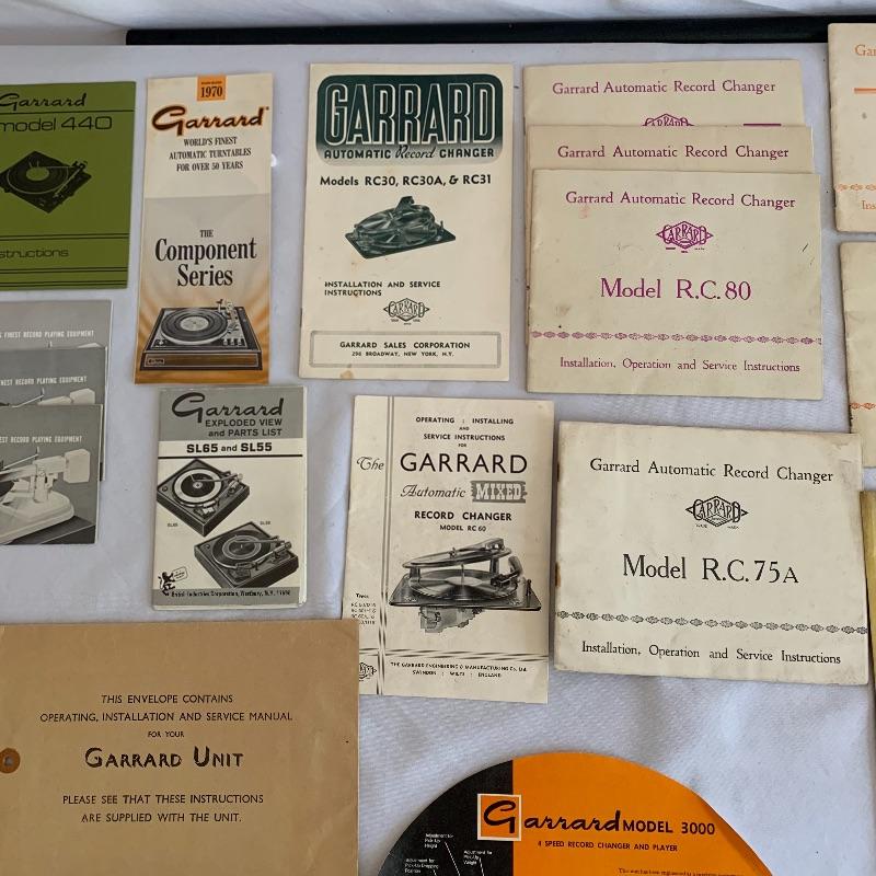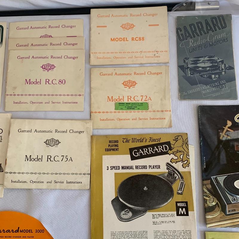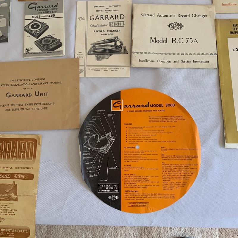 Assorted Original Garrard manuals featuring numerous models over many years of production.