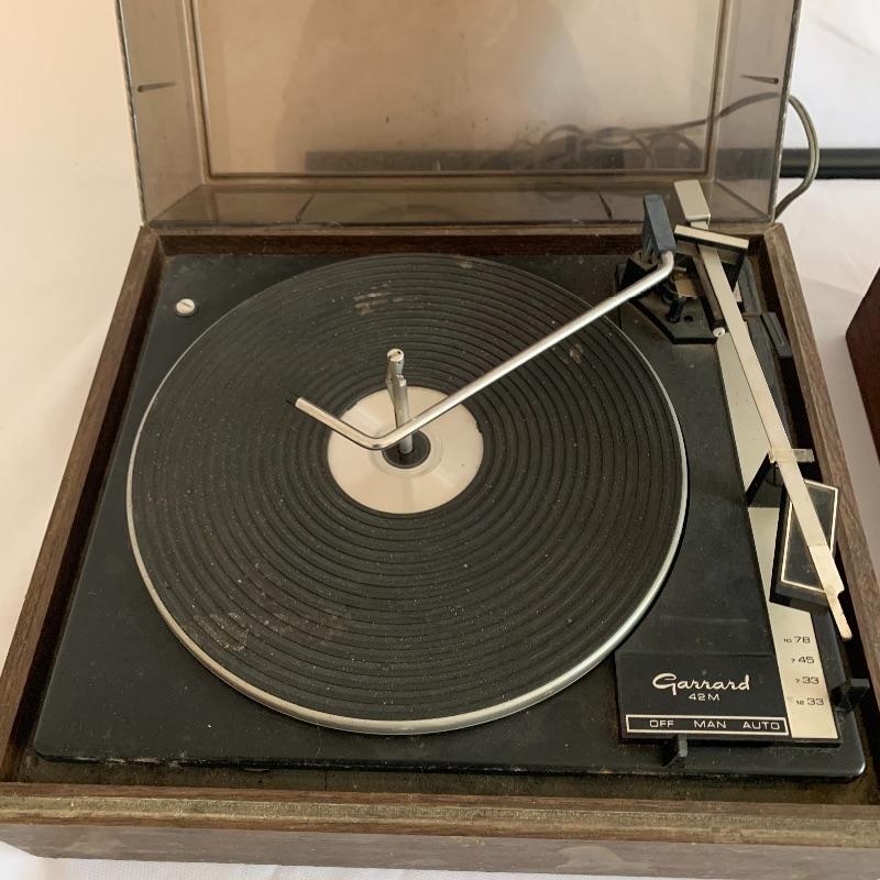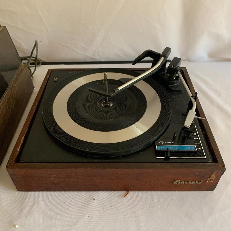 This lot features a Garrard model 42m turntable that powered on when tested. The second is a Garrard turntable and the model is unknown.