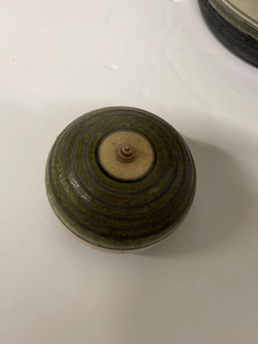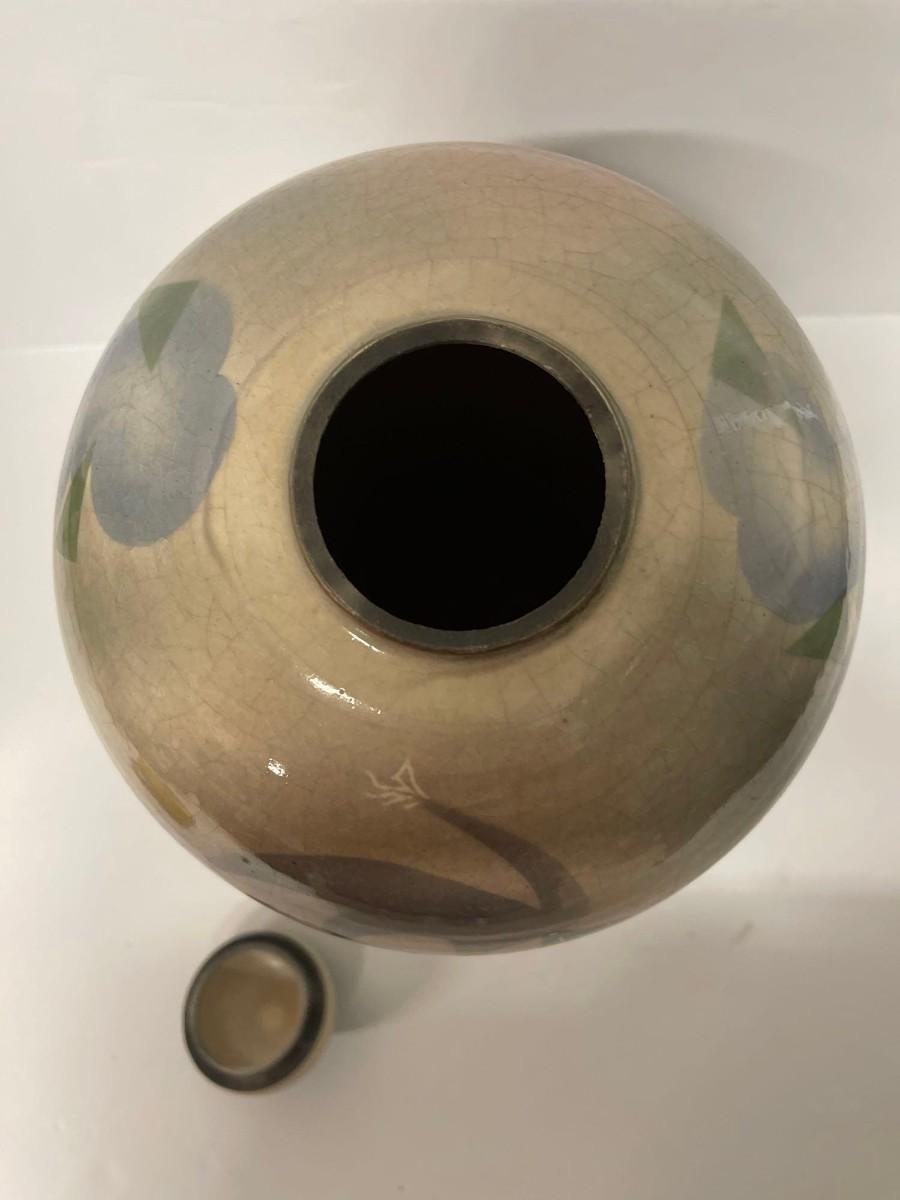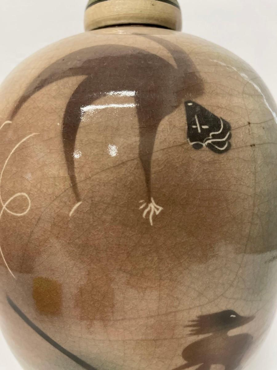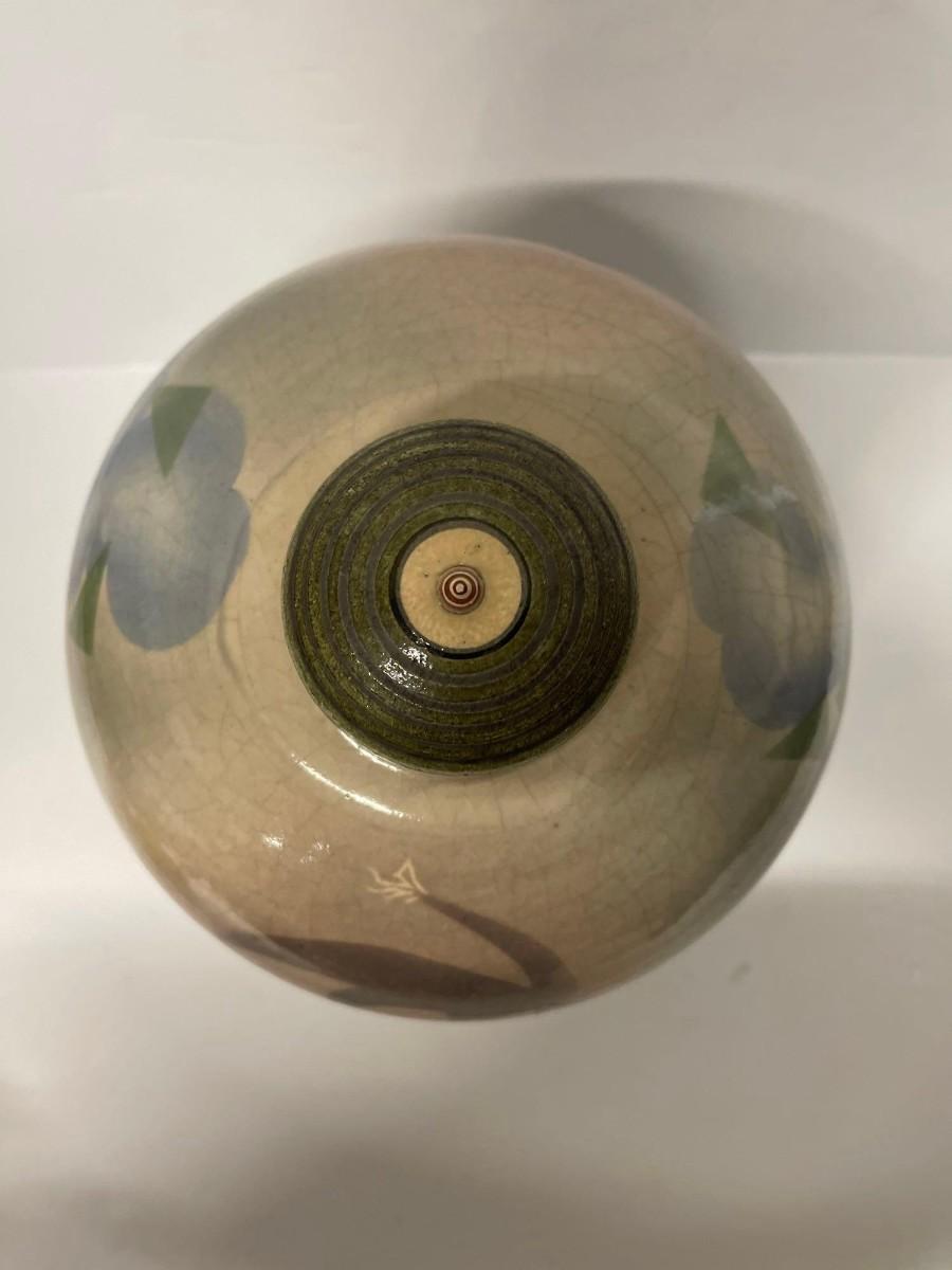 Jamie Davis pottery jar with lid.12 1/2” to tip of lid. Excellent condition. Marked JD on bottom. Jamie Davis was born in Philadelphia in 1945. He earned a B.A. from Vanderbilt University, Nashville, in 1967, an M.A. from Exeter College, England, in 1971, and an M.F.A. from Clemson University, South Carolina, in 1973. Primarily a ceramicist, Davis also creates wall-mounted sculptures of metal, fabric, and paper. His work has been exhibited at the Renwick Gallery, Smithsonian Institution, Washington, D.C., and in several galleries.
