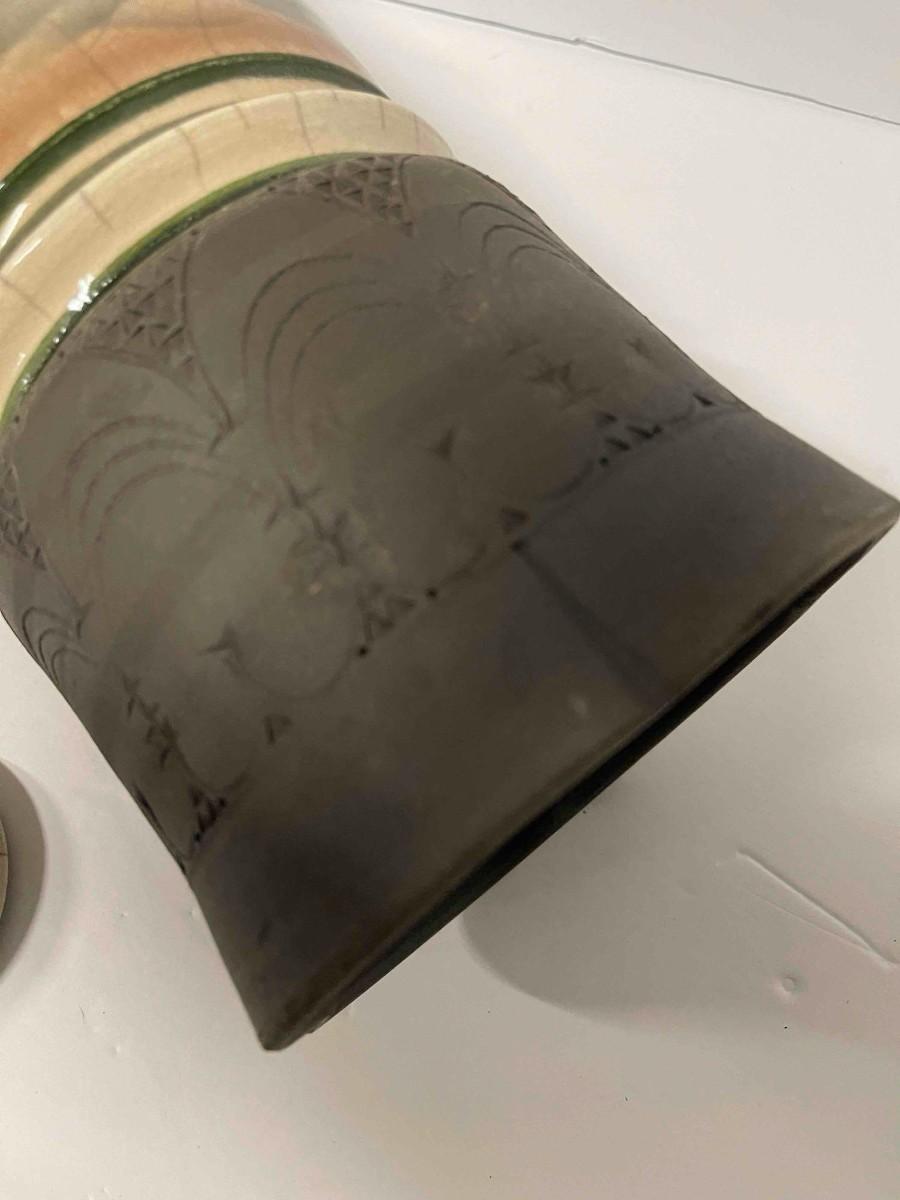 <p>Jamie Davis pottery jar with lid 19 1/4 inches high. Excellent condition.</p><p><br /></p><p><span style="background-color:rgb( 255 , 255 , 255 )">Jamie Davis was born in Philadelphia in 1945. He earned a B.A. from Vanderbilt University, Nashville, in 1967, an M.A. from Exeter College, England, in 1971, and an M.F.A. from Clemson University, South Carolina, in 1973. Primarily a ceramicist, Davis also creates wall-mounted sculptures of metal, fabric, and paper. His work has been exhibited at the Renwick Gallery, Smithsonian Institution, Washington, D.C., and in several galleries.</span></p>
