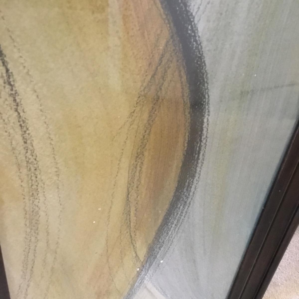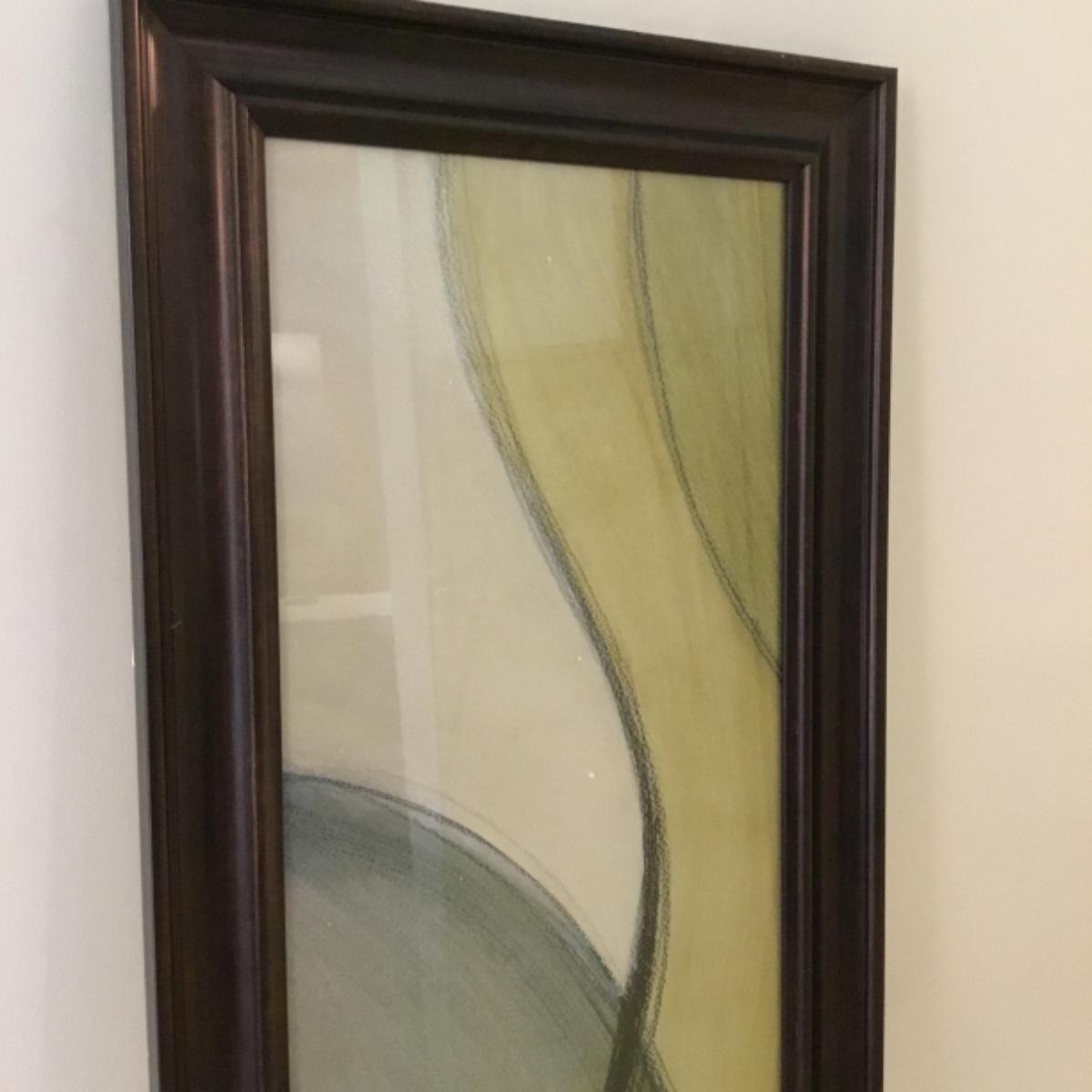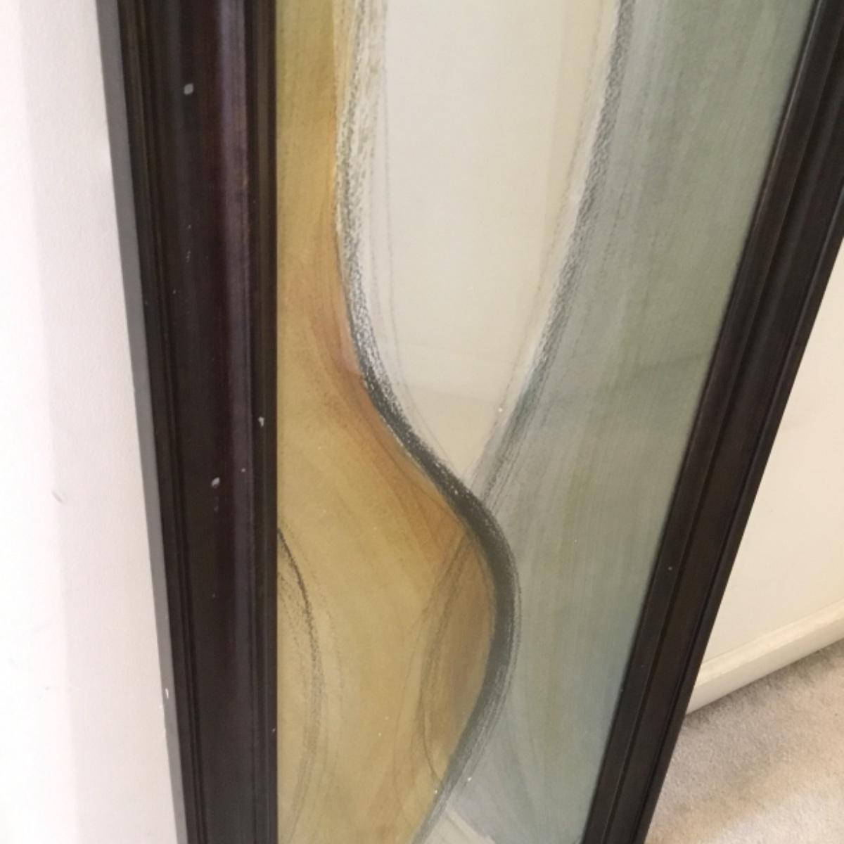 Lot includes two cohesive pieces of framed art. Frames both measure out to approx. 16.5”x40.5”. Notice the modern art design and colors of blue, green, orange and black sketching. “˜Jamie Loreth’ at the bottom of the art pieces. These are both prints. See photos for details. Local pickup only.