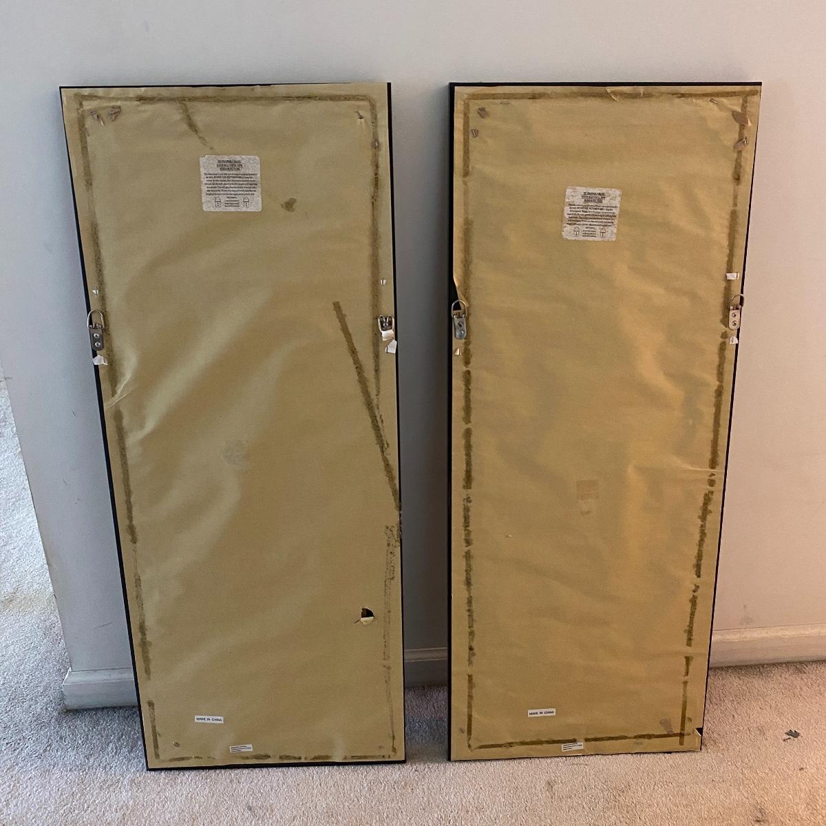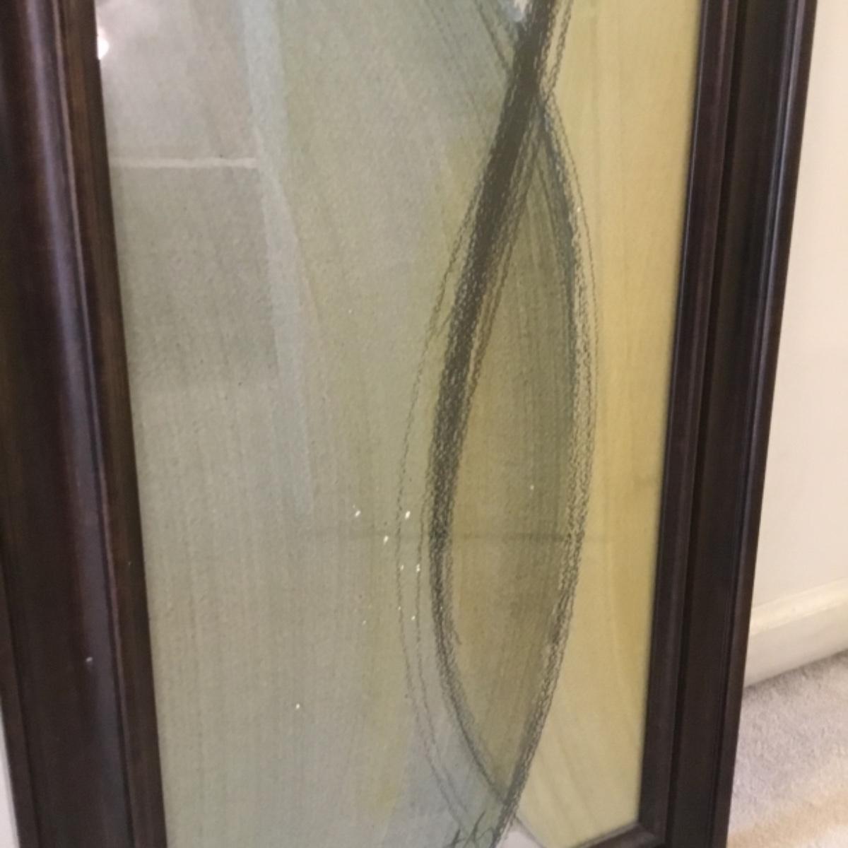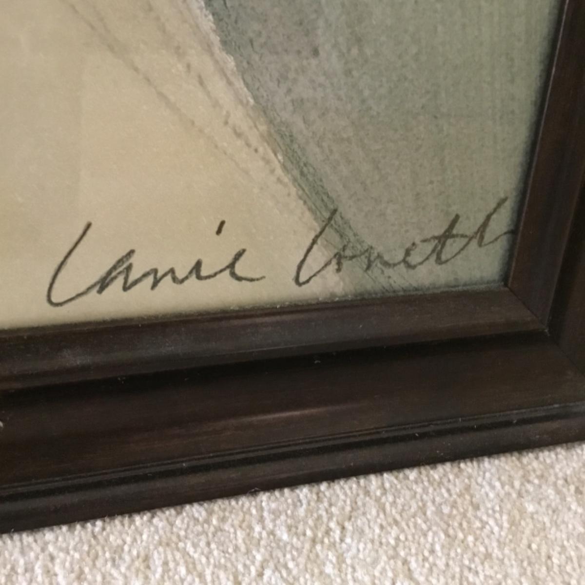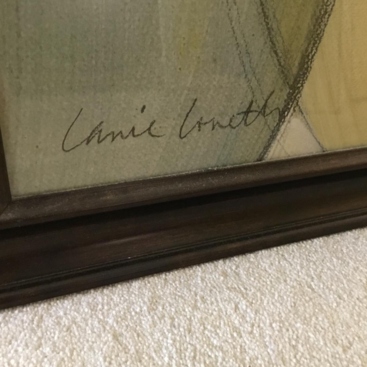 Lot includes two cohesive pieces of framed art. Frames both measure out to approx. 16.5”x40.5”. Notice the modern art design and colors of blue, green, orange and black sketching. “˜Jamie Loreth’ at the bottom of the art pieces. These are both prints. See photos for details. Local pickup only.