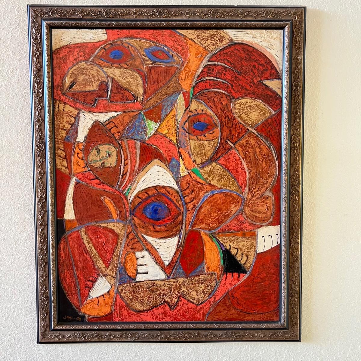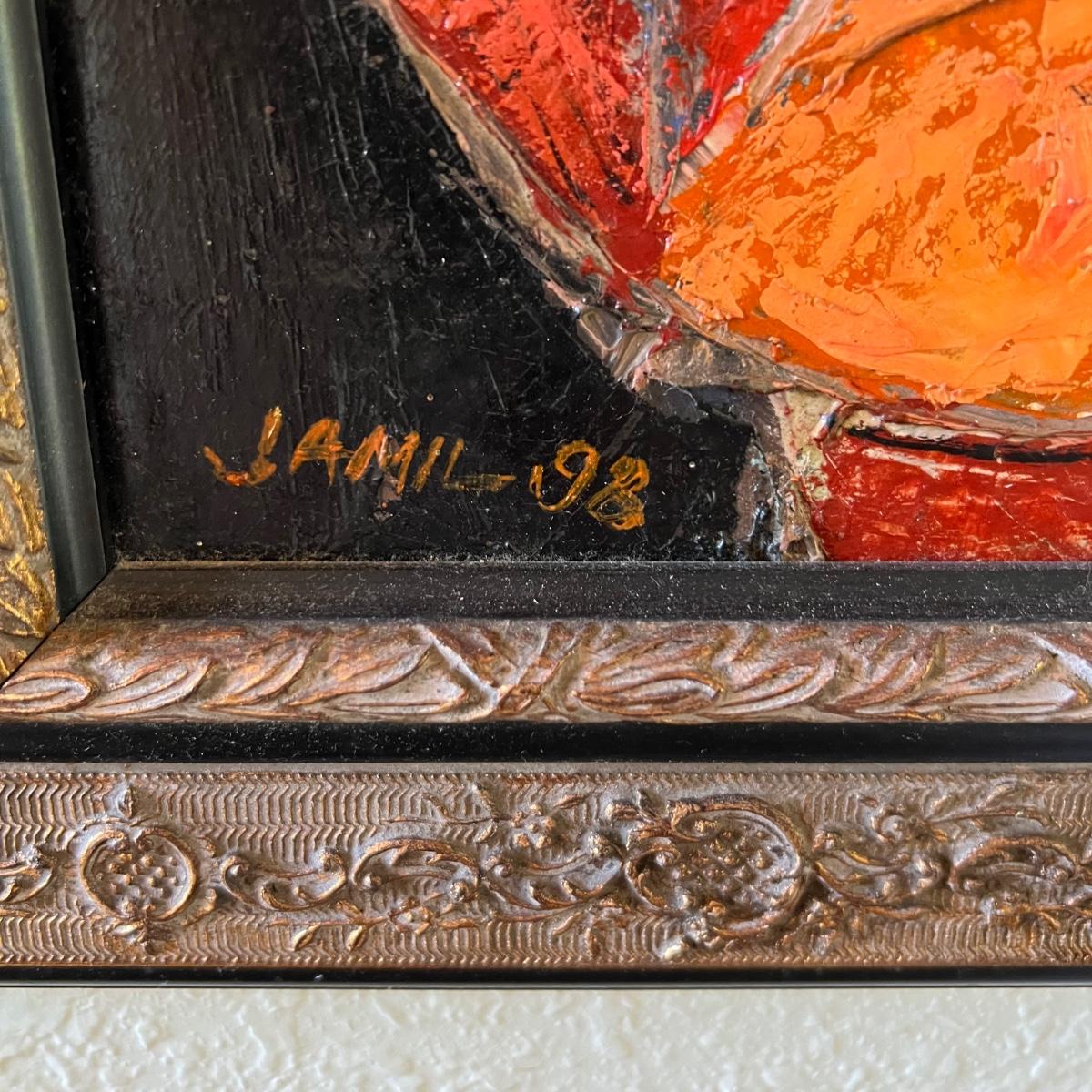 This vibrant large pairing is signed and dated - Jamil “˜98. It appears to be an original and is mounted in a ready to hang resin like frame (not under glass) that measures 32” x 40”.