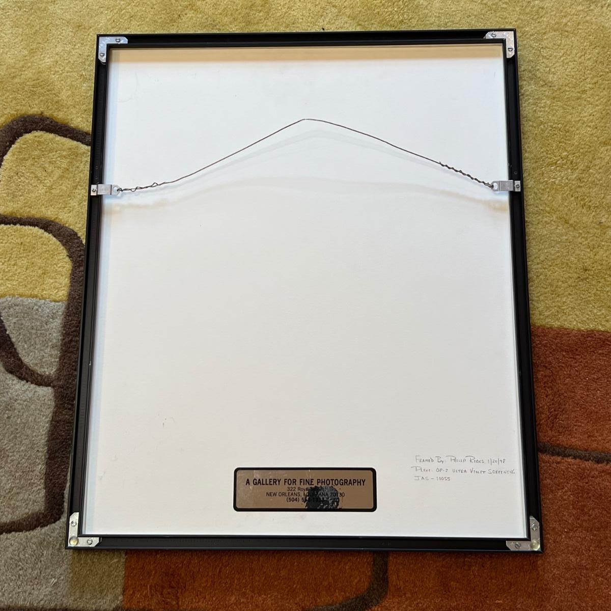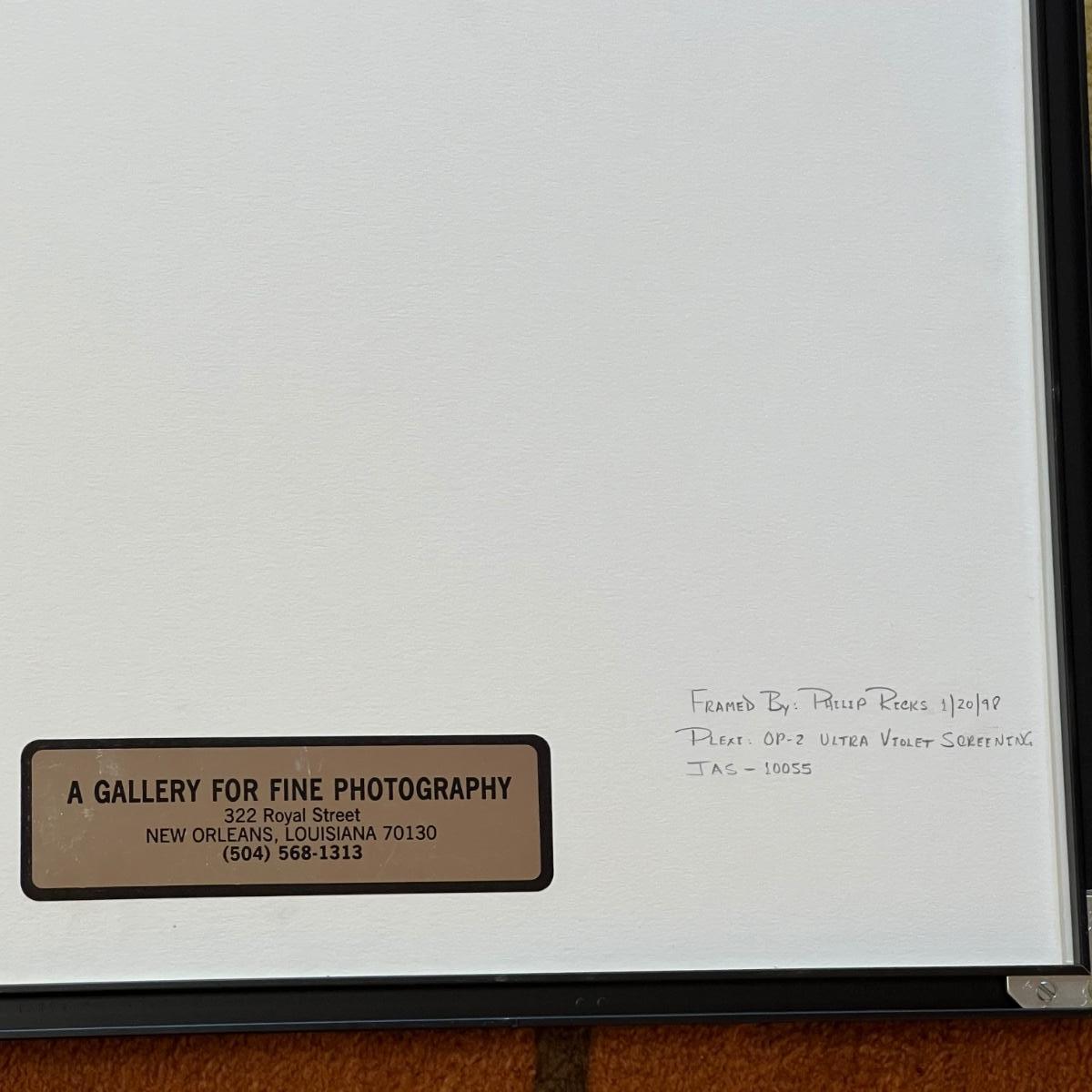 Signed and numbered model print by Czech photographer Jan Saudek. Matted and mounted under plexi glass with ultra violet screening; this piece is housed in a modern black metal frame. Frame measures 20” x 1” x 24”H.