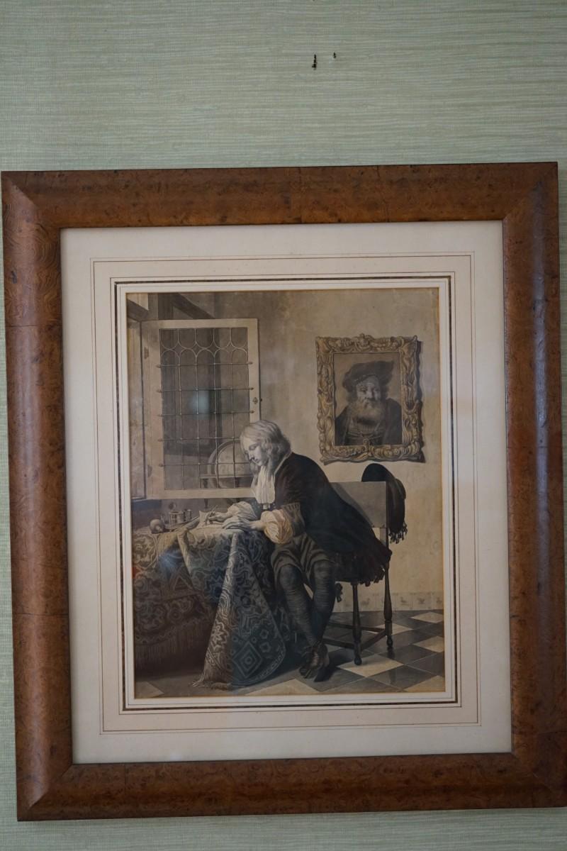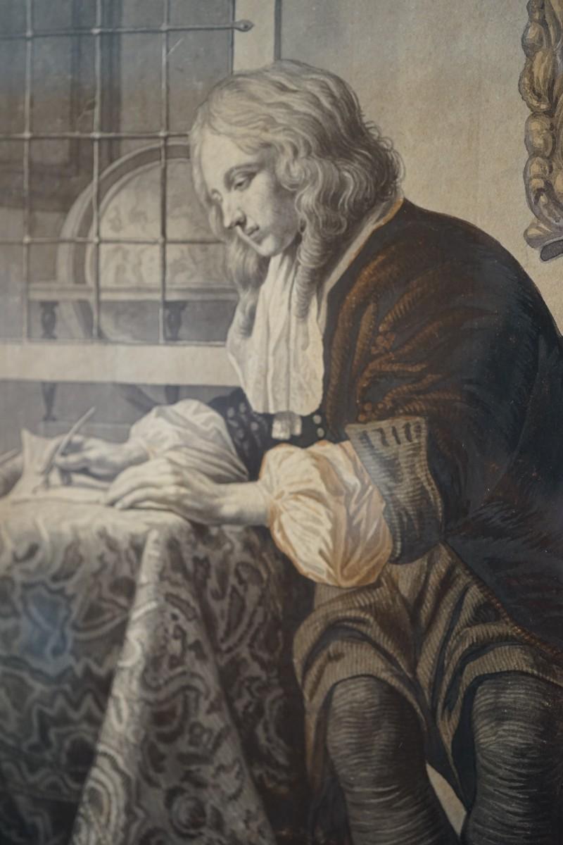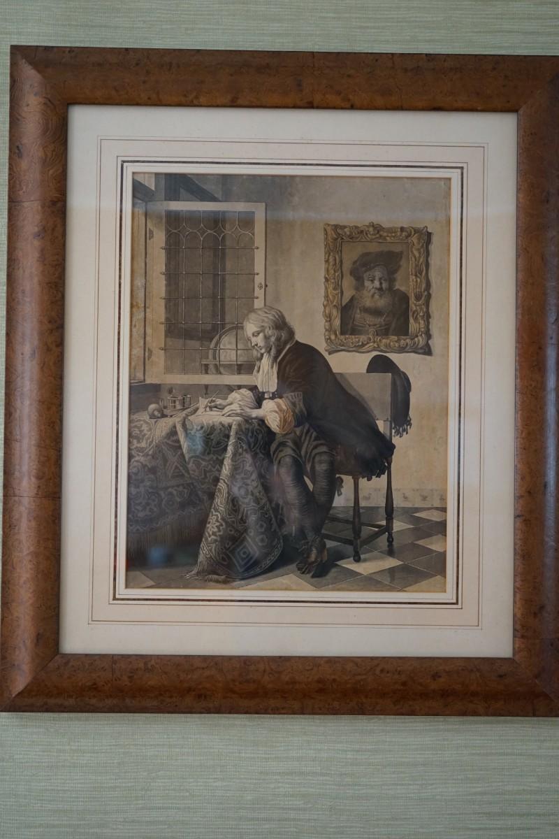 measures 24 1/2" by 21" mezzotint/ lithograph, hand colored.