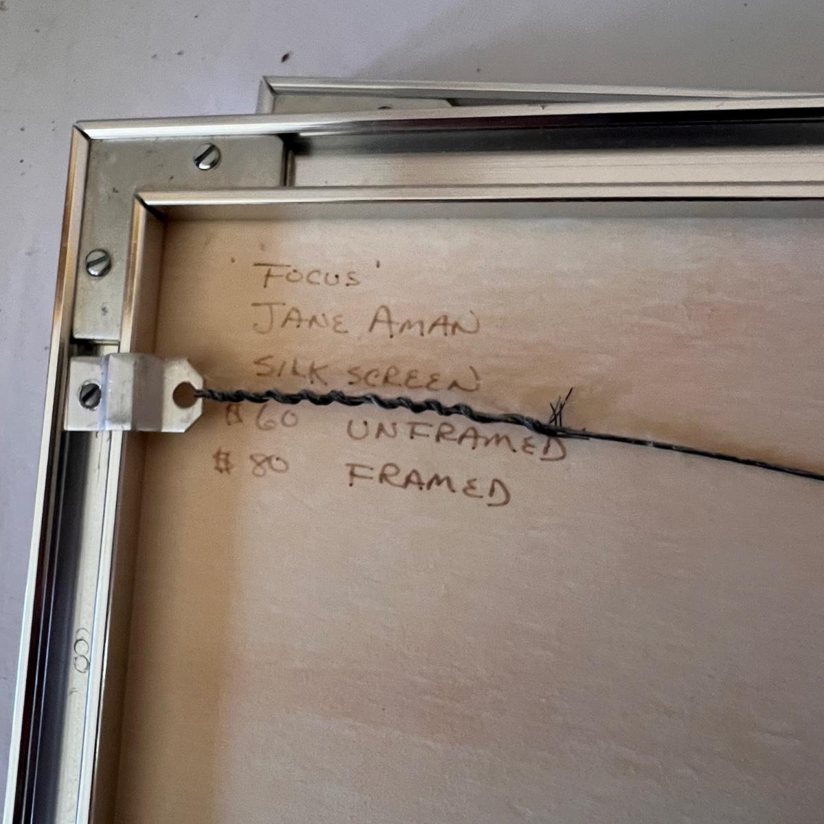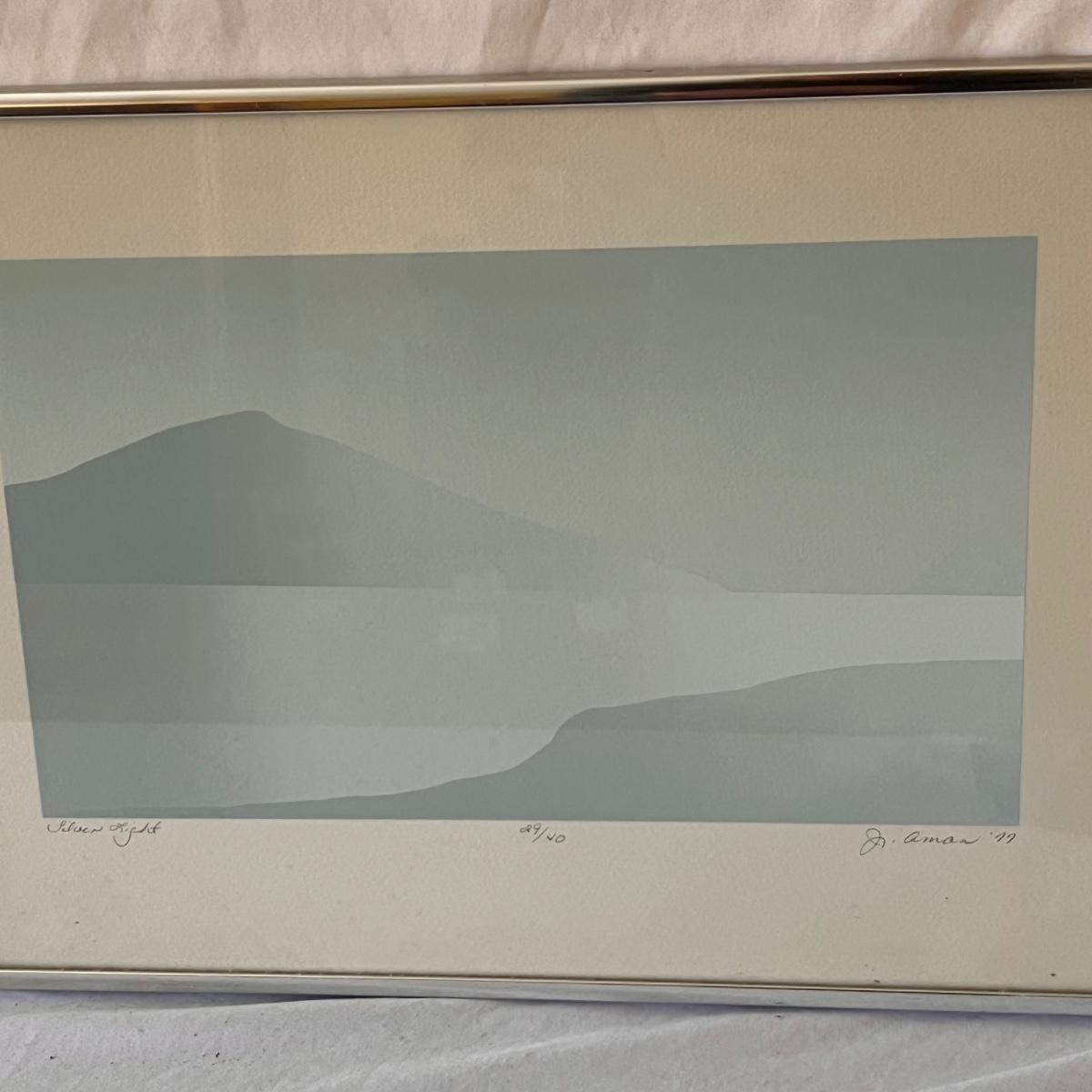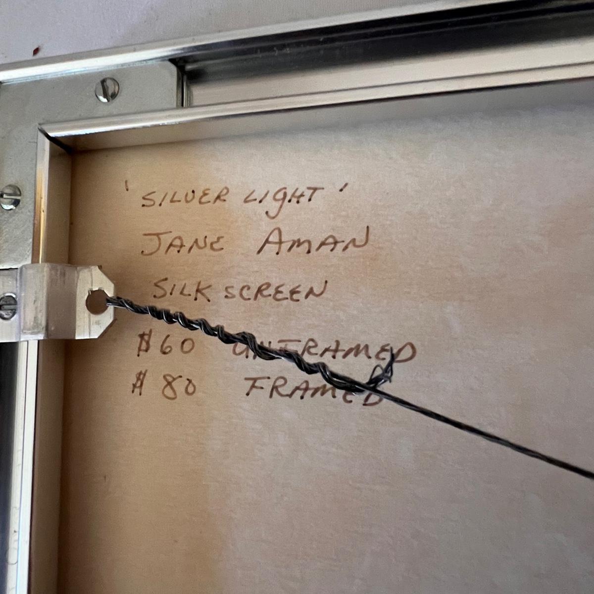 Three beautiful silk screens by Jane Aman. All are under glass matted and mounted in matching silver metallic frames. See images for titles etc. All three are pencil signed and numbered but the larger piece does not have a title.