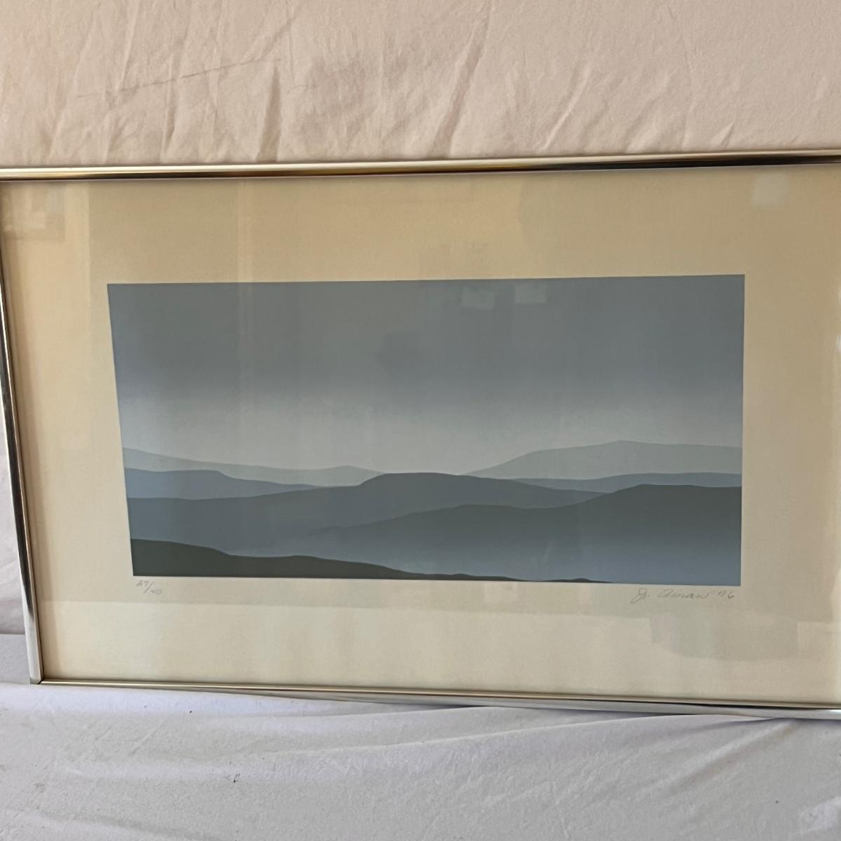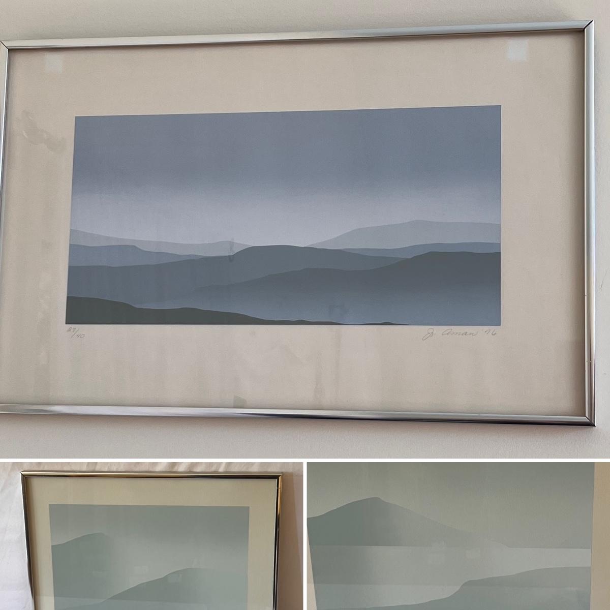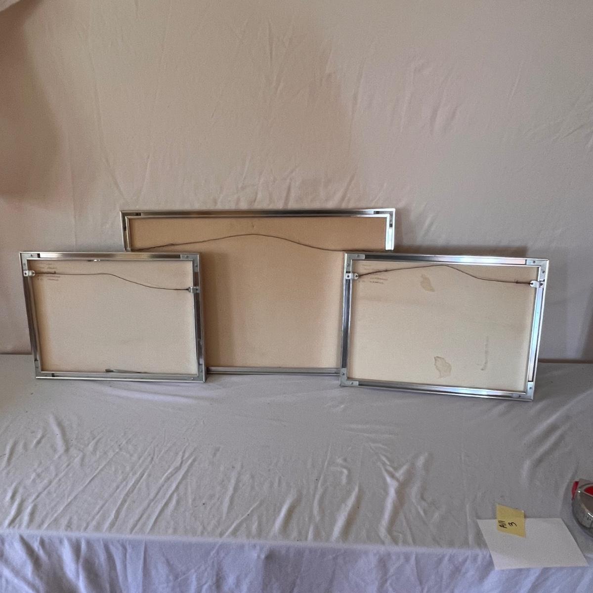 Three beautiful silk screens by Jane Aman. All are under glass matted and mounted in matching silver metallic frames. See images for titles etc. All three are pencil signed and numbered but the larger piece does not have a title.
