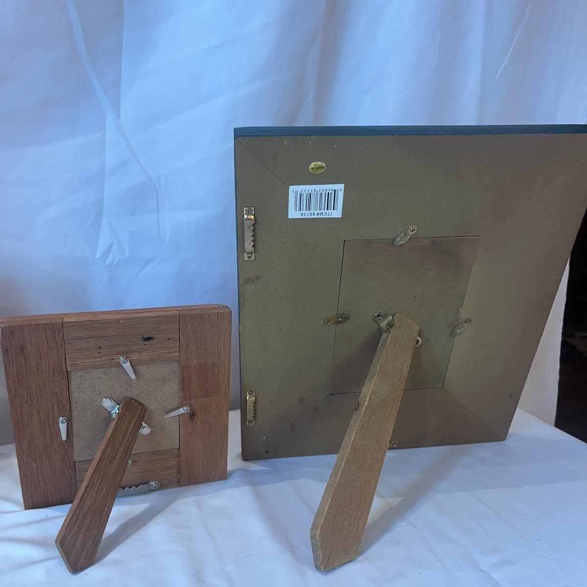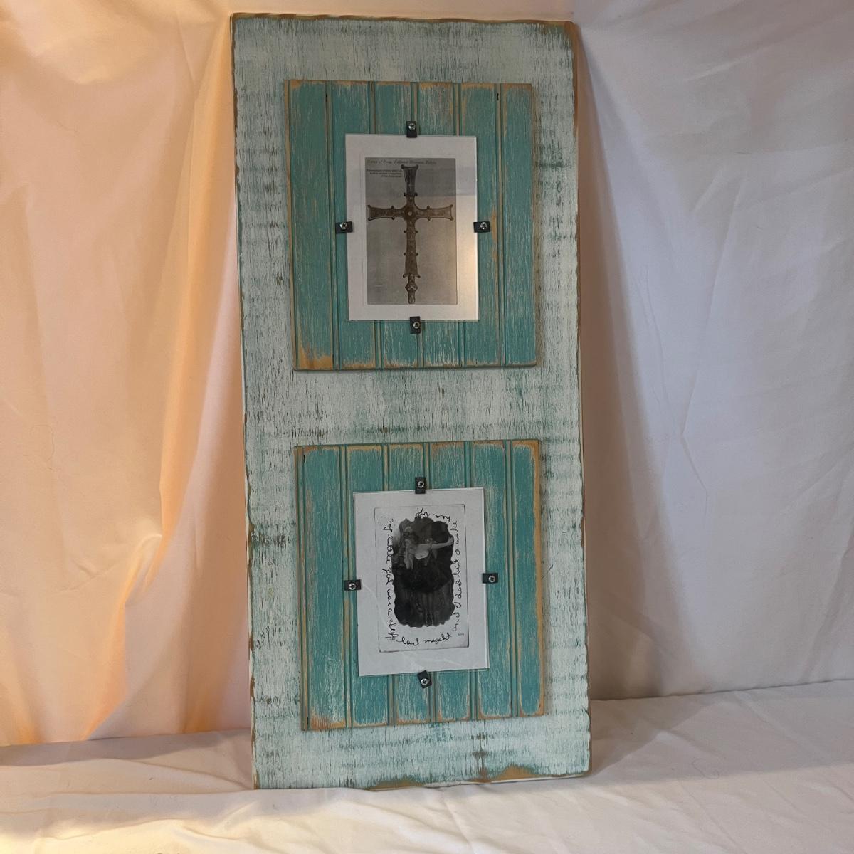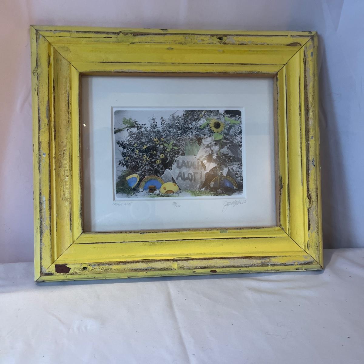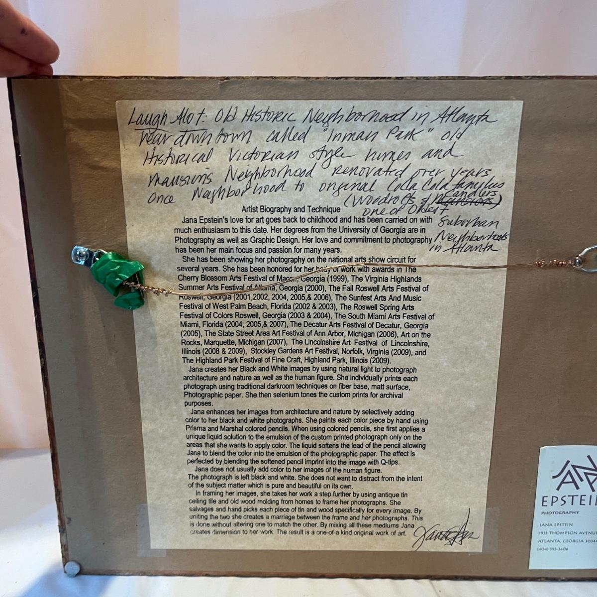 Lot includes a Jana Epstein wooden framed colored photograph and ten more rustic wooden picture frames. Largest piece measures 13” x 29”H.