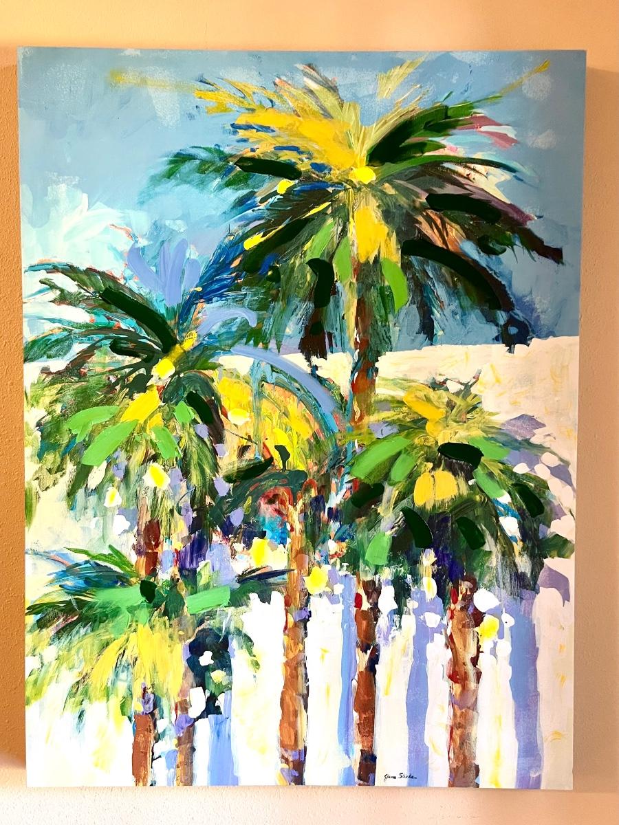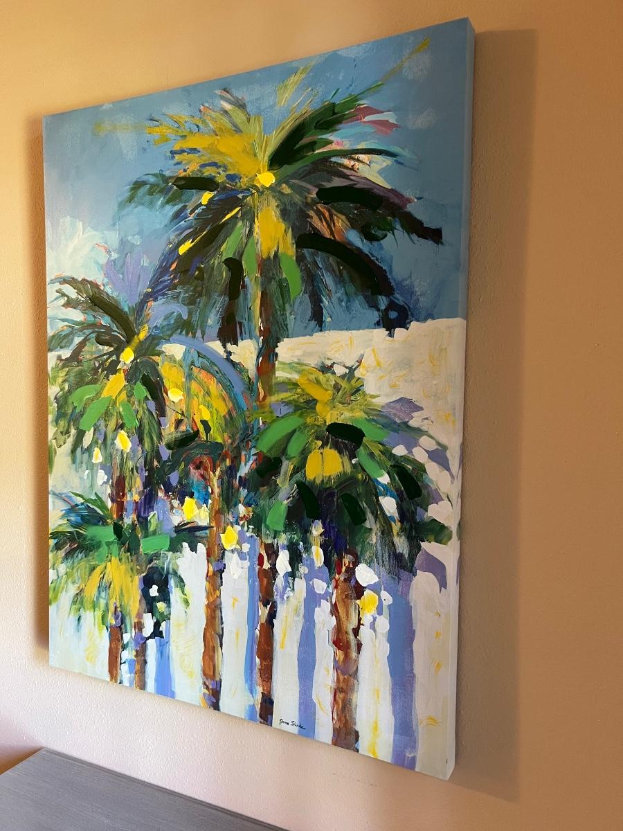 LARGE Shadow Palms Canvas textured Painting by Jane Slivka measures 40 inches tall, 30 inches wide and 1 1/2 inches deep.
