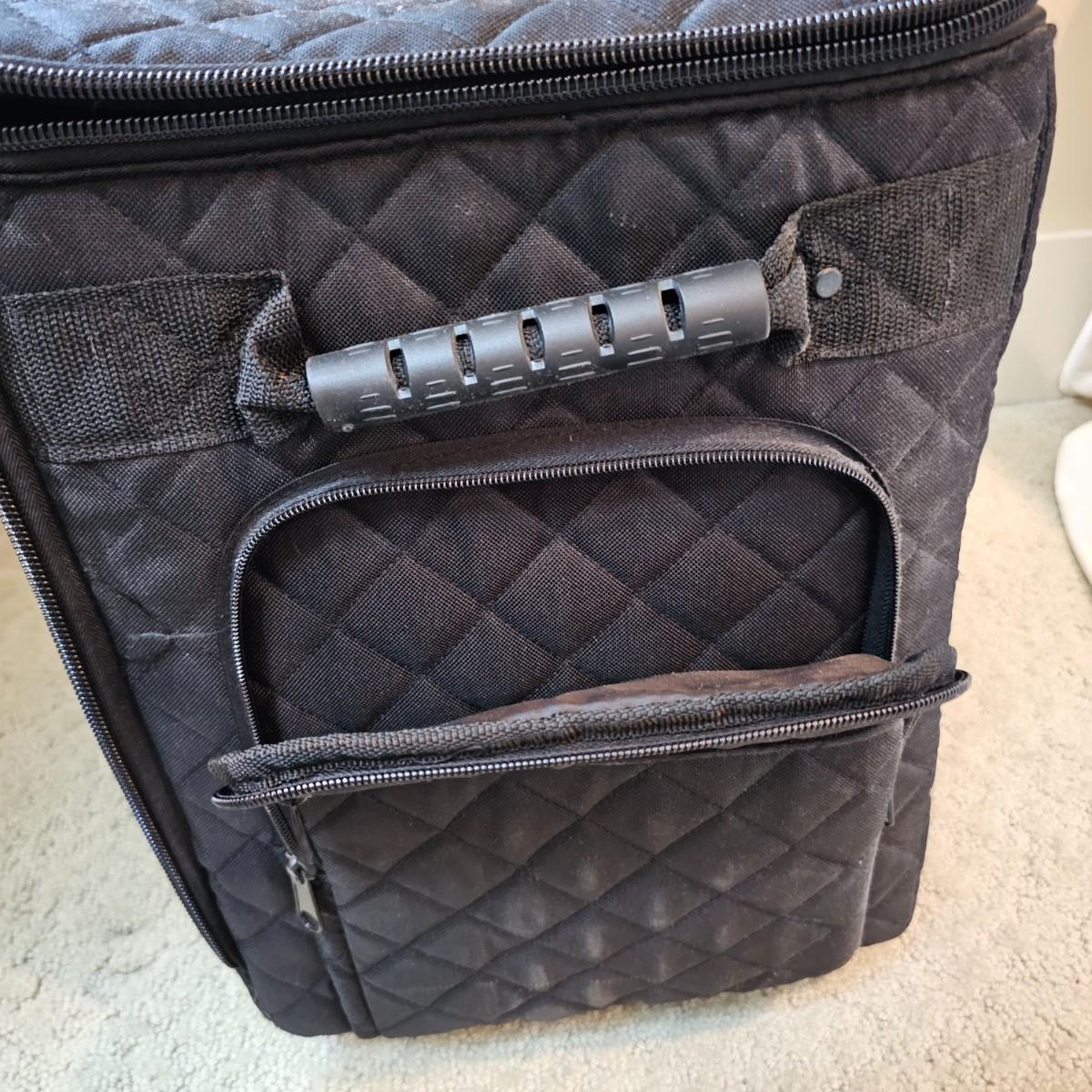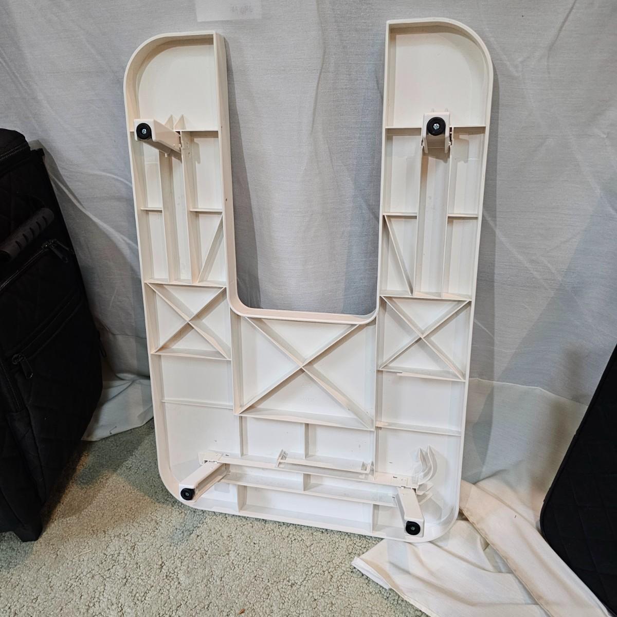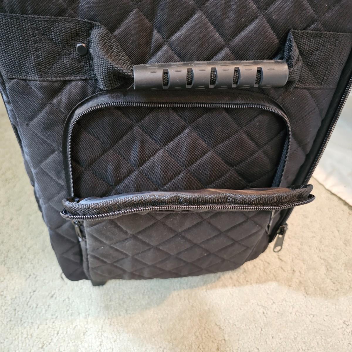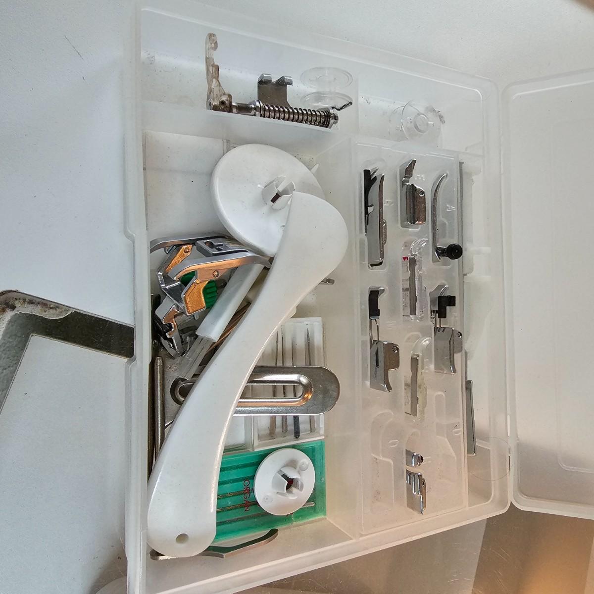 One Janome Professional 6600 P sewing machine with carry case and slide on table, also with case. This machine will sew hundreds of different stitches and patterns, has LED screen on front, auto needle threader, auto thread cutter and more. It powered on when plugged in. Comes with cushioned/padded carry case on wheels, and an auxiliary sewing table with its own padded case. Also has power cord, foot pedal, accessory kit and an additional high intensity light above the needle area. Case measures approximately 24” x 14” x 18”H. This lot does not include the large Horn of America sewing station or the lucite panel to fit the Janome. These items are listed in a separate lot. in this auction. See photos for details. Shipping available. Shipping can be costly. We suggest contacting our preferred local shipping provider, Postage Express, with dimensions and getting an estimate before bidding: (828) 670-5501 or postageexpress@yahoo.com.