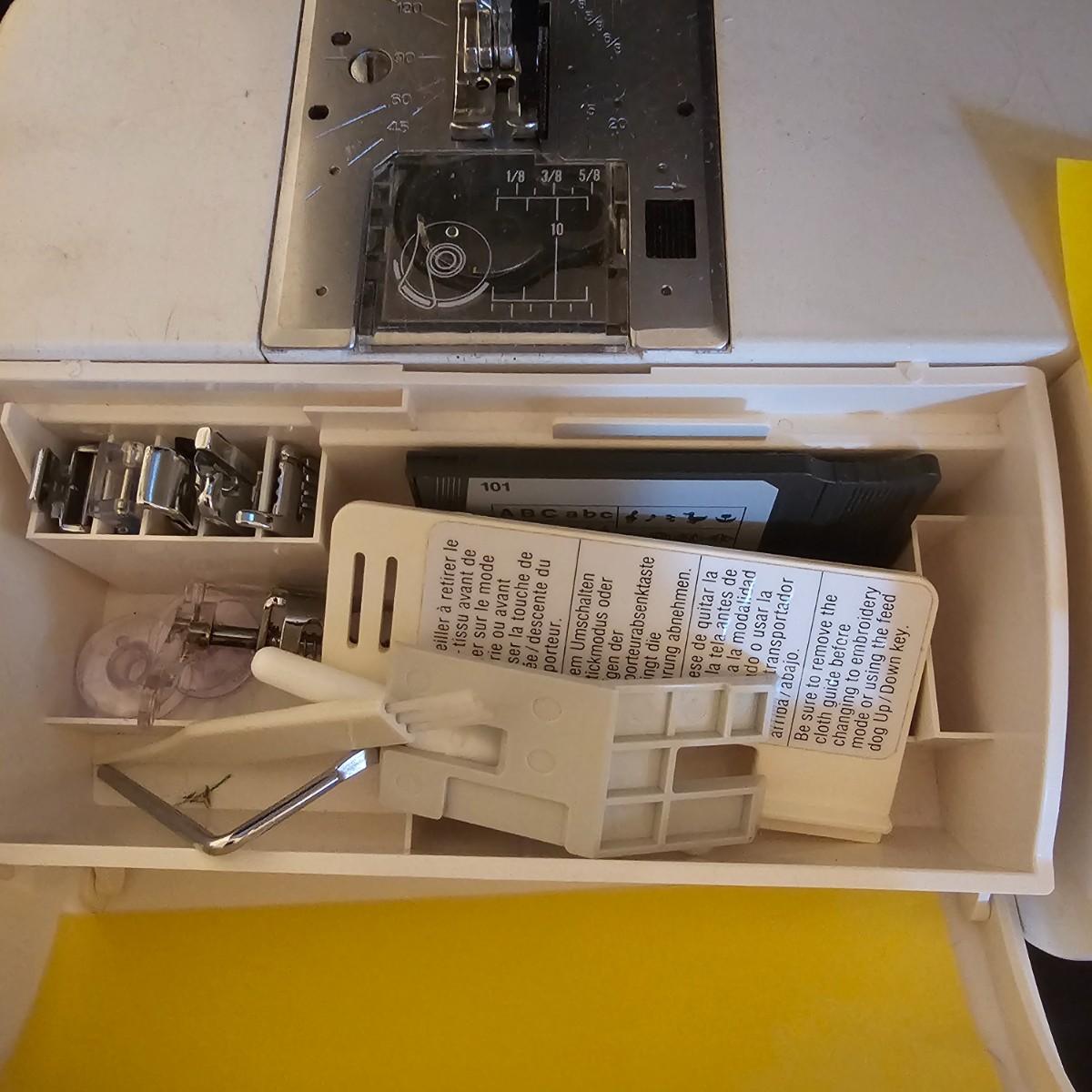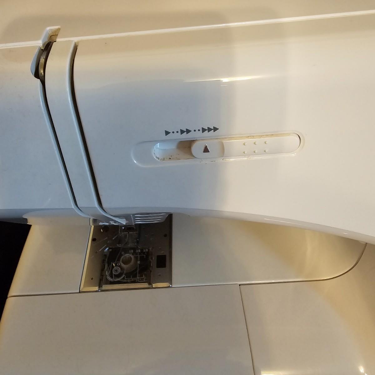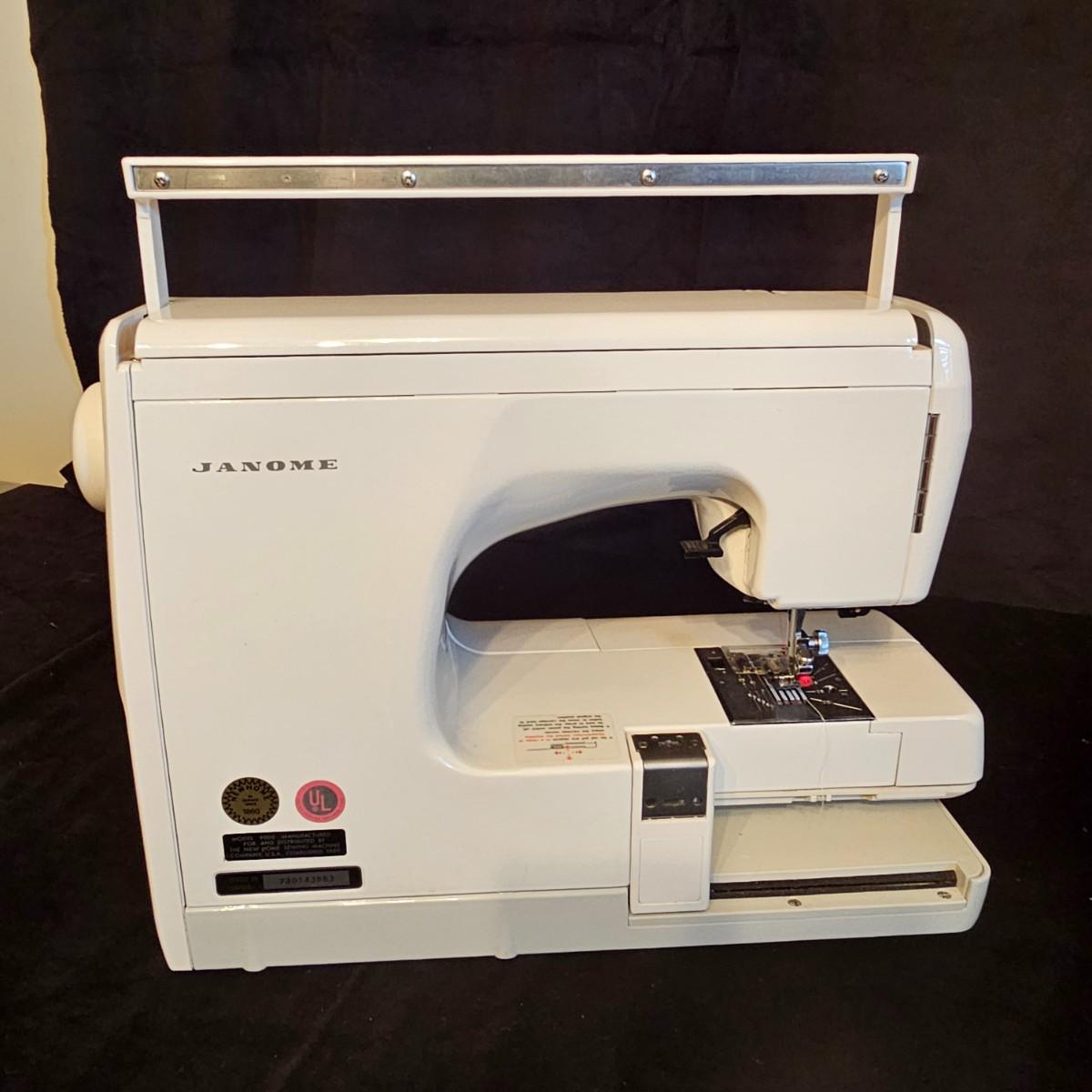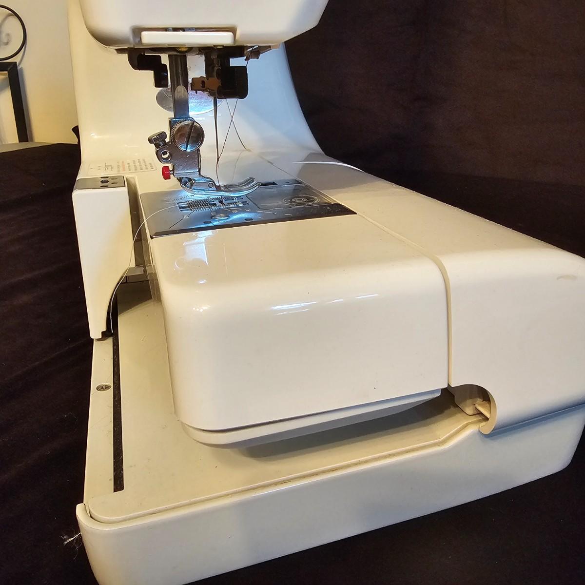 Two Janome Memory Craft 9000 sewing machines, one working, one for parts. Power cords and knee bars for both but only one foot switch. These are computer controlled machines and have some embroidery capability. Model has 326 built in stitches and 6 buttonhole options, auto needle threading. Each unit measures 17.5" x 9" x 12"H. There are three embroidery hoops included, two 5" x 6.5" and one 7" round. One machine powered on when plugged in, other did not. One hard shell cover with storage, and both units have accessory storage drawers in front. See photos for details. Local pickup only.