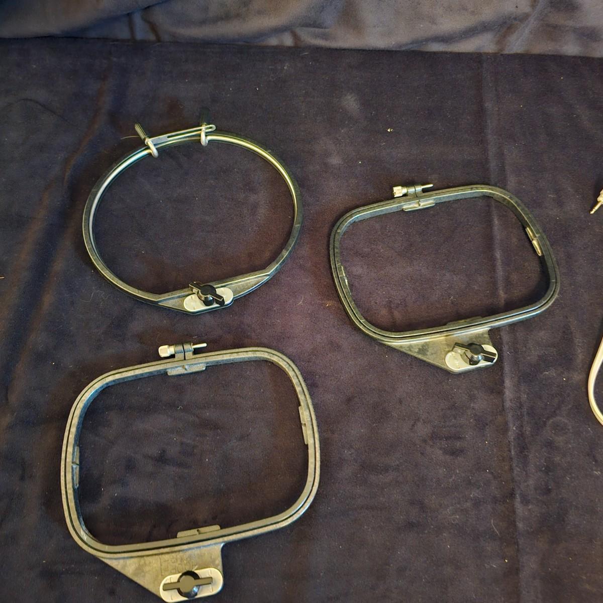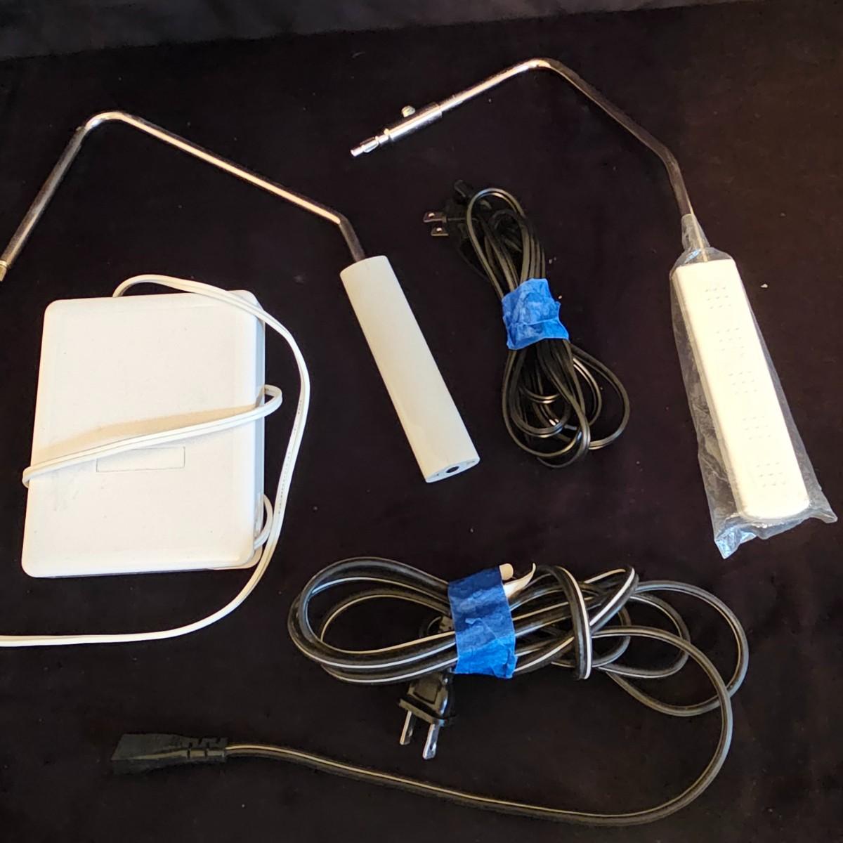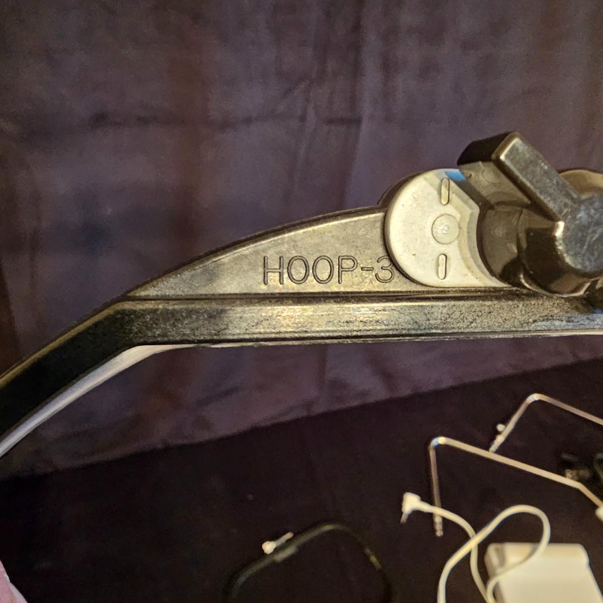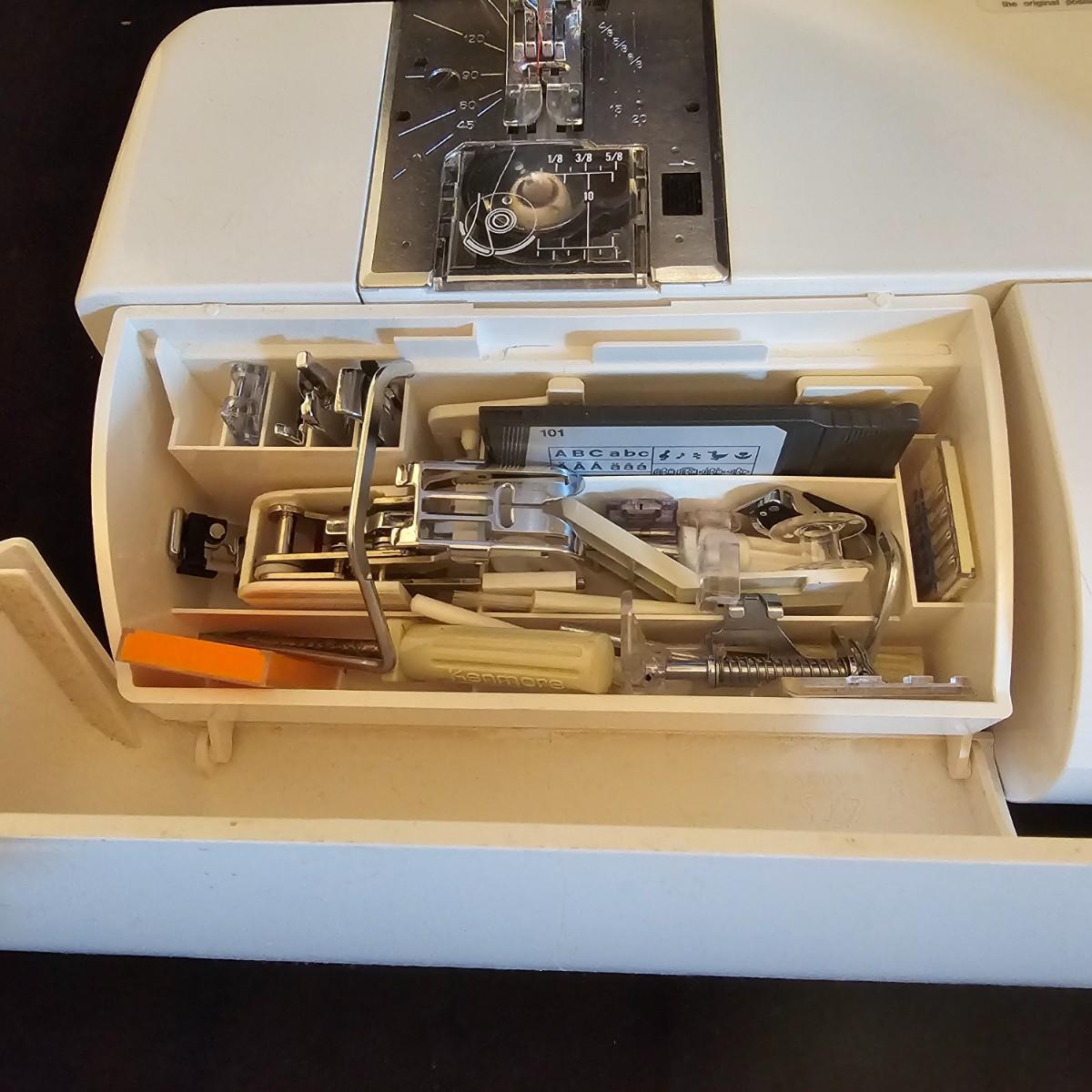 Two Janome Memory Craft 9000 sewing machines, one working, one for parts. Power cords and knee bars for both but only one foot switch. These are computer controlled machines and have some embroidery capability. Model has 326 built in stitches and 6 buttonhole options, auto needle threading. Each unit measures 17.5" x 9" x 12"H. There are three embroidery hoops included, two 5" x 6.5" and one 7" round. One machine powered on when plugged in, other did not. One hard shell cover with storage, and both units have accessory storage drawers in front. See photos for details. Local pickup only.