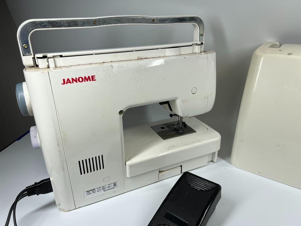 Janome Quilter Companion Working Sewing Machine, there is some wear to the machine, but there is no signifncant damage and is in good condition. Has been plugged in and tested with the foot pedal and is in good working condition. Check pictures for more details and for sizing.