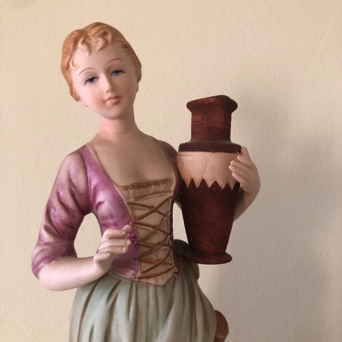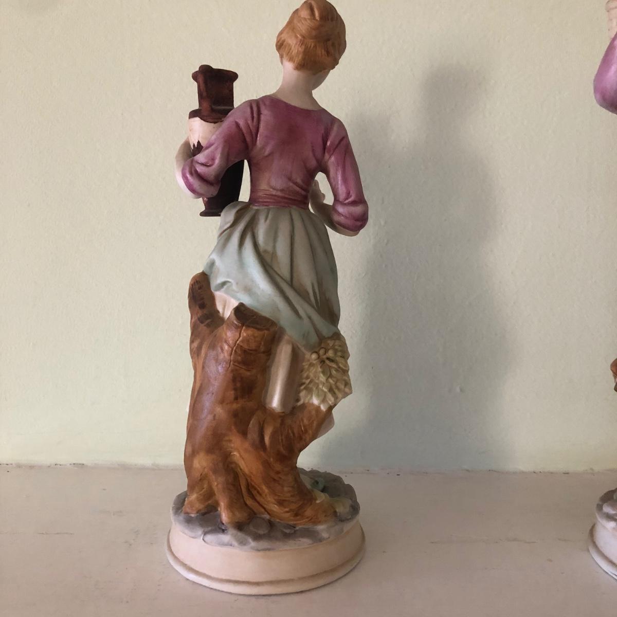 This lot includes four figurines: 2 that have ARDCO on the bottom (made in Japan) and are 4.5” in diameter (base) and stand about 12” tall. The smaller ones with crossed arrows 6613 are over 2” in diameter (base) and stand 7.5” tall. Shipping Available.