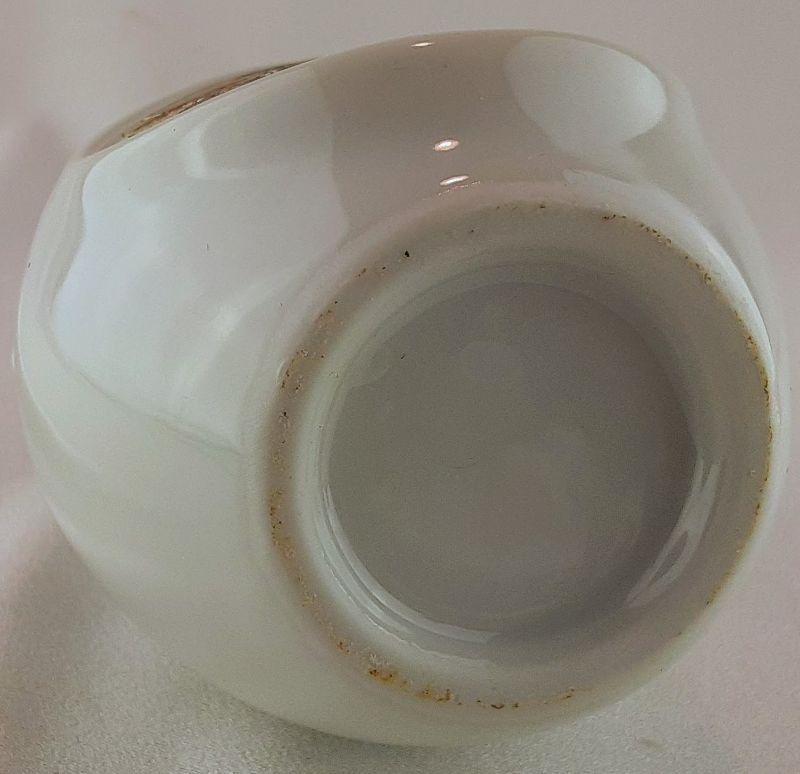 Beautiful peacock design on this porcelain vase measuring 5.5in. tall and 3in. wide.