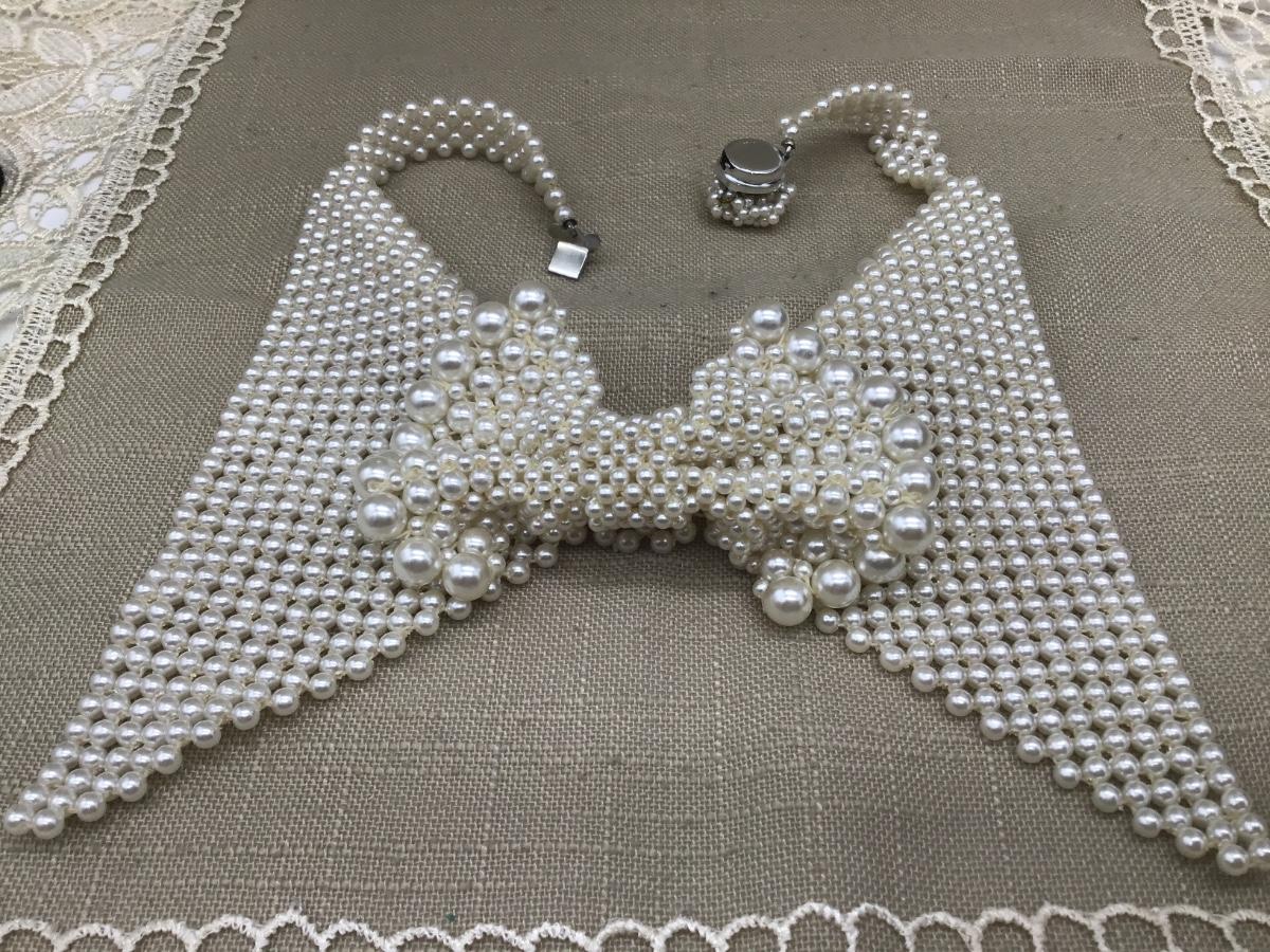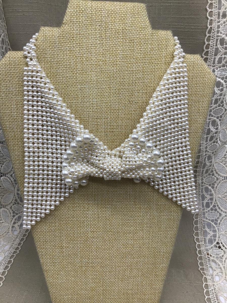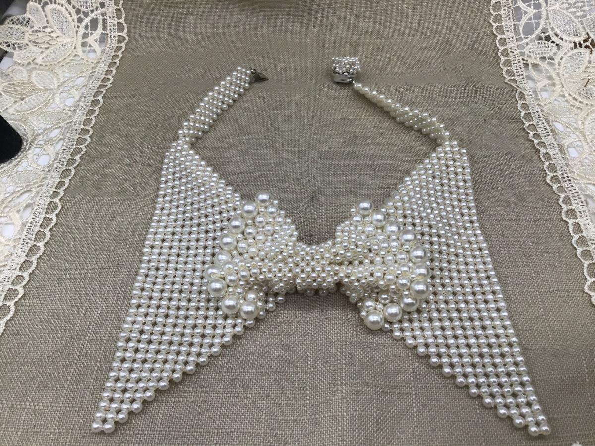 Japan Faux Pearl Bow Beaded Collar. Excellent