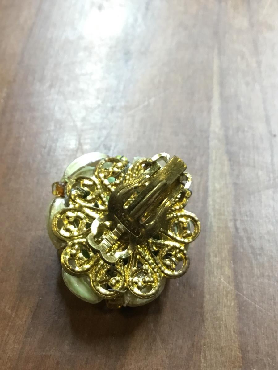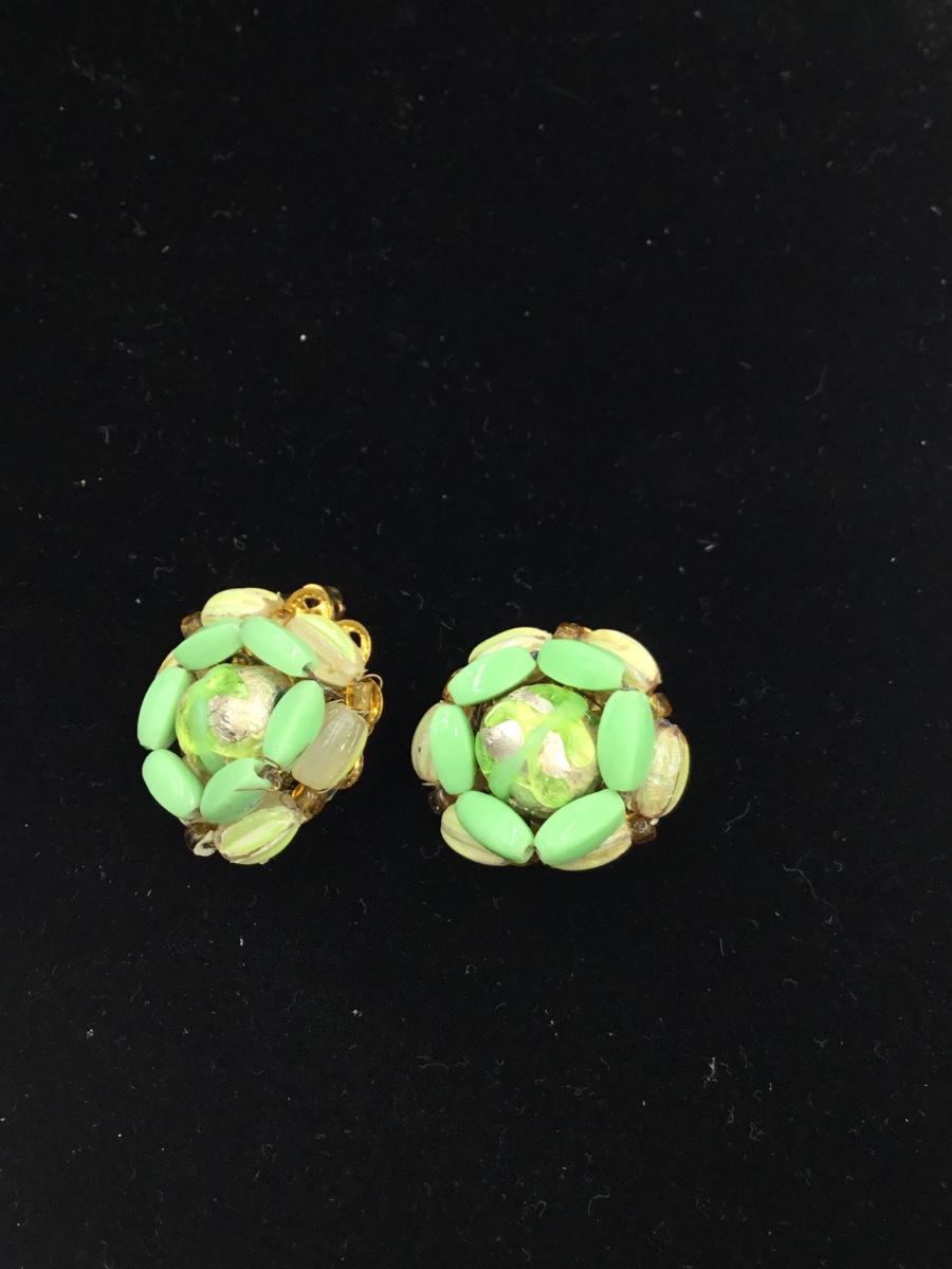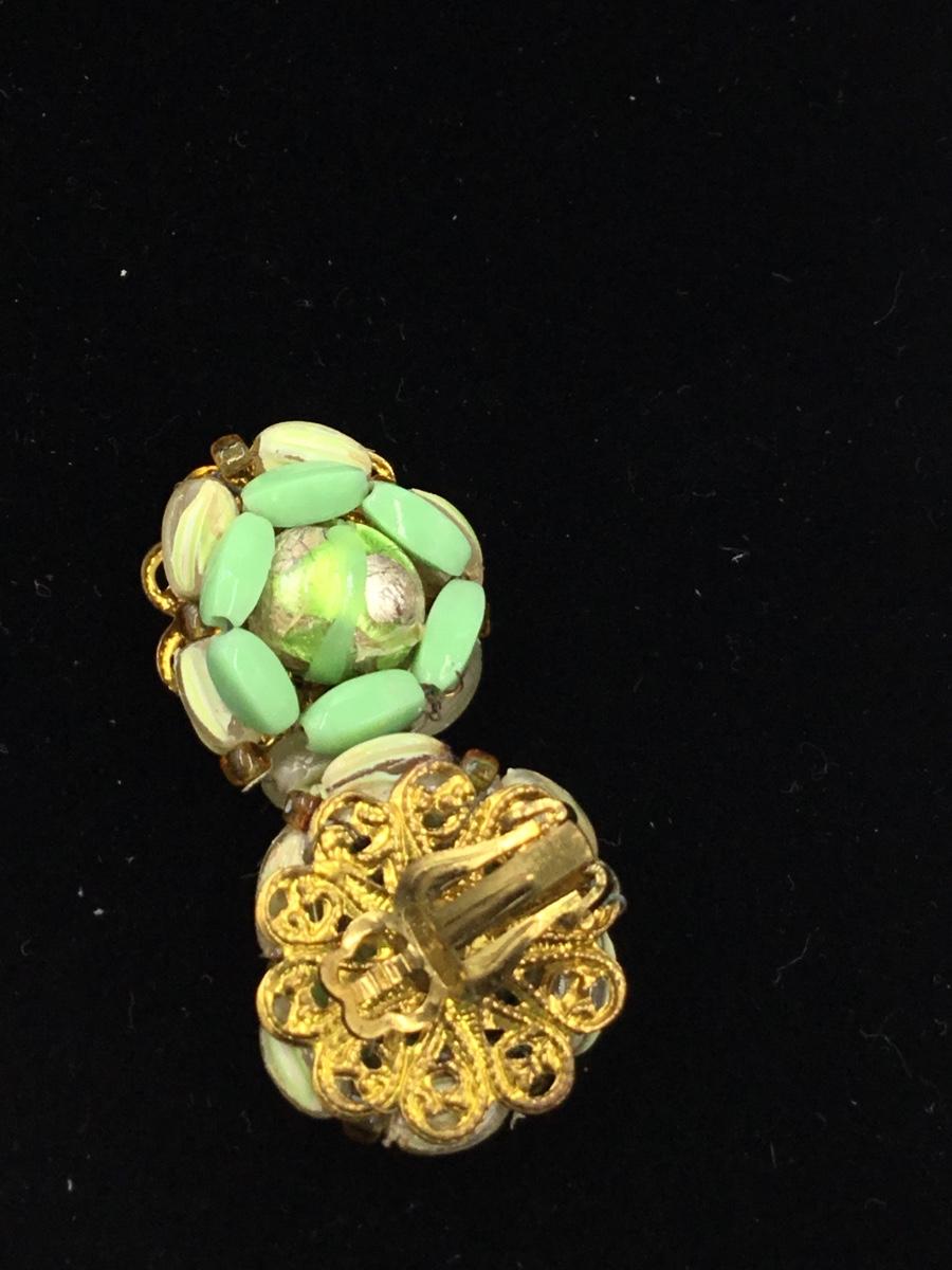 Japan vintage gold tone green beaded clip on earrings