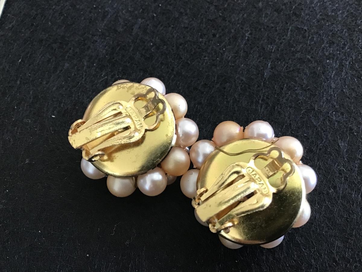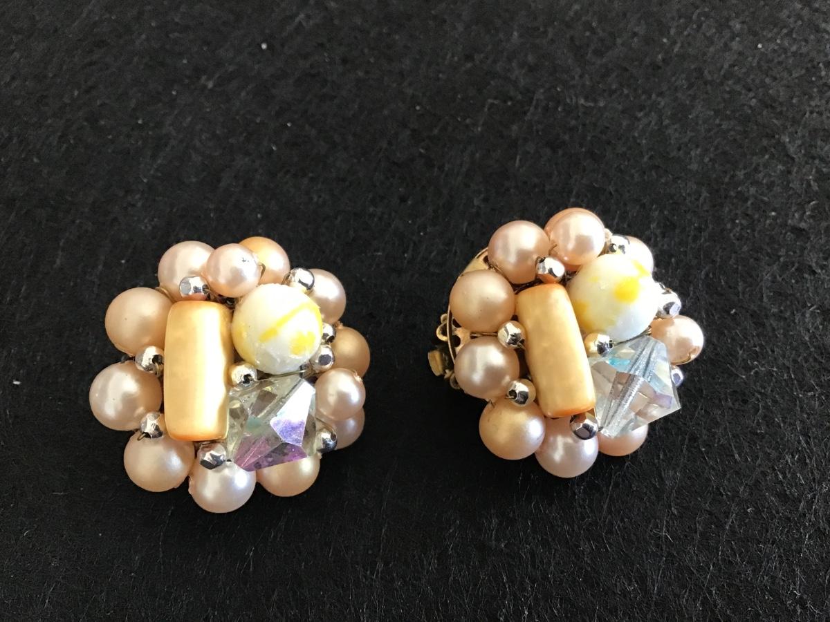 Japan Vintage Peach And Crystal Clip ons