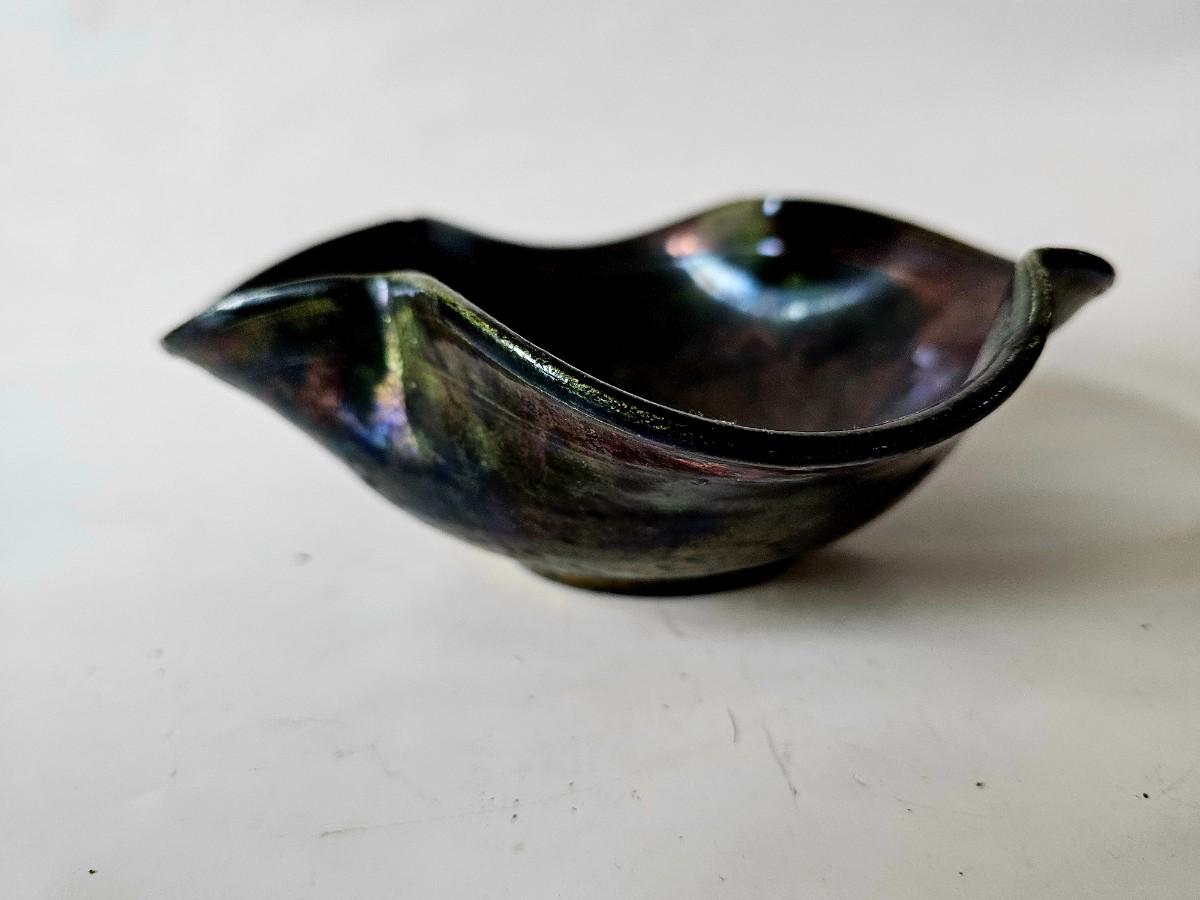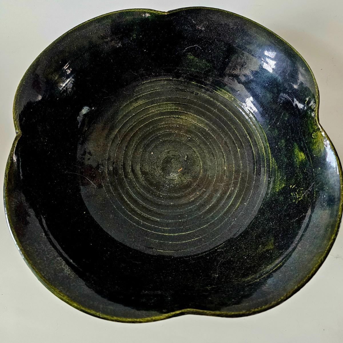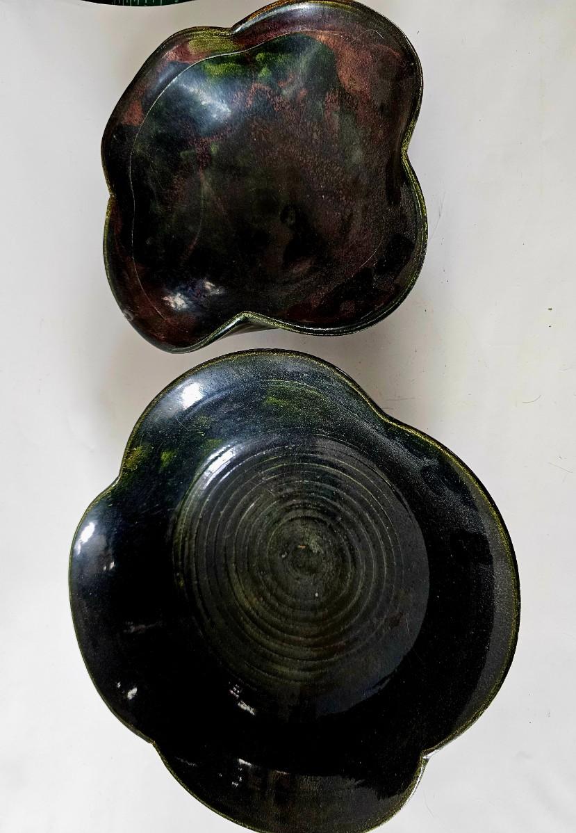 Japanese 1800s Metallic-looking Bowl Set Raku Glaze in beautiful form