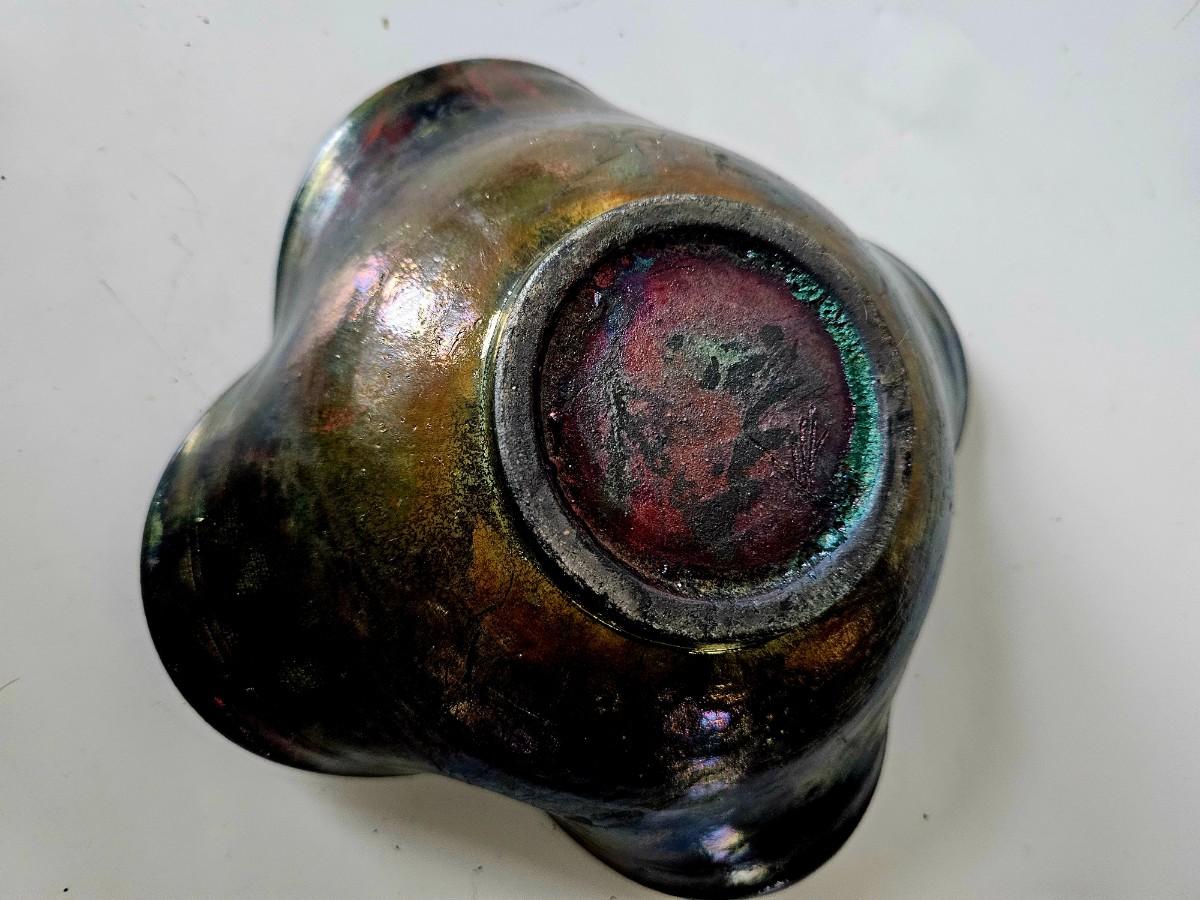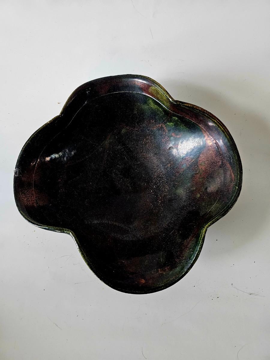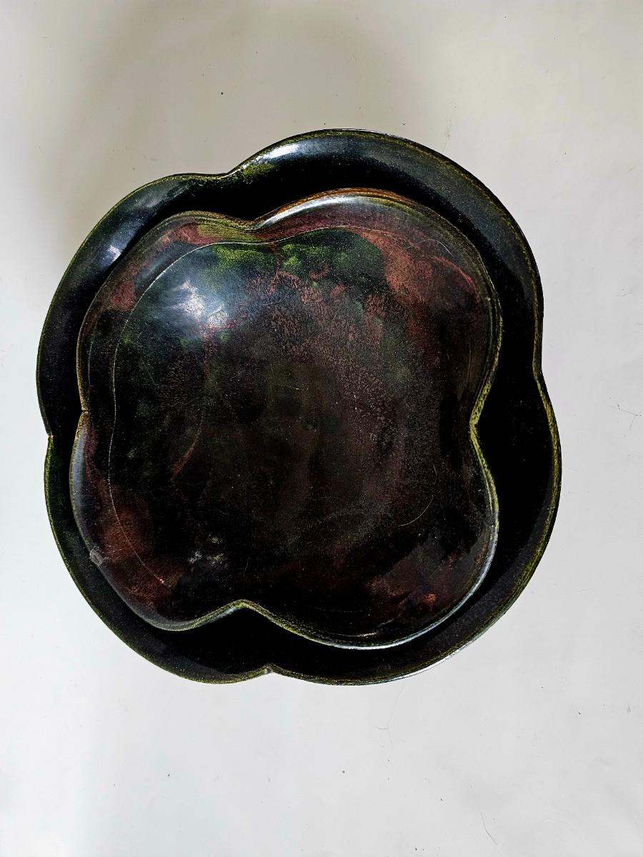 Japanese 1800s Metallic-looking Bowl Set Raku Glaze in beautiful form