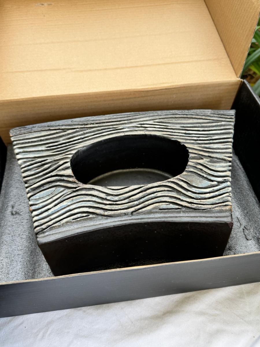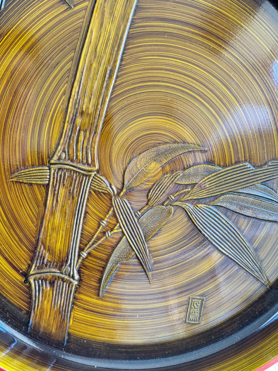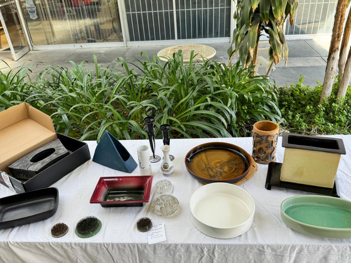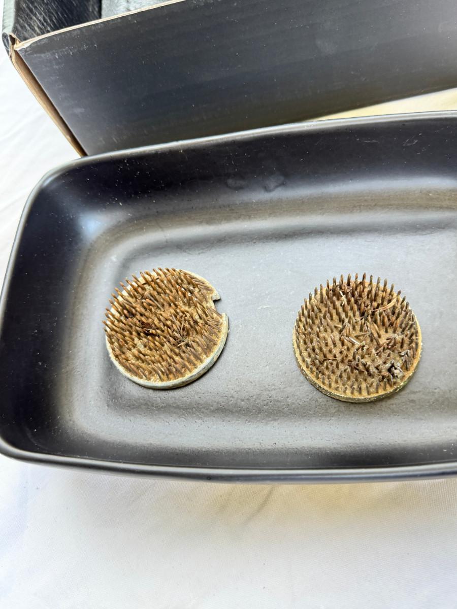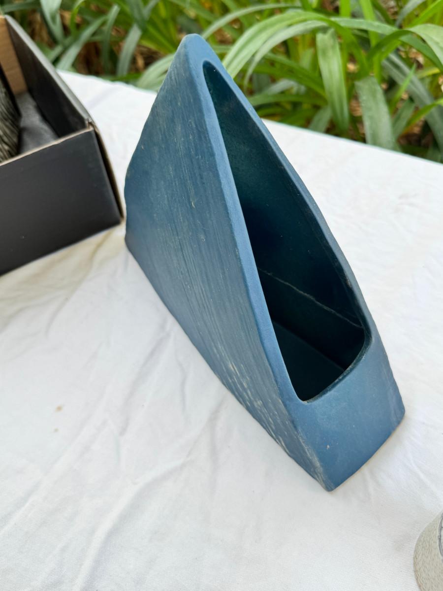 Needle plates ( with wear) Glass black Polish , Ceramic vases, Haeger Ombre , ceramic flower arranging vessels.Bamboo Japanese plate on wood tray . Sorry no shipping