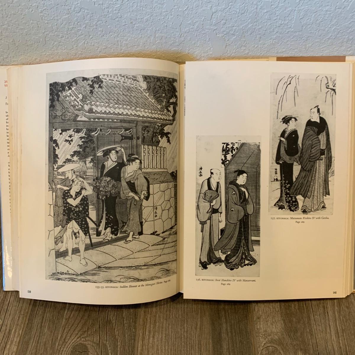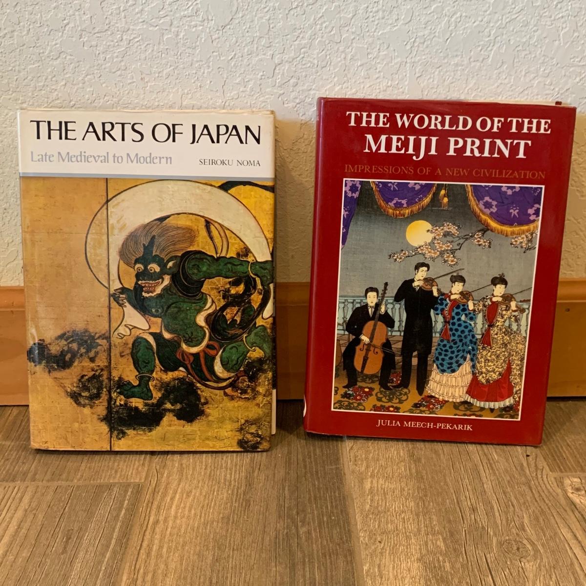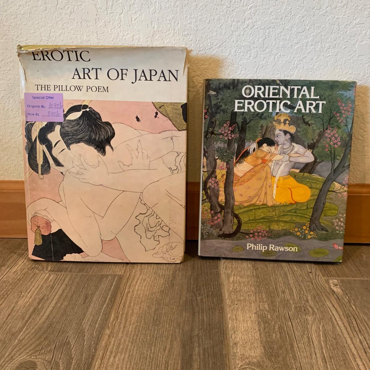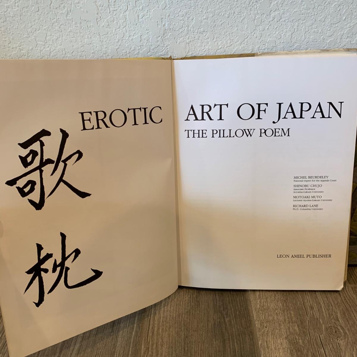 14 books about Japanese art and more. Three come in protective cardboard covers. Of the 14 books, four are paperback and the rest are hardcover. Most of the books are in very good condition, with the exception of “Erotic Art of Japan”, which has a torn dust jacket and some wear to the cover.