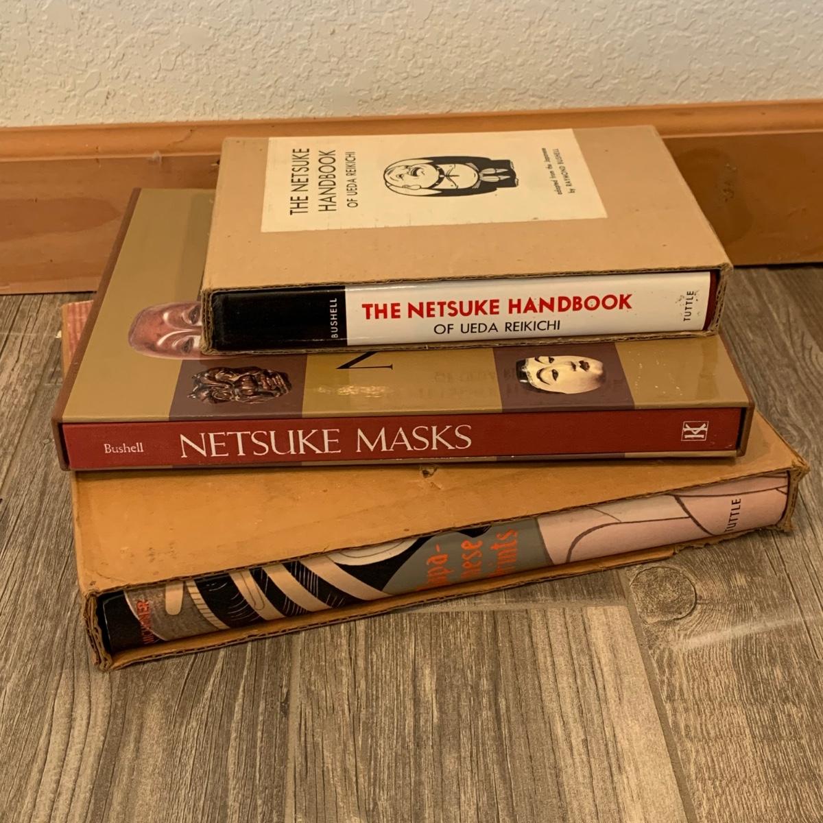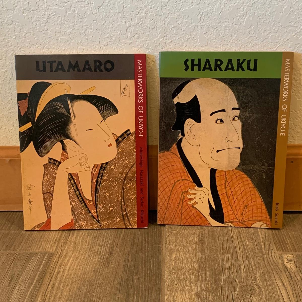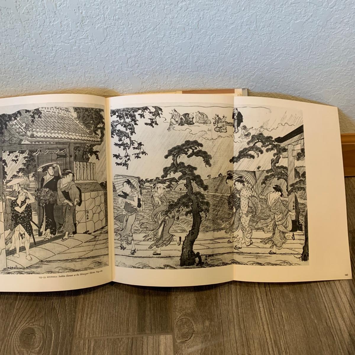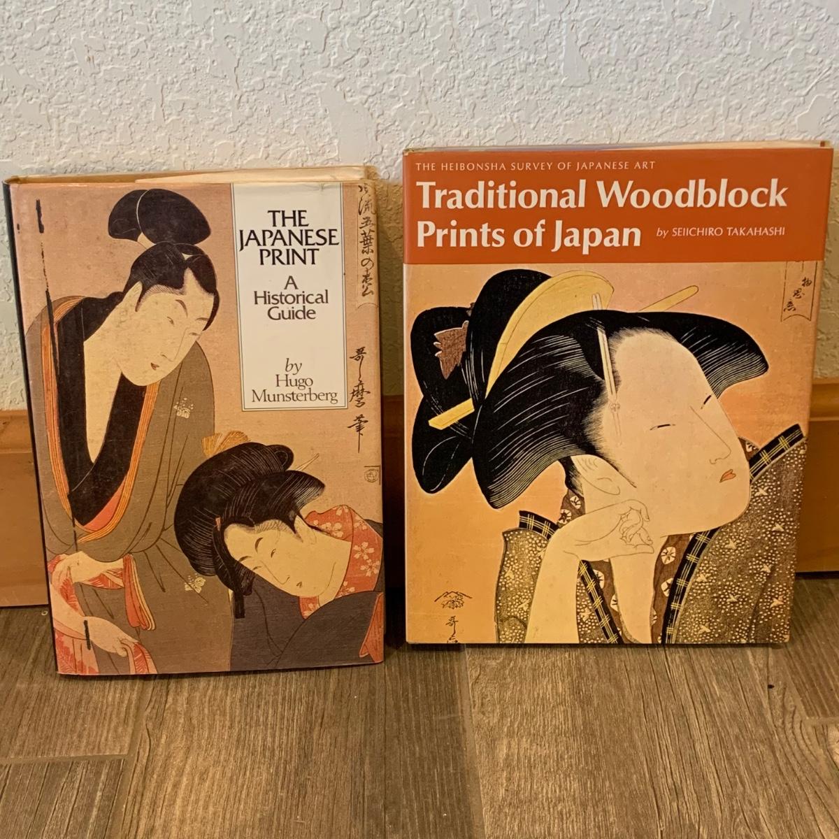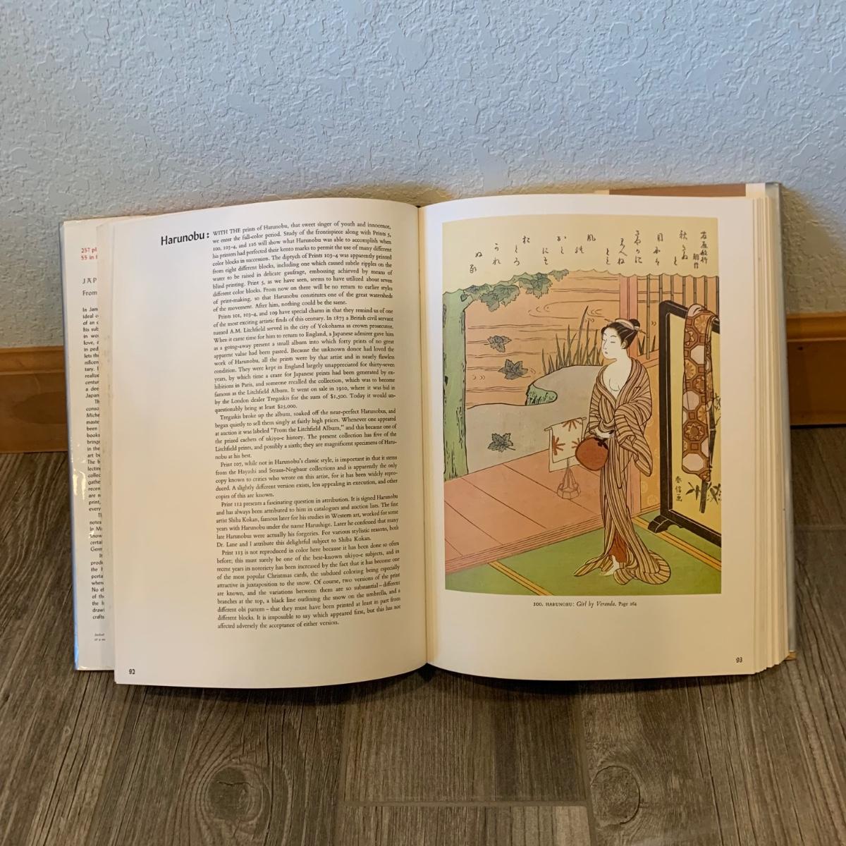 14 books about Japanese art and more. Three come in protective cardboard covers. Of the 14 books, four are paperback and the rest are hardcover. Most of the books are in very good condition, with the exception of “Erotic Art of Japan”, which has a torn dust jacket and some wear to the cover.