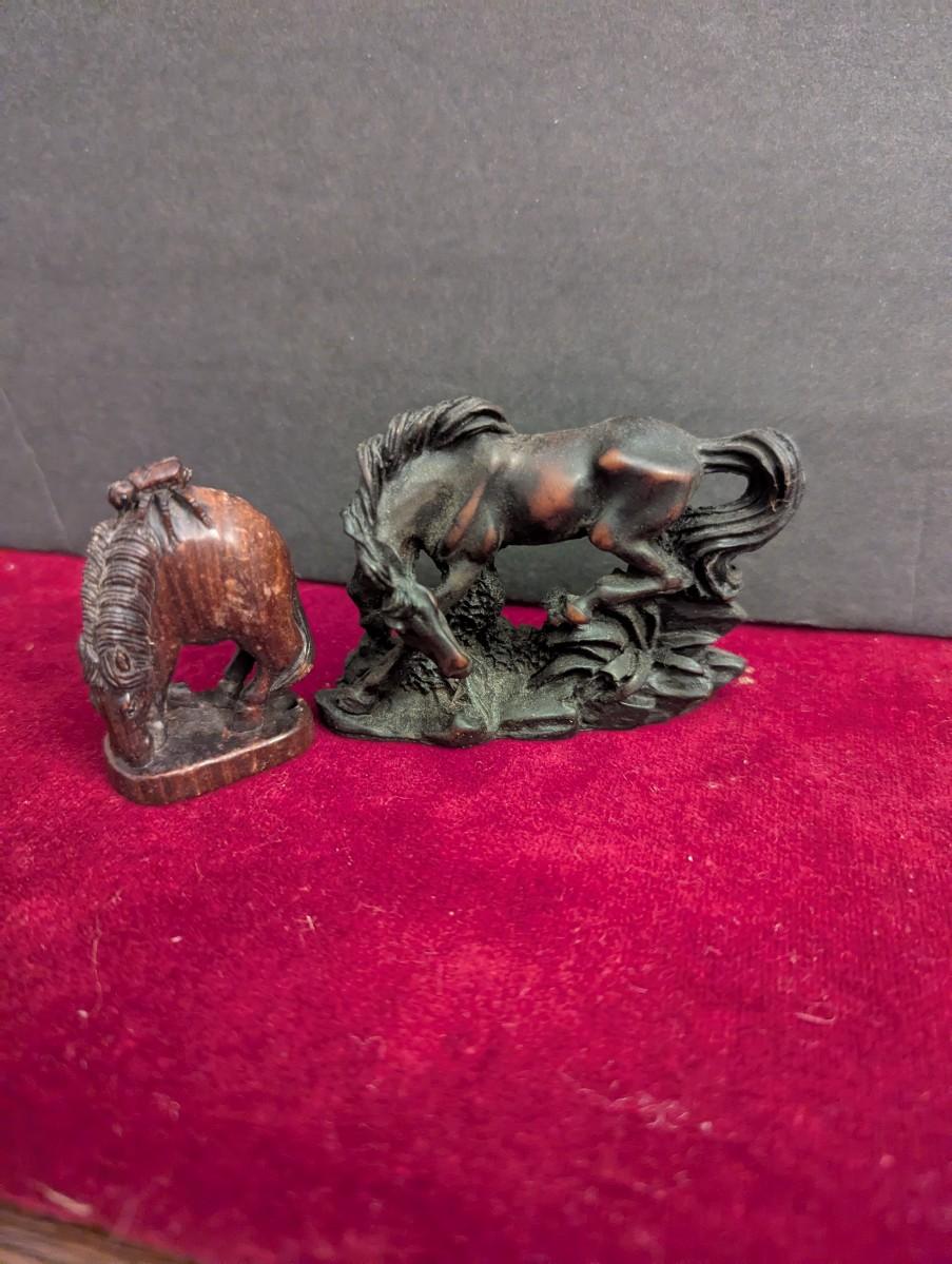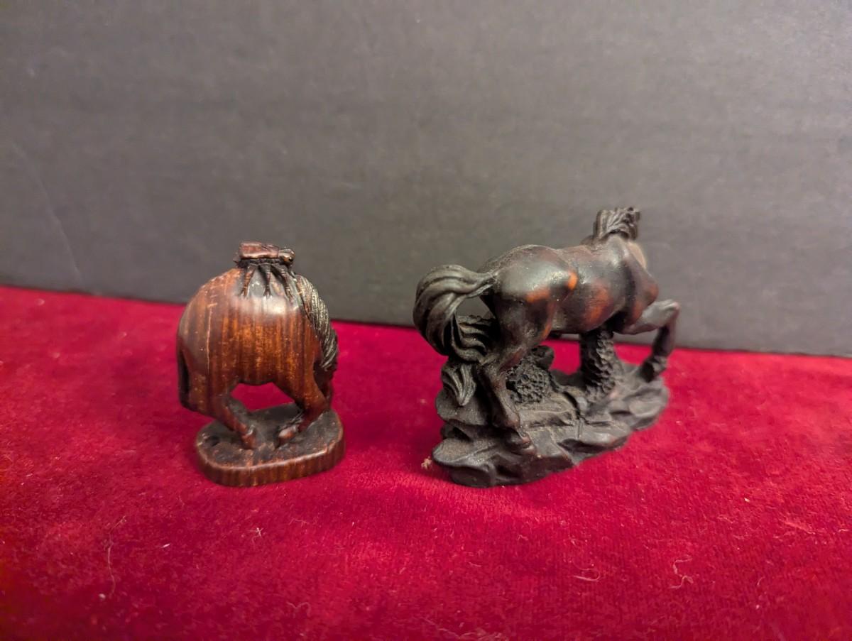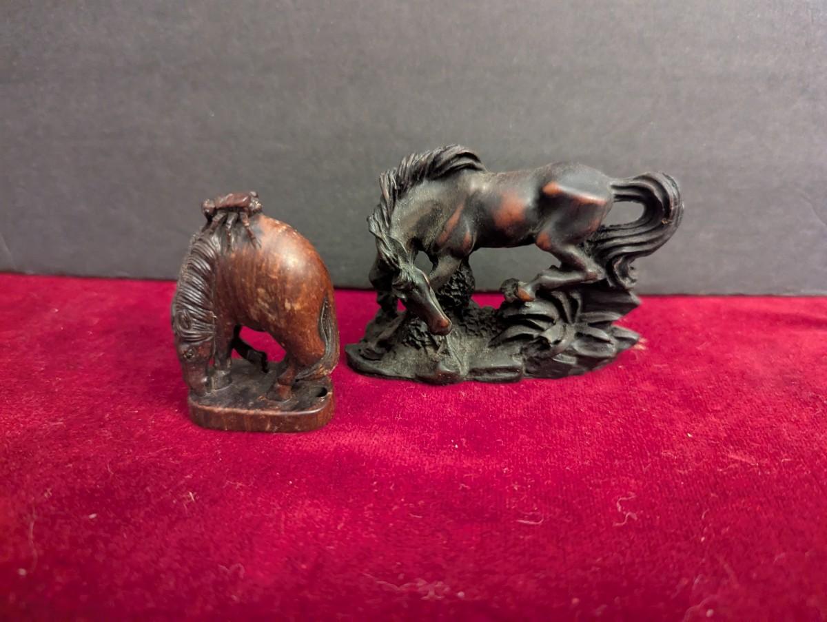 Japanese Boxwood Hand Carved Netsuke Horse & Resin Horse Figure #23