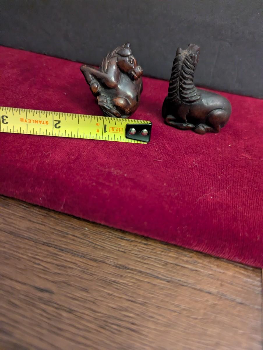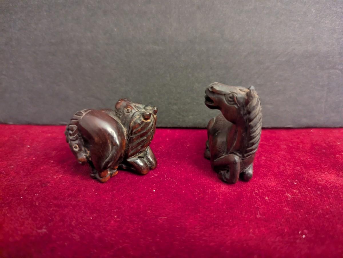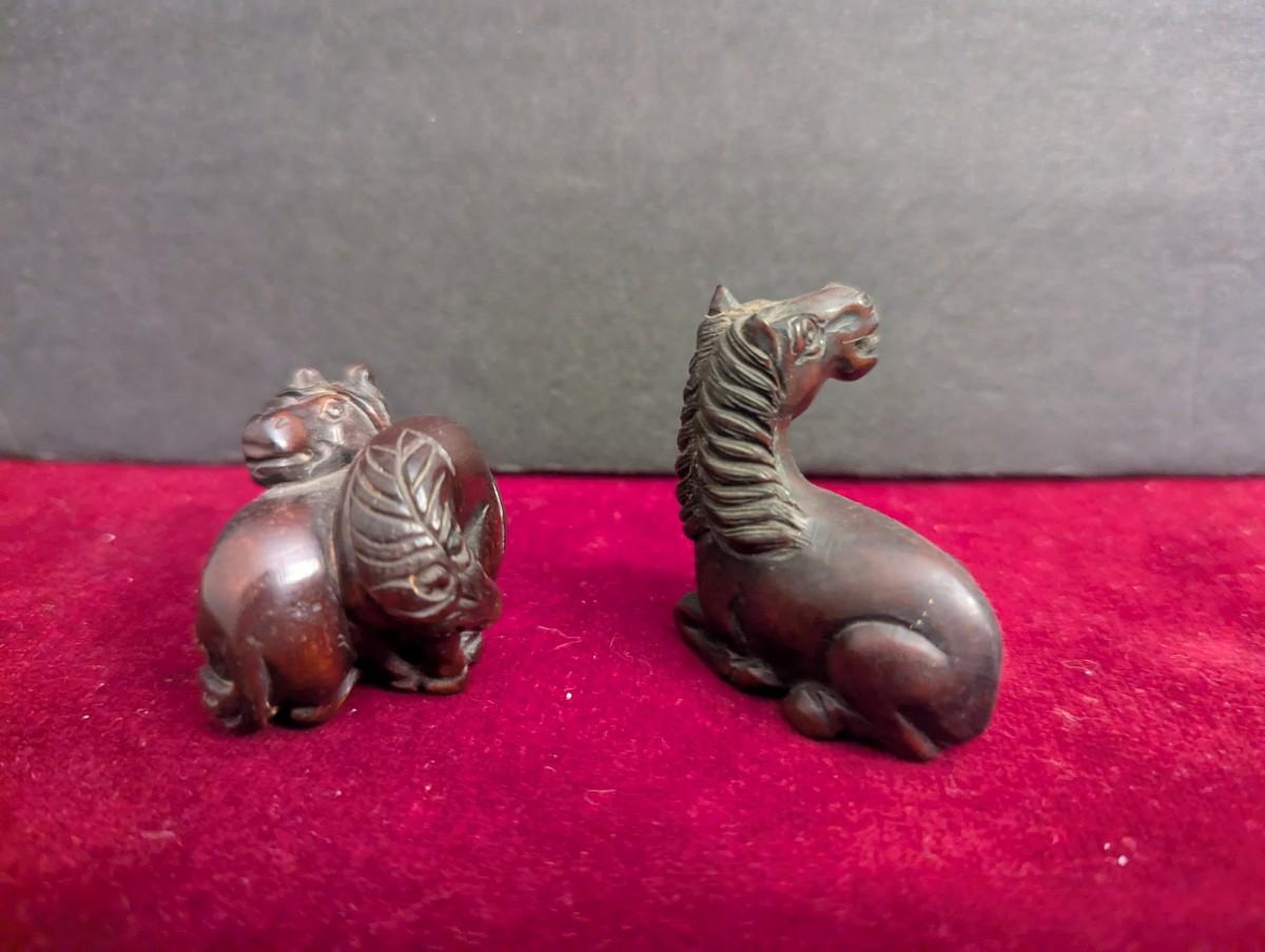 Japanese Boxwood Hand Carved Netsuke Horse & Resin Horse Figure #24