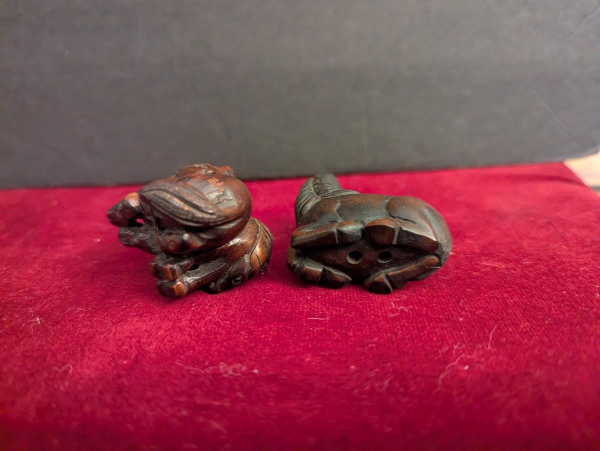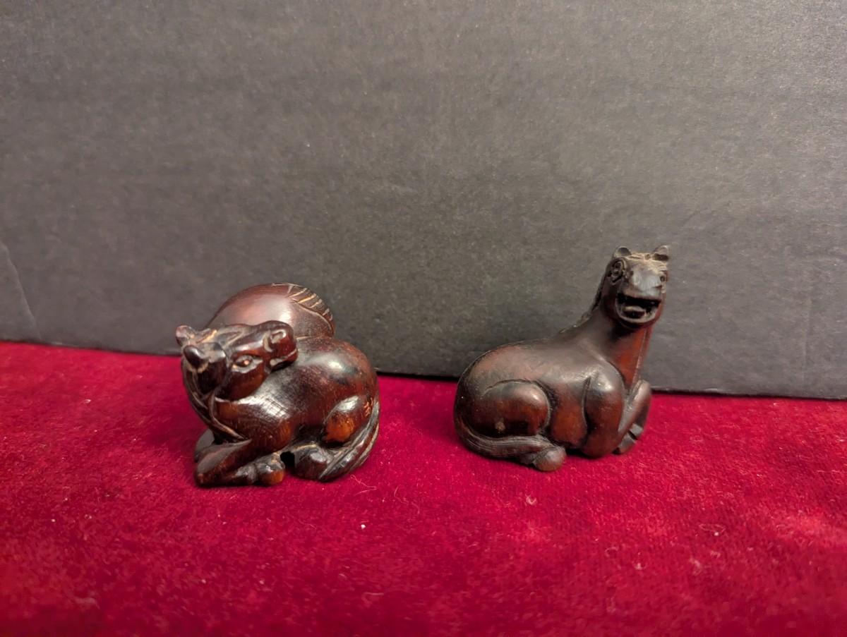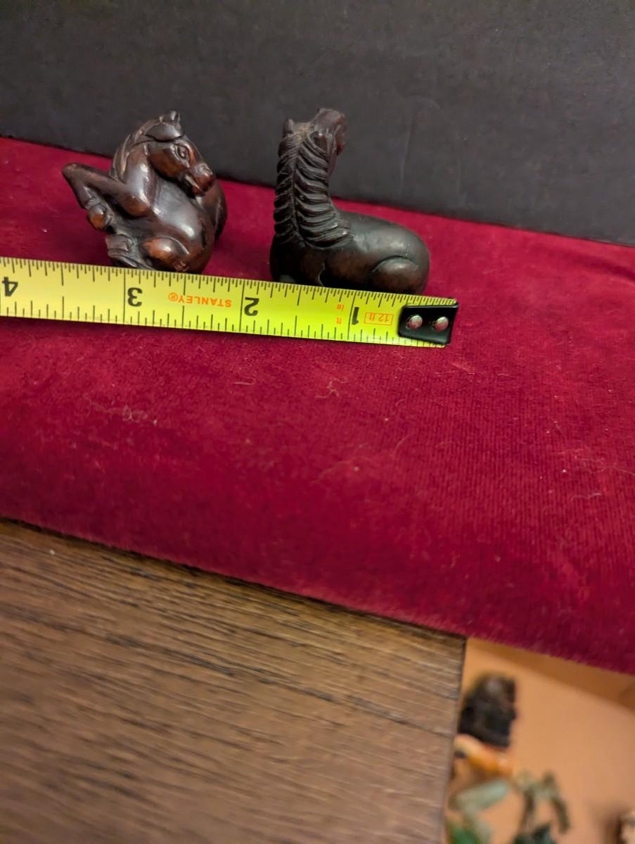 Japanese Boxwood Hand Carved Netsuke Horse & Resin Horse Figure #24