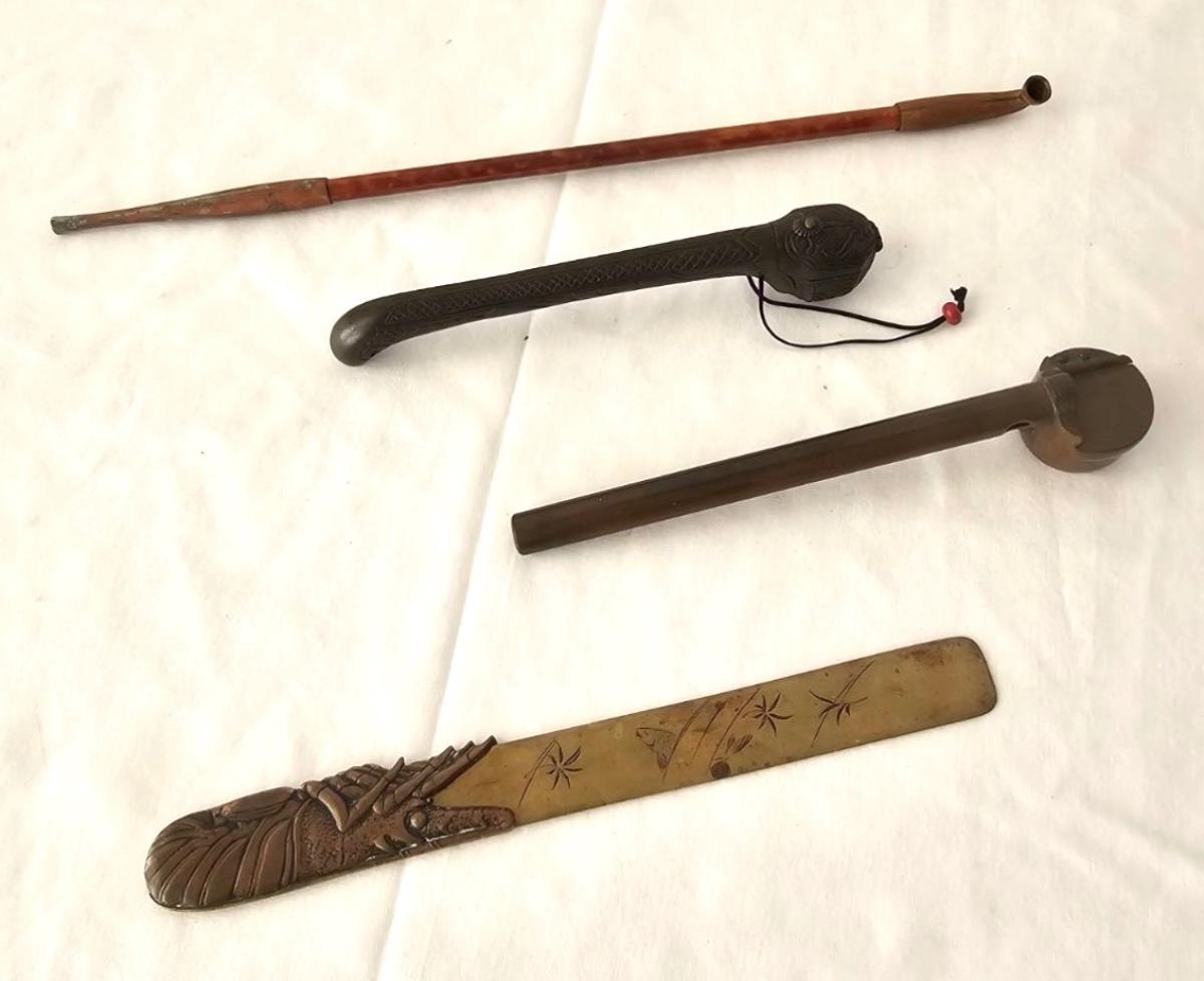 Japanese Brass Yatate Ink Pots, Kiseru Pipe & Meiji Era-Style Letter Opener (DR-JS)
