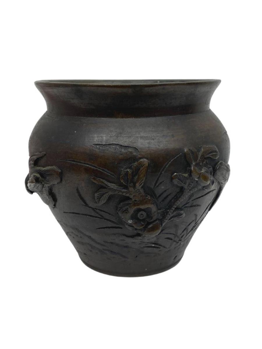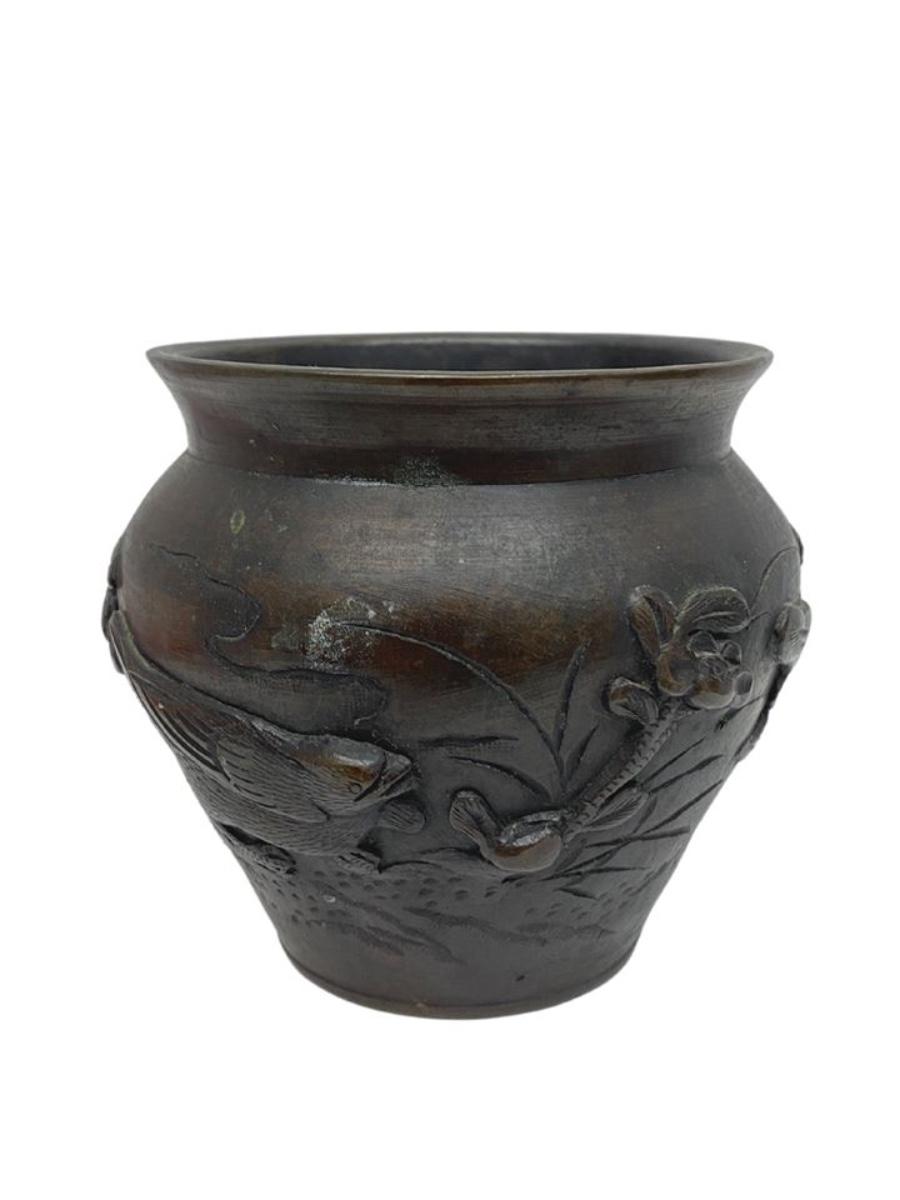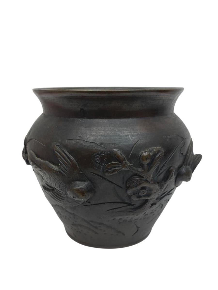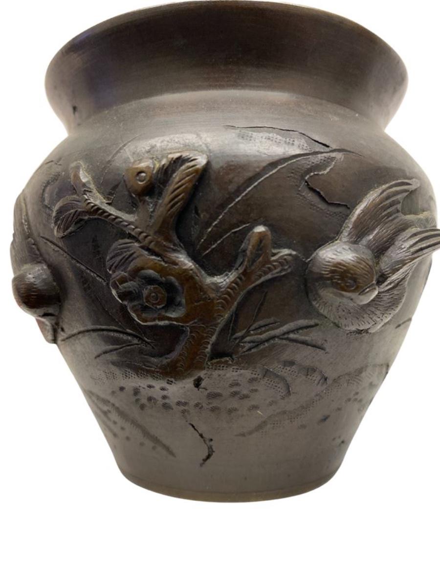 Japanese Bronze Vase with Raised Birds, Branches and Foliage