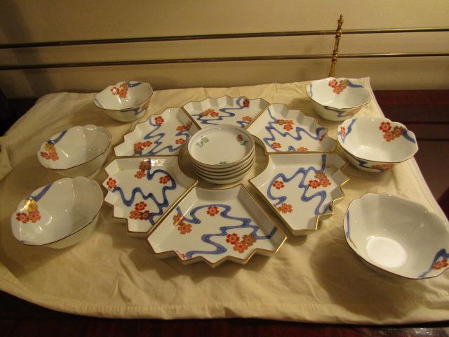 Japanese Dish Set- Small Plates and Bowls. Comes Packed in small, wooden crates (shown in pictures).