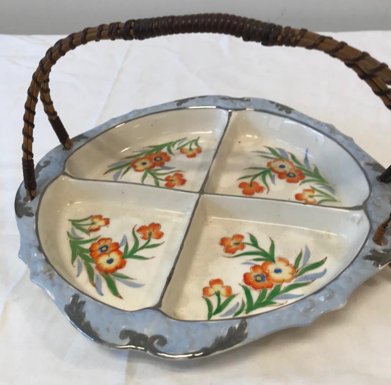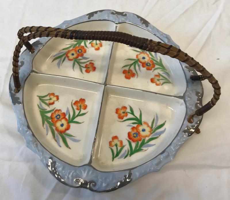 Japanese Floral 4 Part Relish Tray with Handle