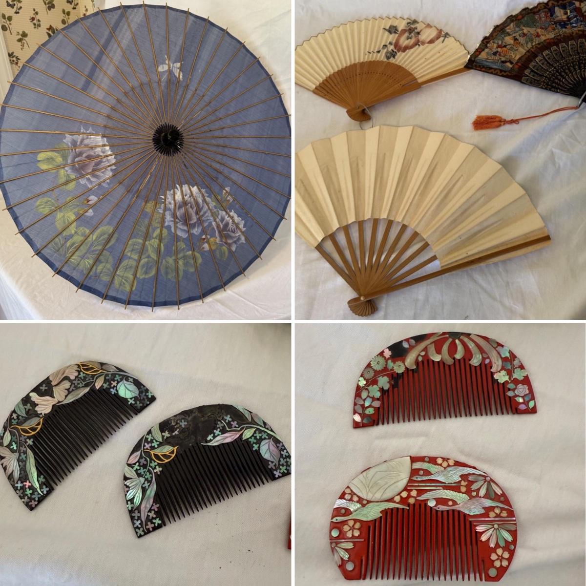 Japanese Hair Combs with Hand-painted Silk Parasol and More (LR-BM)